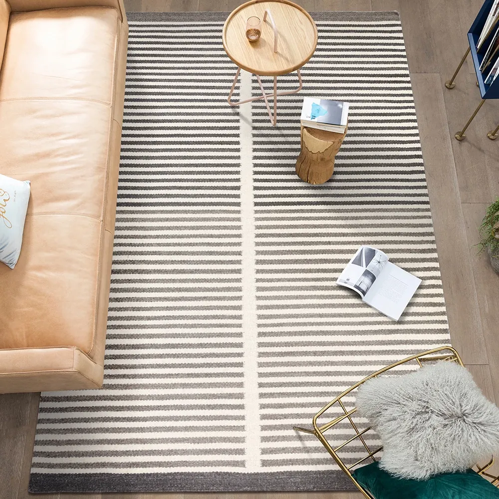 "Visual Taste: Imported Modern Minimalist Wool-Cotton Handwoven Area Rug for Living Room - Scandinavian-Japanese Style Coffee Table Mat"