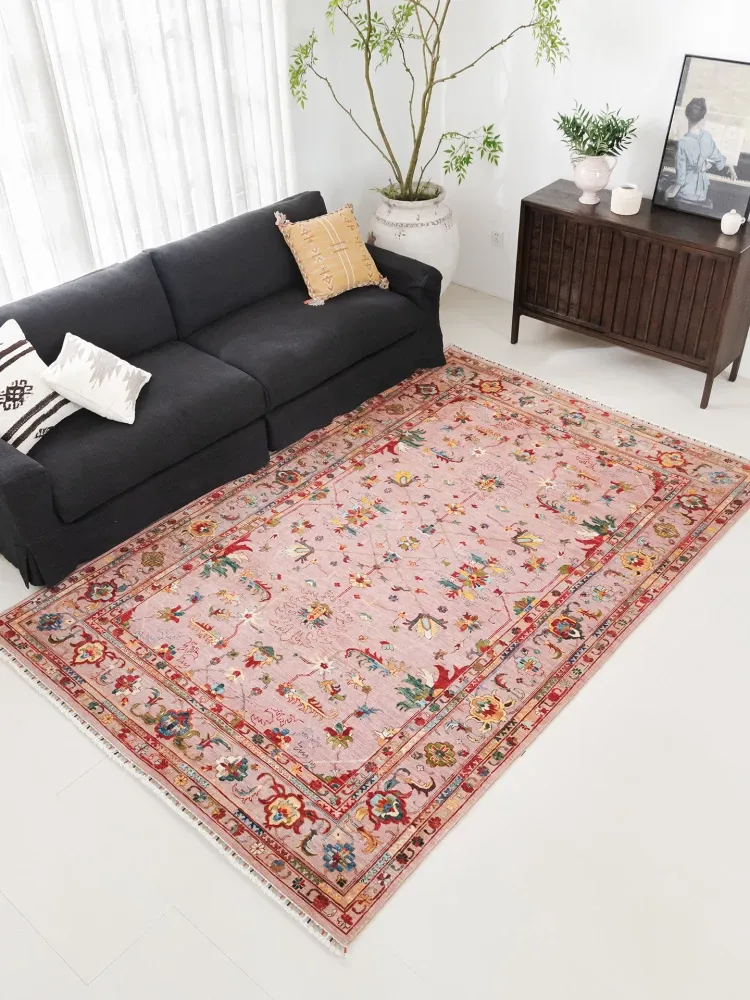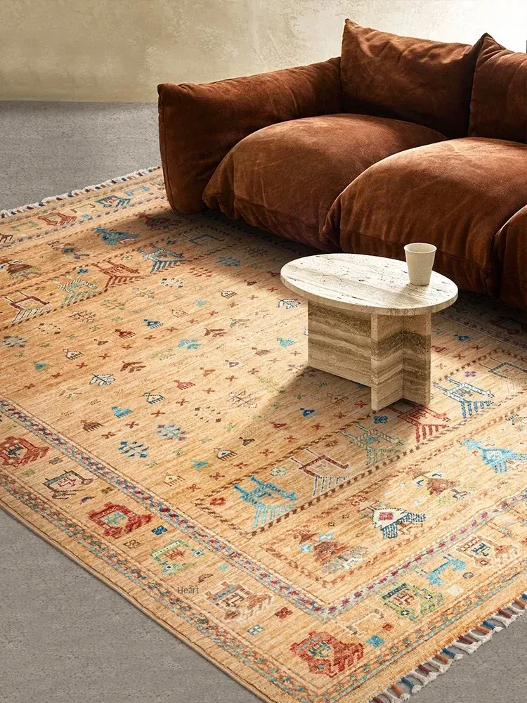 Visual Delight: Handcrafted Afghan Wool Living Room Area Rug - Vintage Persian Design, Formaldehyde-Free and Glue-Free, Perfect for Eco-Friendly Homes!