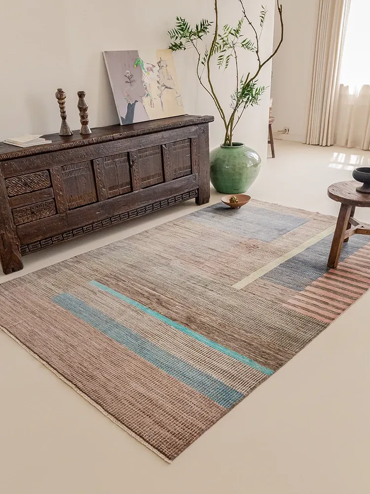 Vintage Turkish Imported Living Room Carpet - French & American Style Glue-Free Macchiato Rug for a Unique Visual Experience