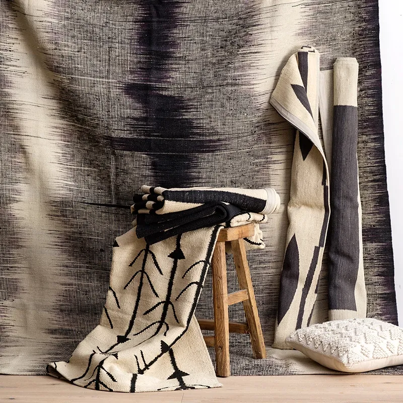 "Visually Appealing Handcrafted Solid Color Indian Rugs - Modern Minimalist Wabi-Sabi Style for Eco-Friendly Living Rooms"