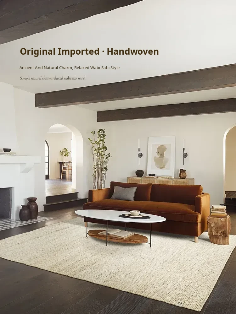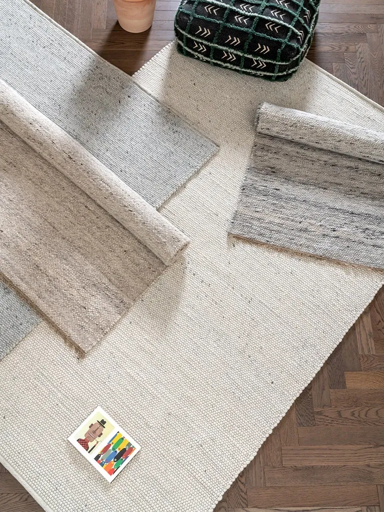 Visual Flavor Imported Handcrafted Wool Rug - Nordic Minimalist Japanese Solid Color Living Room and Bedroom Carpet, Perfect for Your Coffee Table!