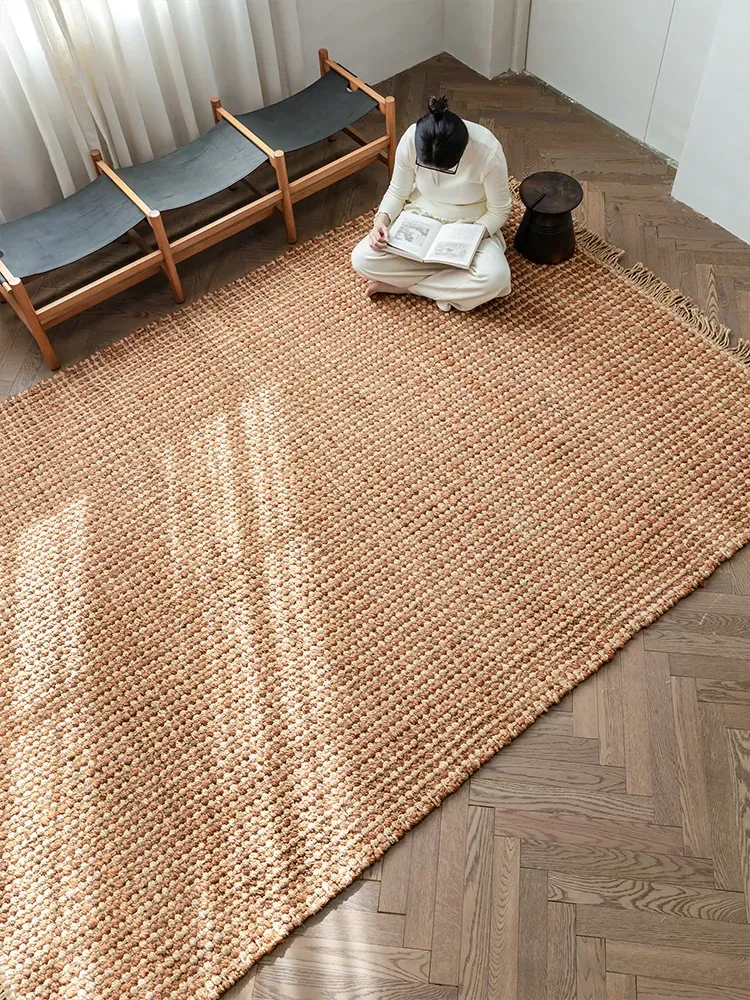 Visual Elegance: Handcrafted Imported Jute Rug - Glue-Free, High-End Aesthetic for Your Living Room in Vintage Wabi-Sabi White