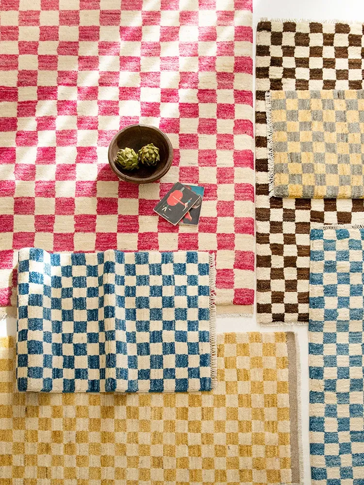 Visual Taste: Imported Wool Vintage Checkered Area Rug - Handwoven French Style Luxury Carpet for Living Room Coffee Table
