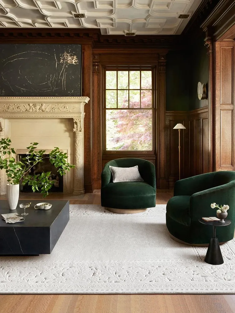 "Luxurious French Vintage Cream Living Room Carpet - Thick, Non-Adhesive Bedroom Area Rug for Sound Insulation and Style"