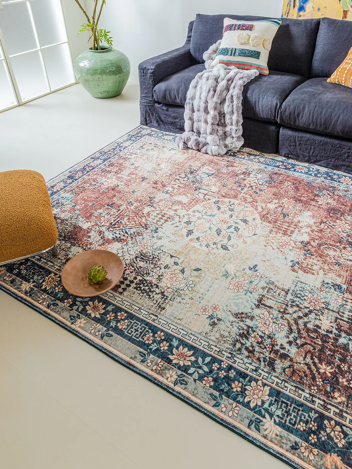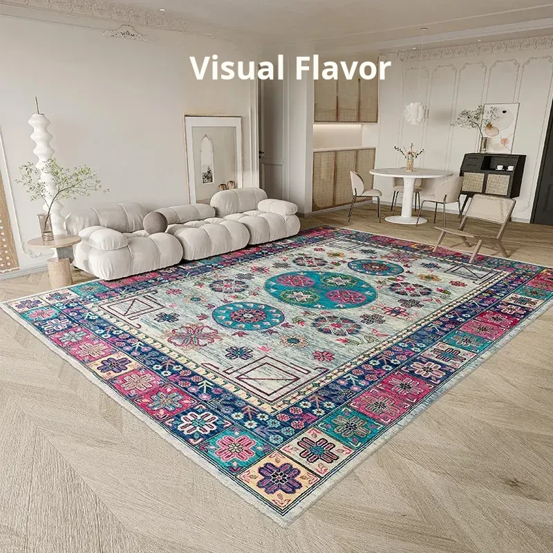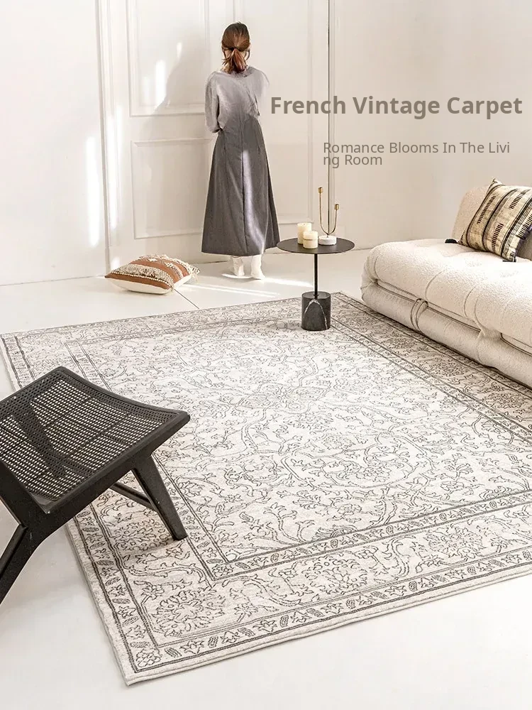 Visual Taste: Glue-Free, Formaldehyde-Free French Vintage Style Living Room Carpet - Modern American Retro High-Quality Woven Area Rug for Your Home