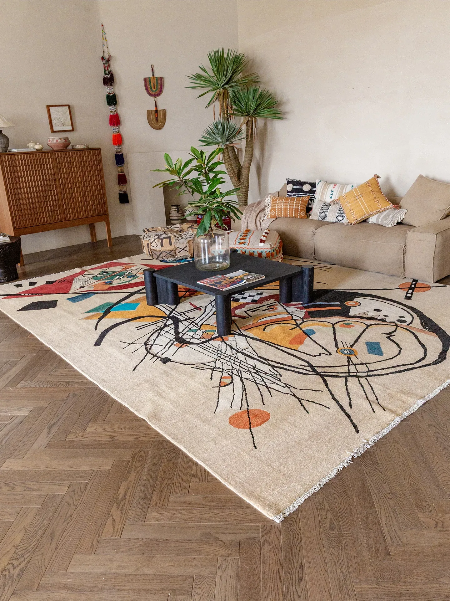 Visual Flavor: Hand-Knotted Afghan Wool Rug - Modern Wabi-Sabi Style, Colorful Living Room Carpet, Imported Elegance