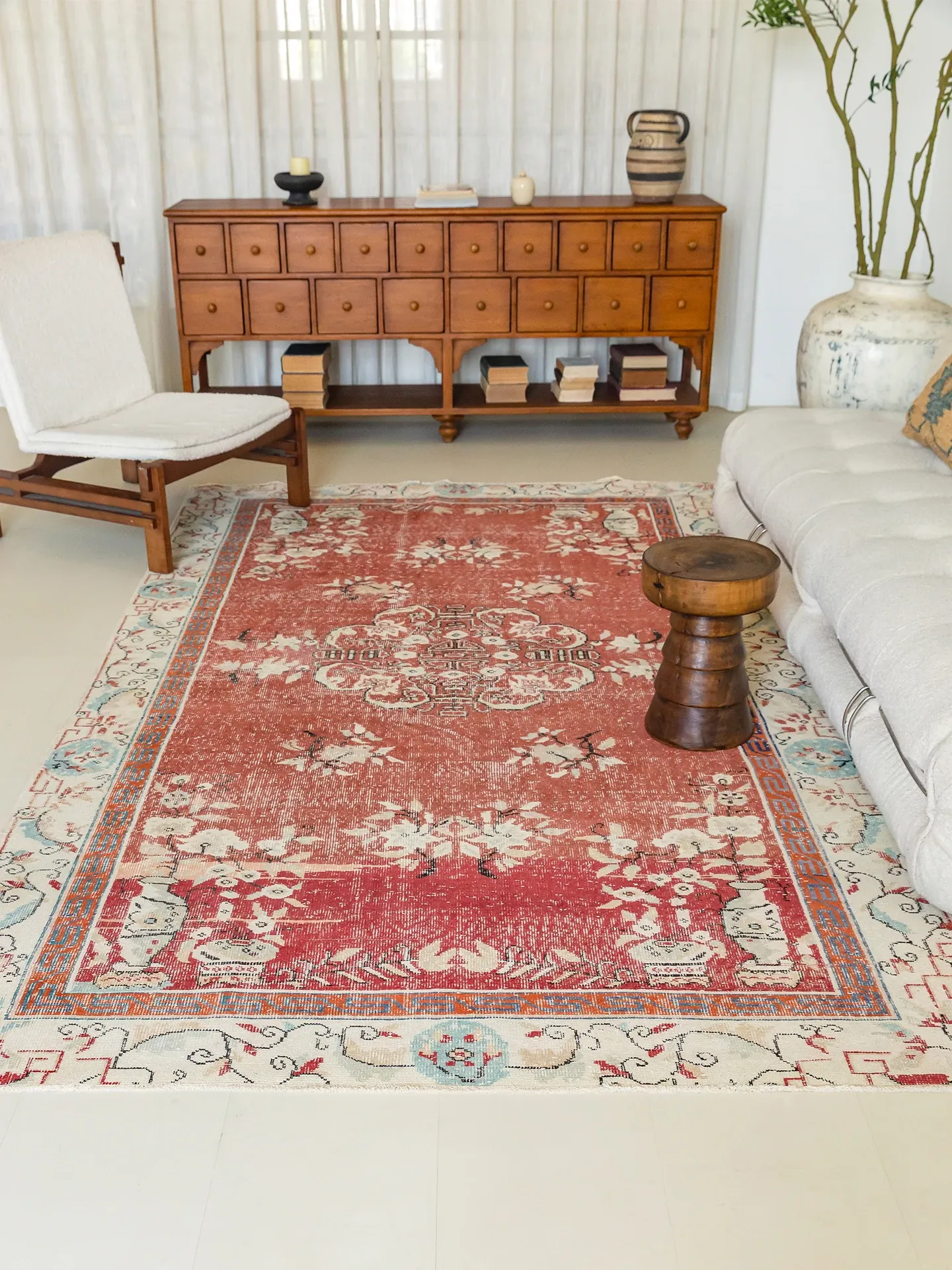 Vintage Turkish Imported Red Distressed Wool Area Rug - Handmade Retro Style for Your Living Room, Adding a Touch of Elegance and Warmth to Your Home Décor!