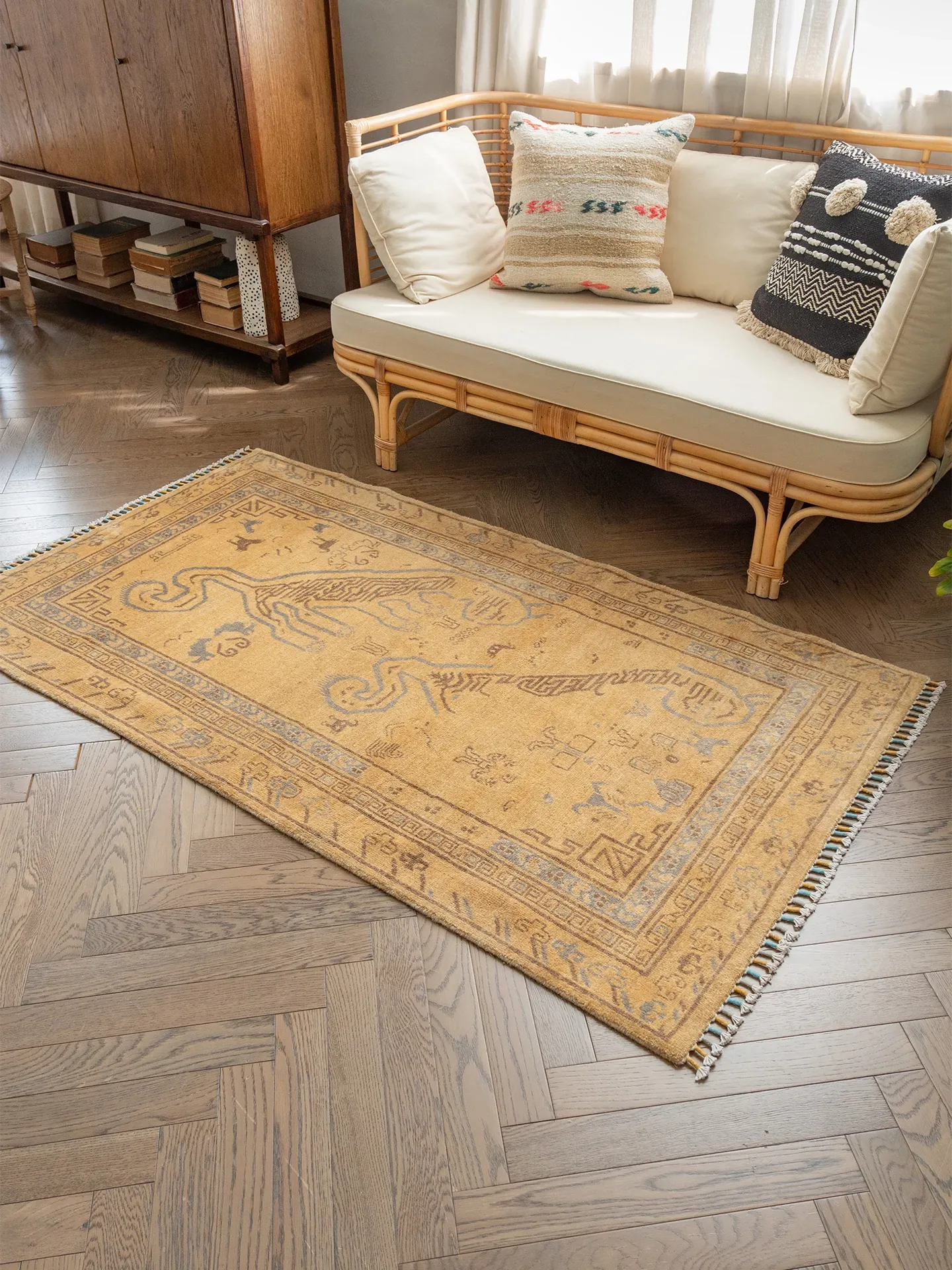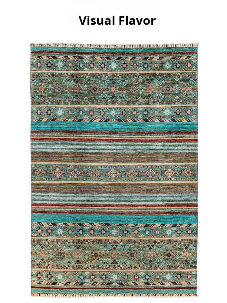 Visual Taste: Handwoven Afghan Wool Carpet - Modern Wabi-Sabi Vintage Style for Living Room, Glue-Free and Eco-Friendly