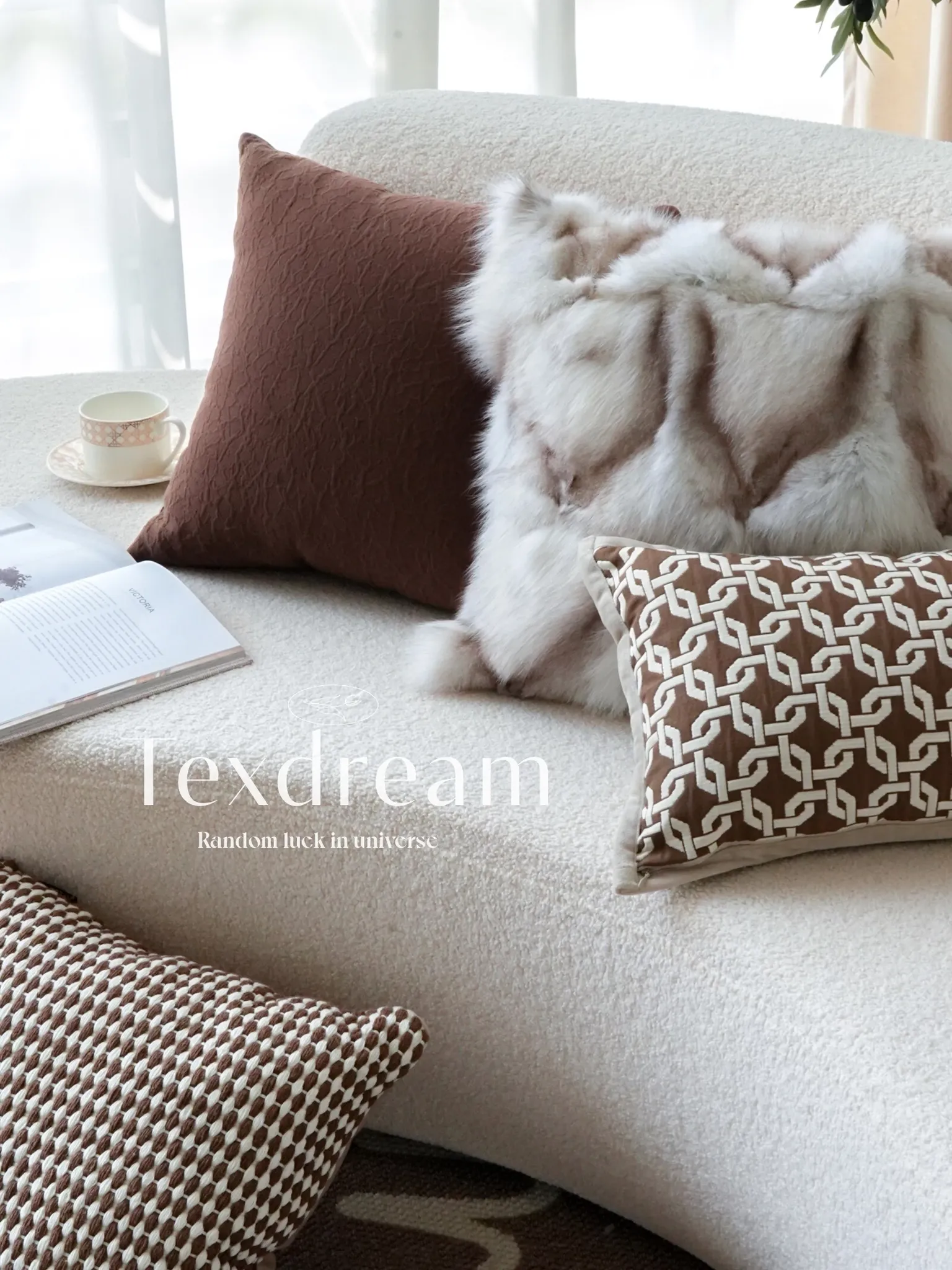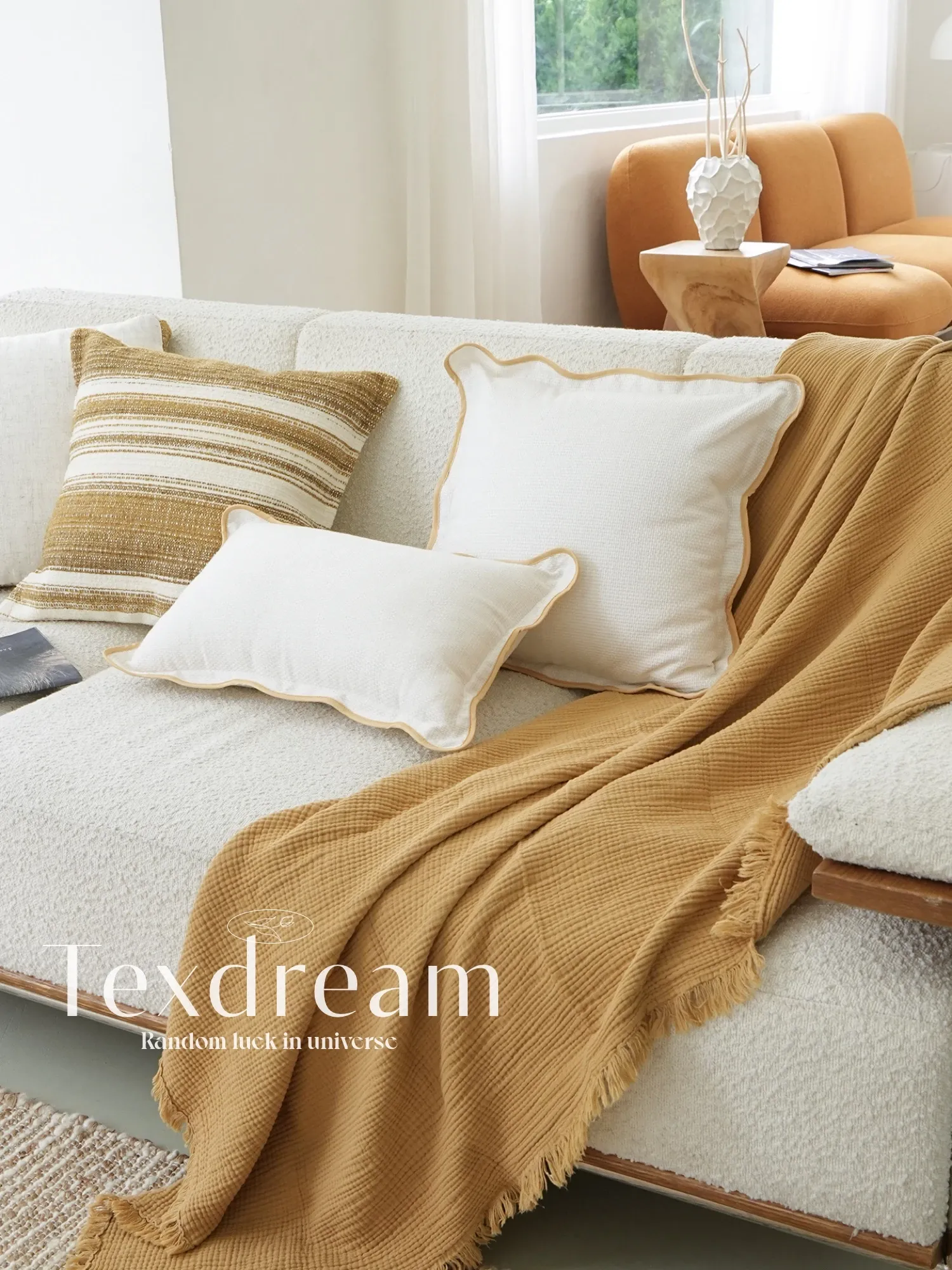 TEXDREAM Attitude Wabi-Sabi Style Cotton Apricot Series Sofa Cushions - Perfect for Boutique Hotels and Stylish Bedroom Decor