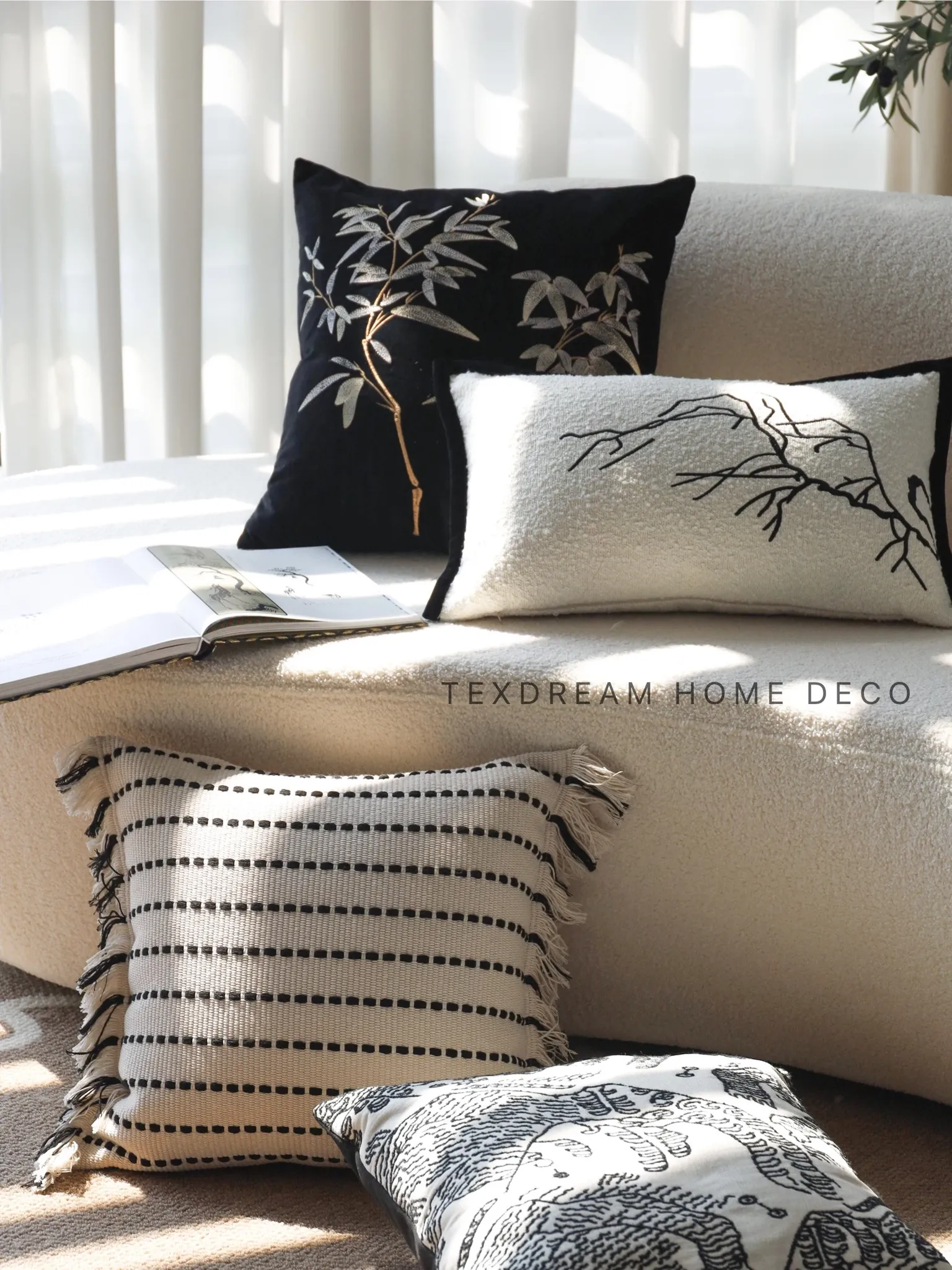 Texdream Chic Black and White Pillow - Modern Luxury Sofa Cushion for Living Room, Bedside Lumbar Support Pillow Cover