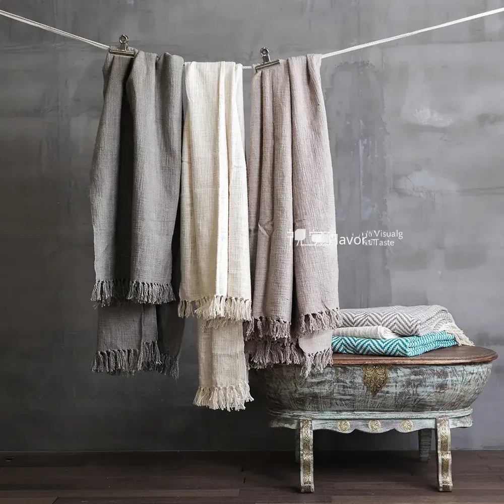Imported Indian Solid Color Cotton Throw Blanket - Versatile Sofa Cover, Bedspread, Beach Towel, Shawl, and Dust Cover for Furniture - Perfect for Home Décor and Cozy Comfort!