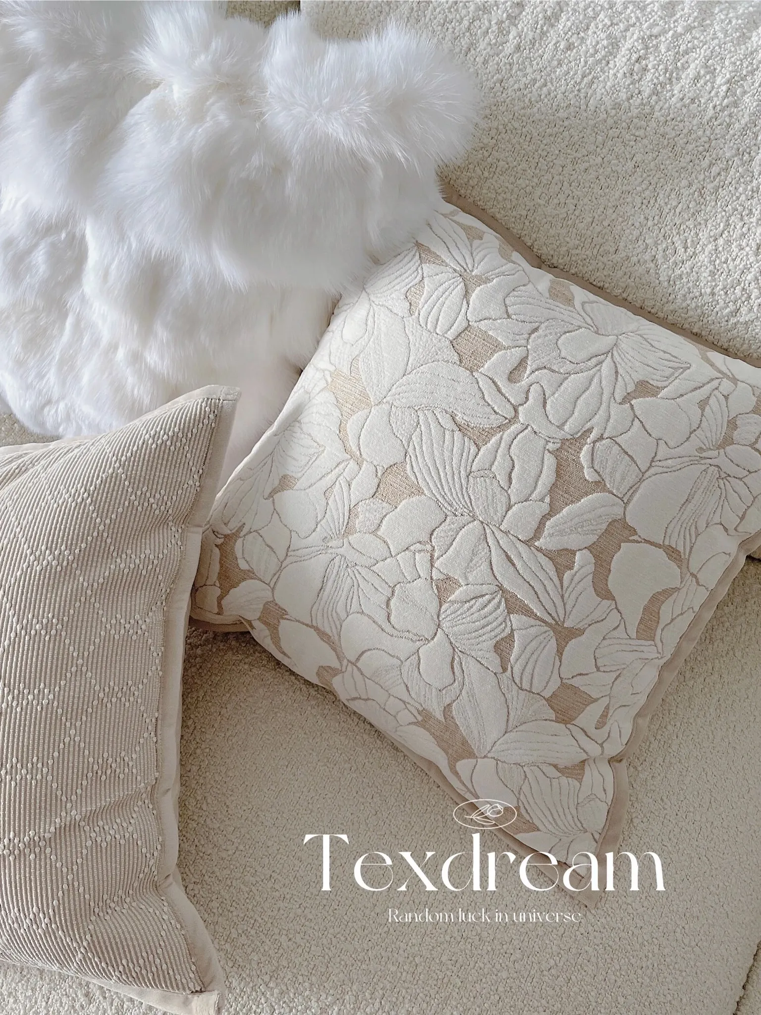 Texdream Luxe Oat Milk Cream Faux Fur Sofa Pillow - Vintage Cotton Linen Cushion with Insert for Elegant Living Rooms