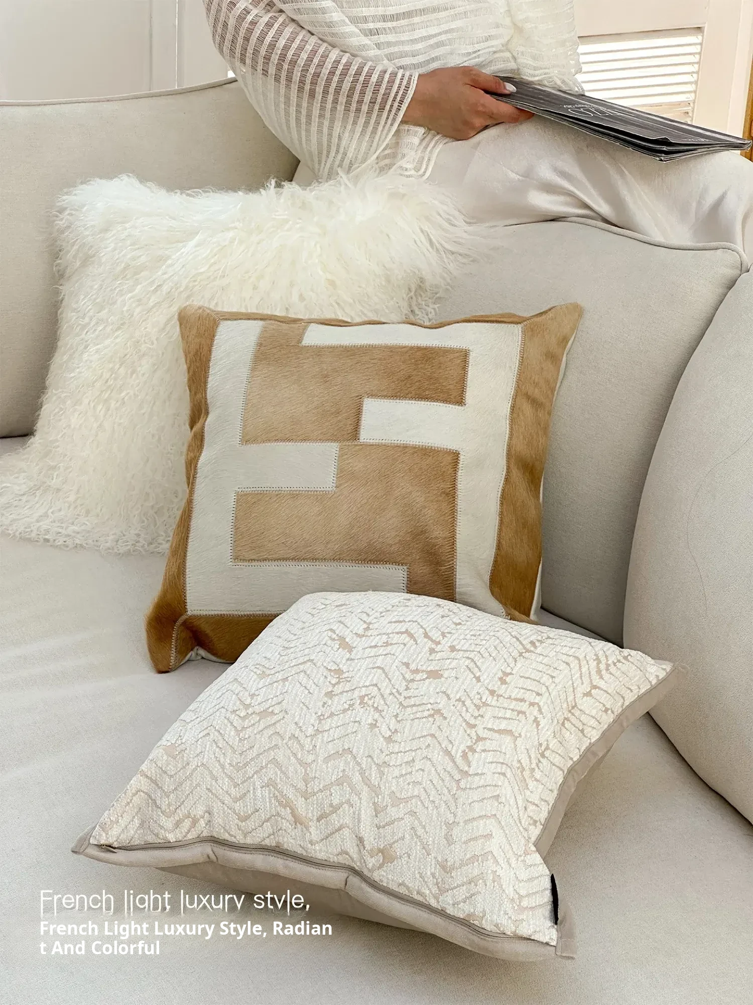 Texdream Luxury Genuine Sheepskin Pillow Cover - Elegant INS-Style Decorative Cushion for Sofa and Bed, Perfect for High-End Showroom Interiors