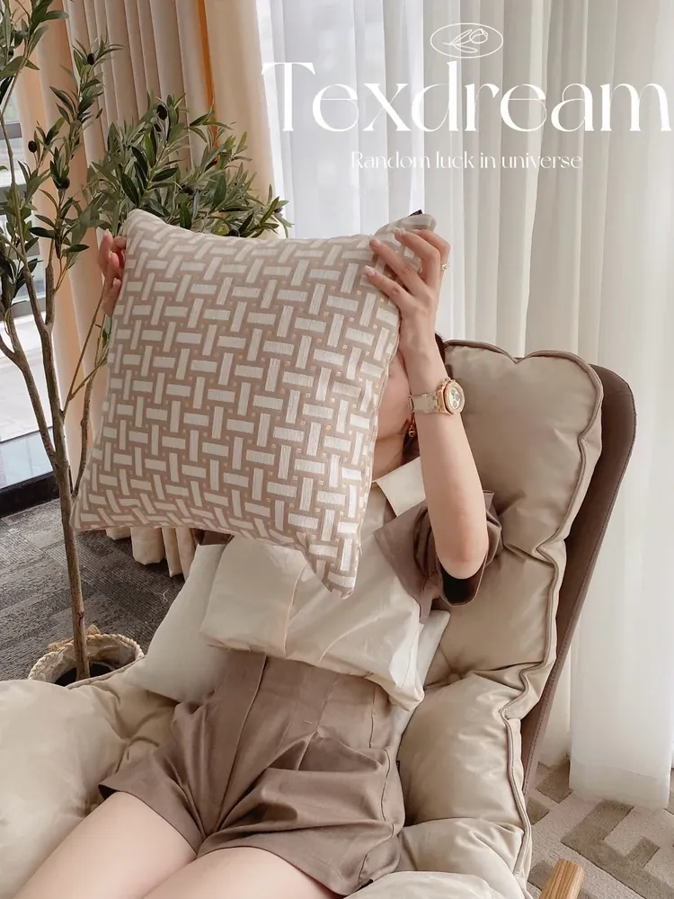 Texdream Attitude Milk Tea Brown Modern Minimalist Living Room Sofa Cushion Cover with Insert - Perfect for Stylish Home Decor!
