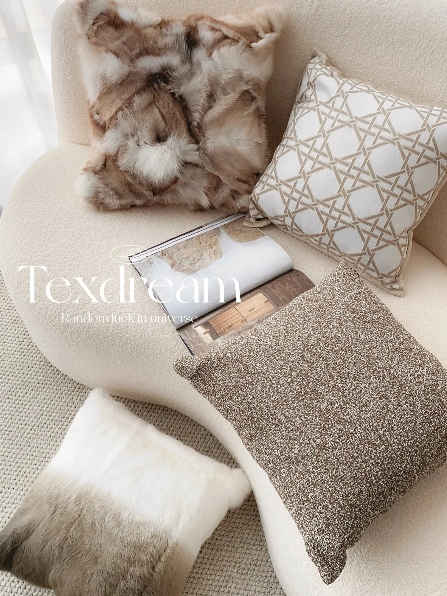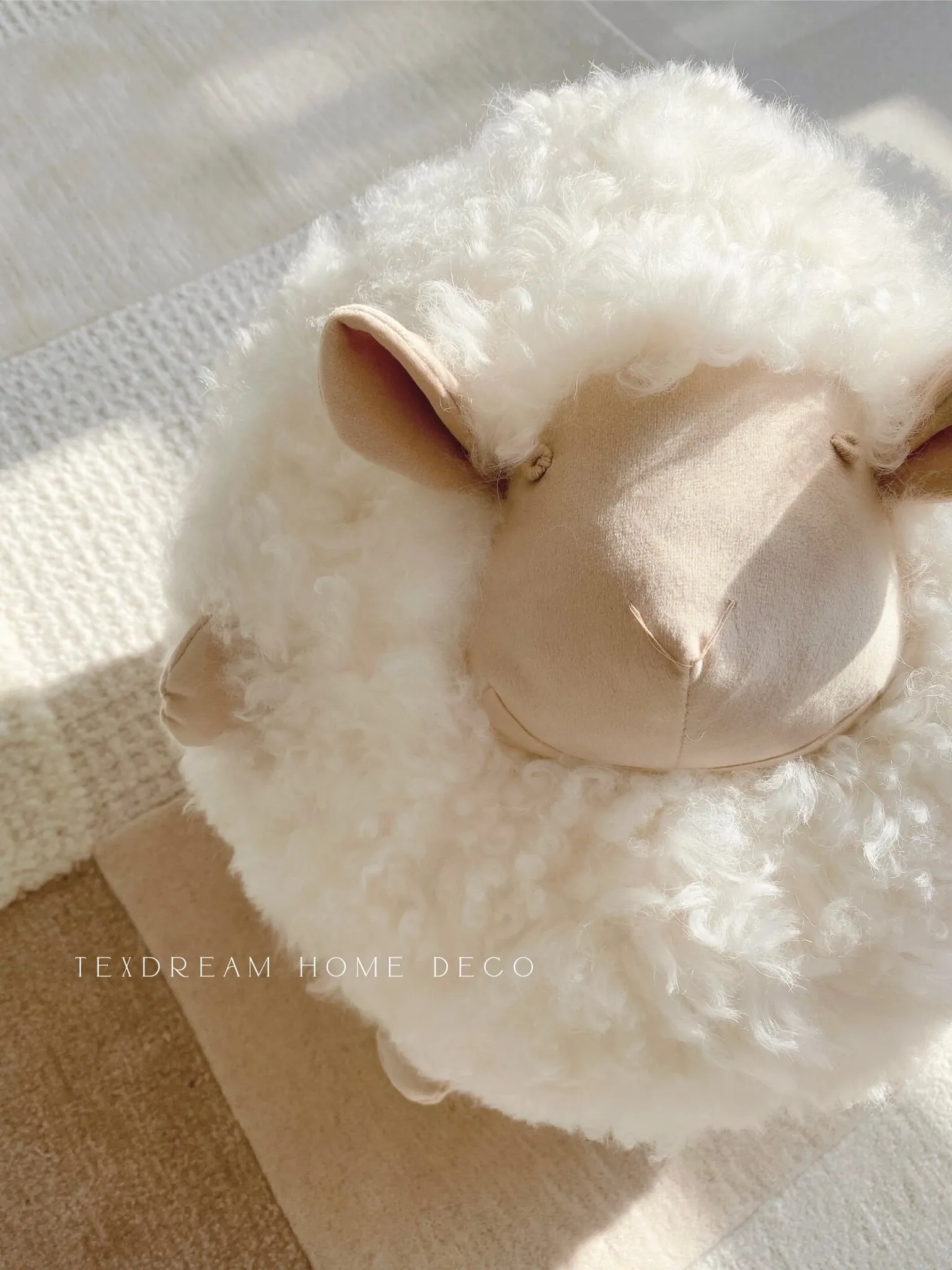 Texdream Attitude Sand Dune Beige Luxury Sheep Wool Faux Fur Pillow – Nordic Minimalist Sofa Cushion for Living Room Comfort
