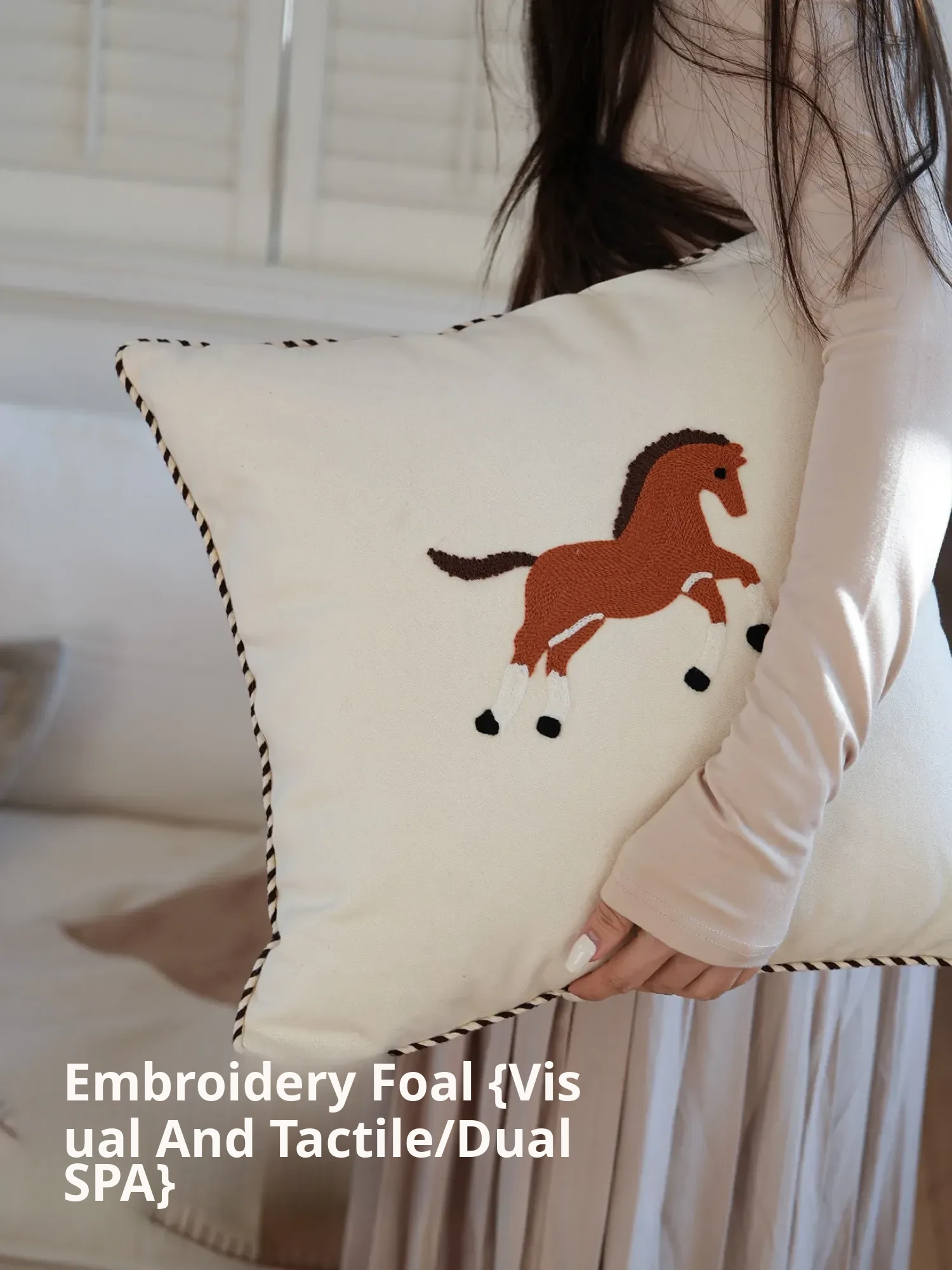 Texdream Attitude Vintage-Style Embroidered Waist Pillow - Majestic Horse Design for Sofa and Armchair, Perfect for Home Decor