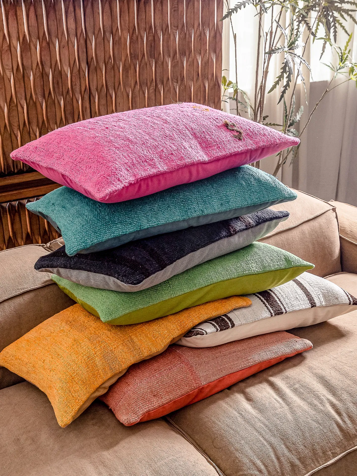 Turkish Imported Nordic Modern Handmade Wool and Jute Woven Throw Pillow – Mediterranean Style Solid Color Cushion for Cozy Homes