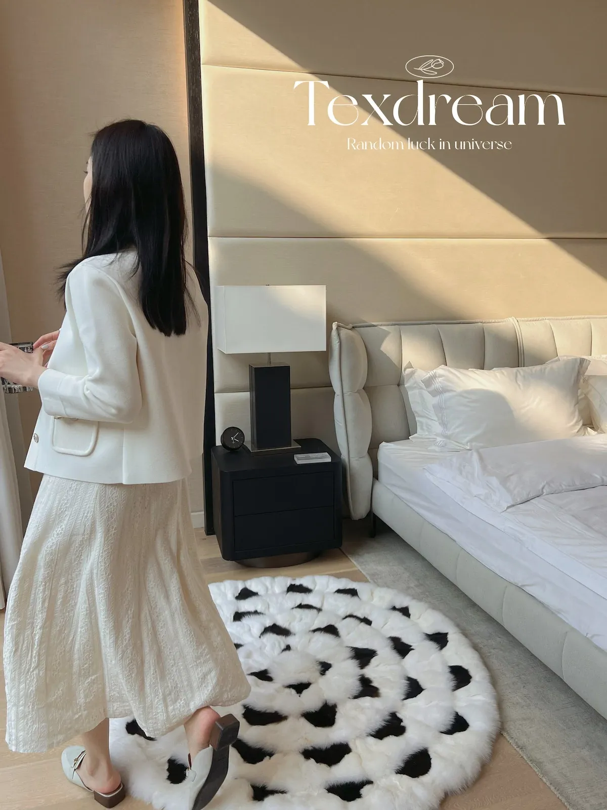 Texdream Luxury | Exquisite Real Fox Fur Carpet & Modern Chic Throw Pillows for an Elegant Living Room
