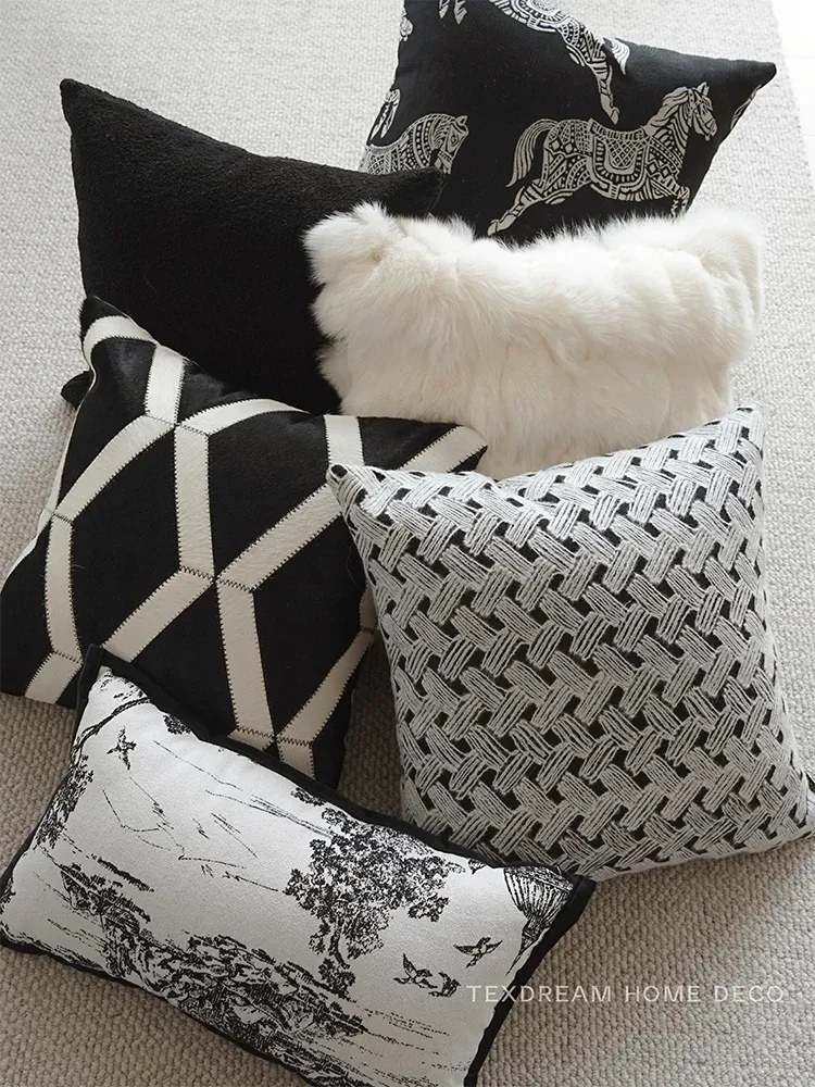 Texdream Modern Minimalist Luxury Sofa Cushions - Black and White Decorative Pillows for Living Room and Bedroom, Stylish Lumbar Support for Sample Rooms