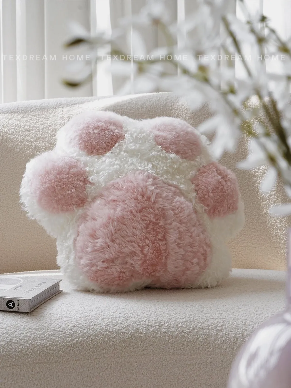 Texdream Attitude Natural Sheepskin Cat Paw Cushion - Plush Throw Pillow for Sofa and Kids' Room, Adorable Decorative Pillow and Seat Cushion.
