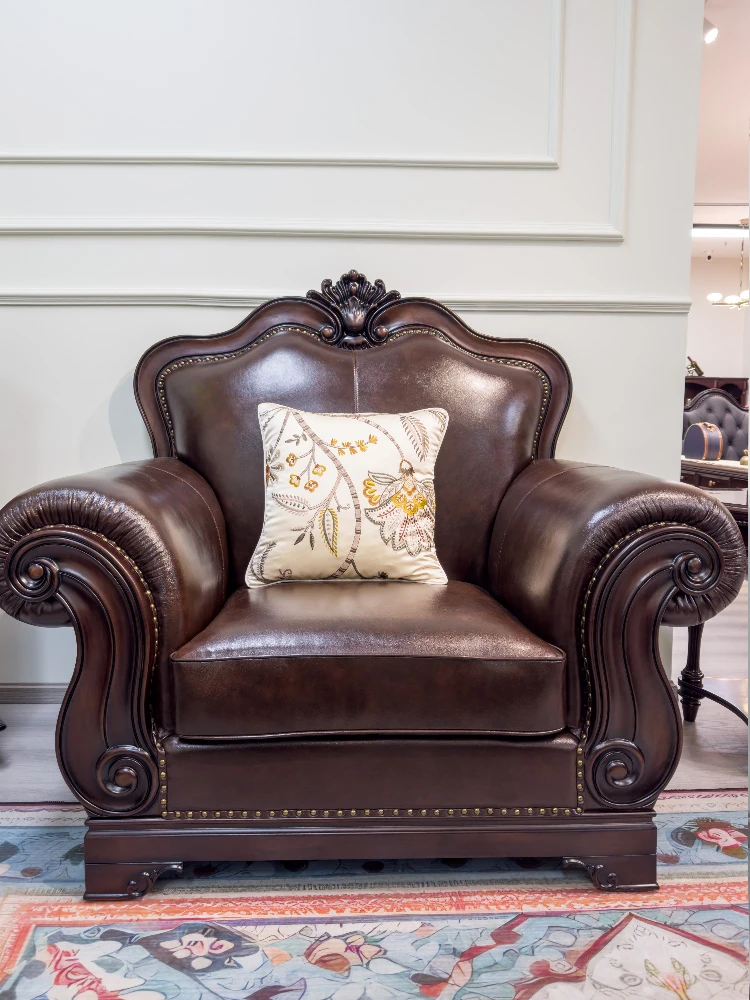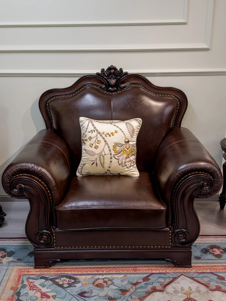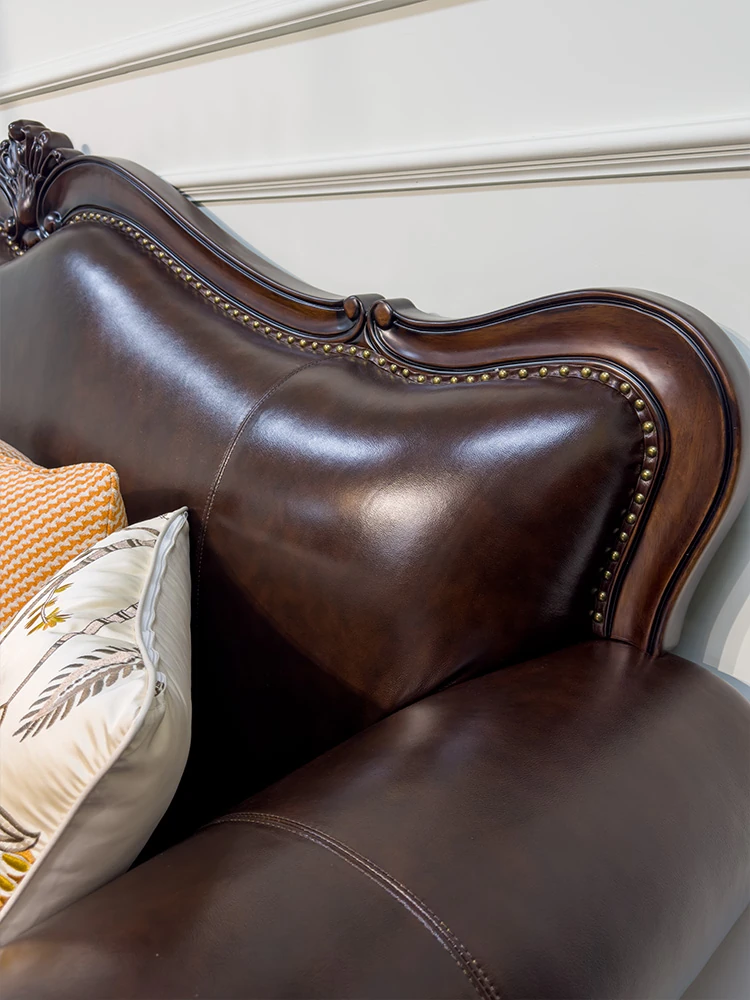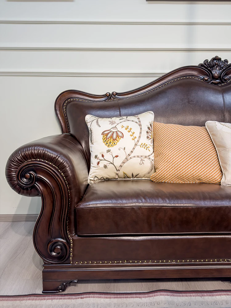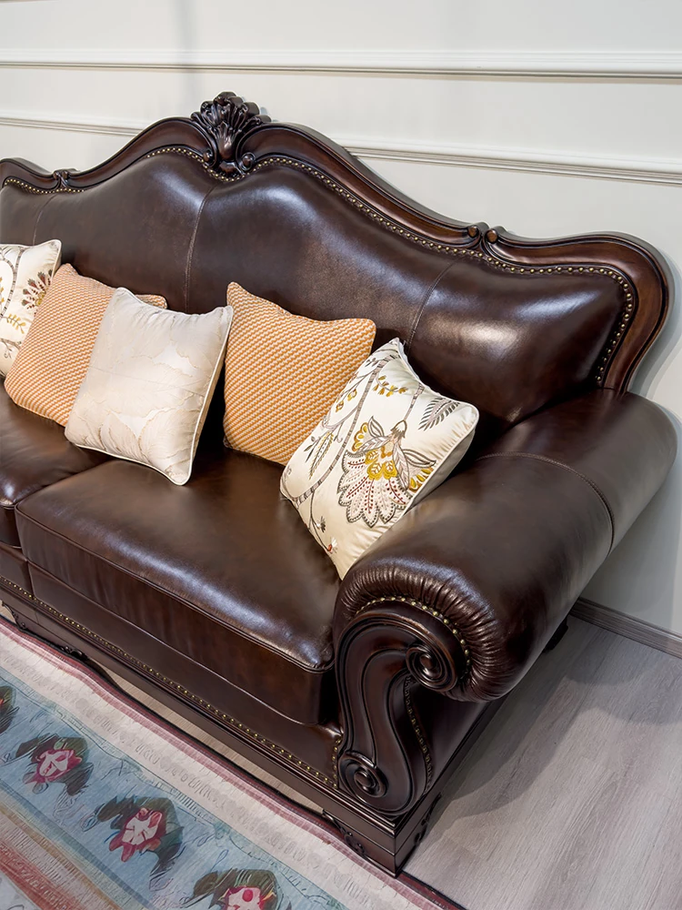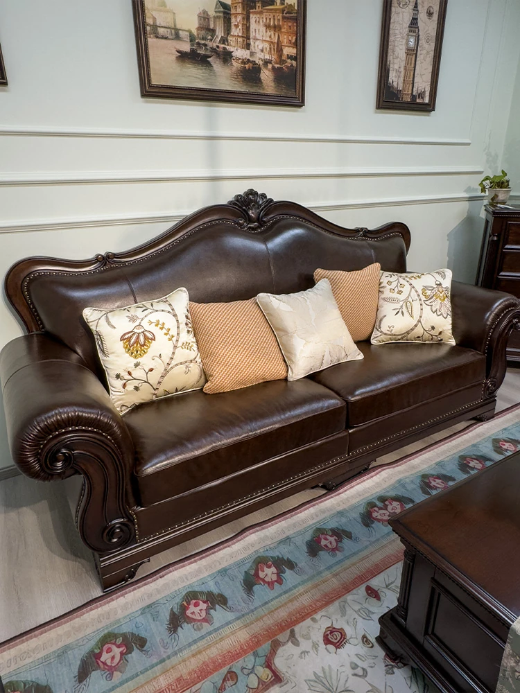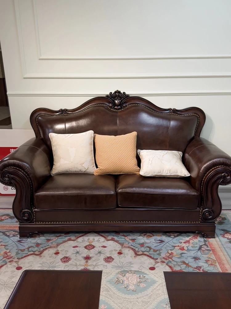 2025 New Retro High-End American Leather Sofa Set for Living Room - 124-Person Modular Design with Solid Wood Furniture - Elevate Your Space with Timeless Luxury!