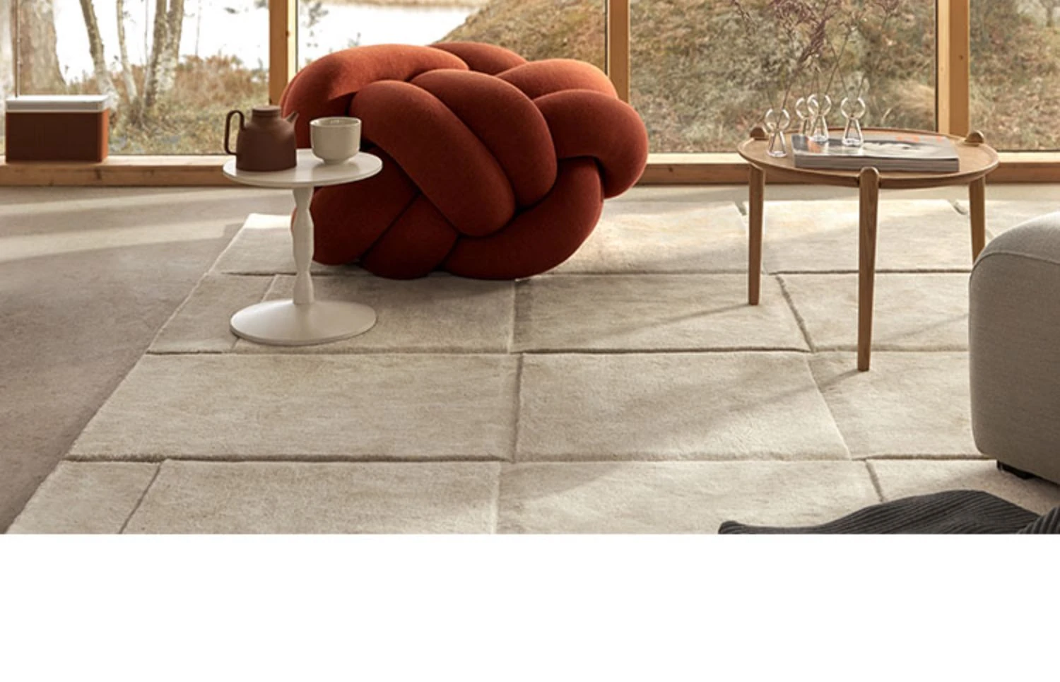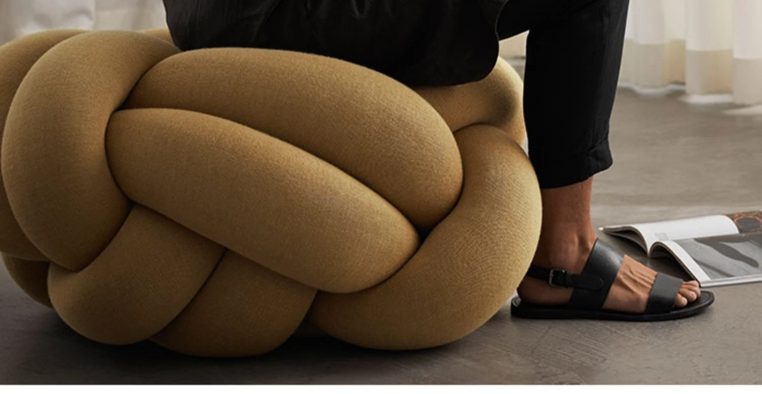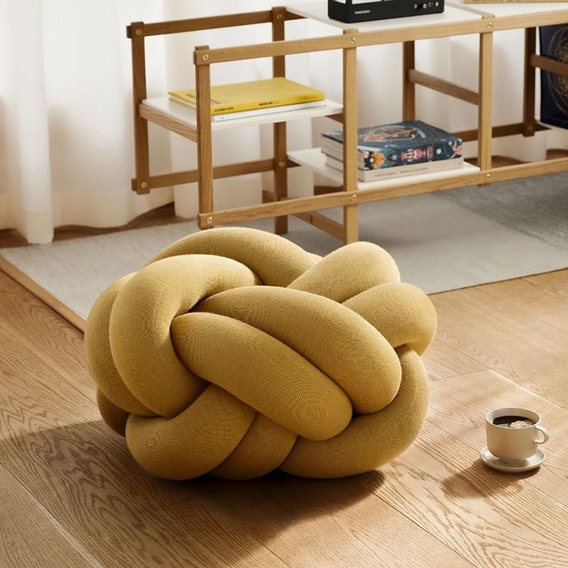 30% Off - Swedish Design House Knitted Wool Knotted Lazy Sofa Ottoman - Cozy Round Fabric Stool for Living Room