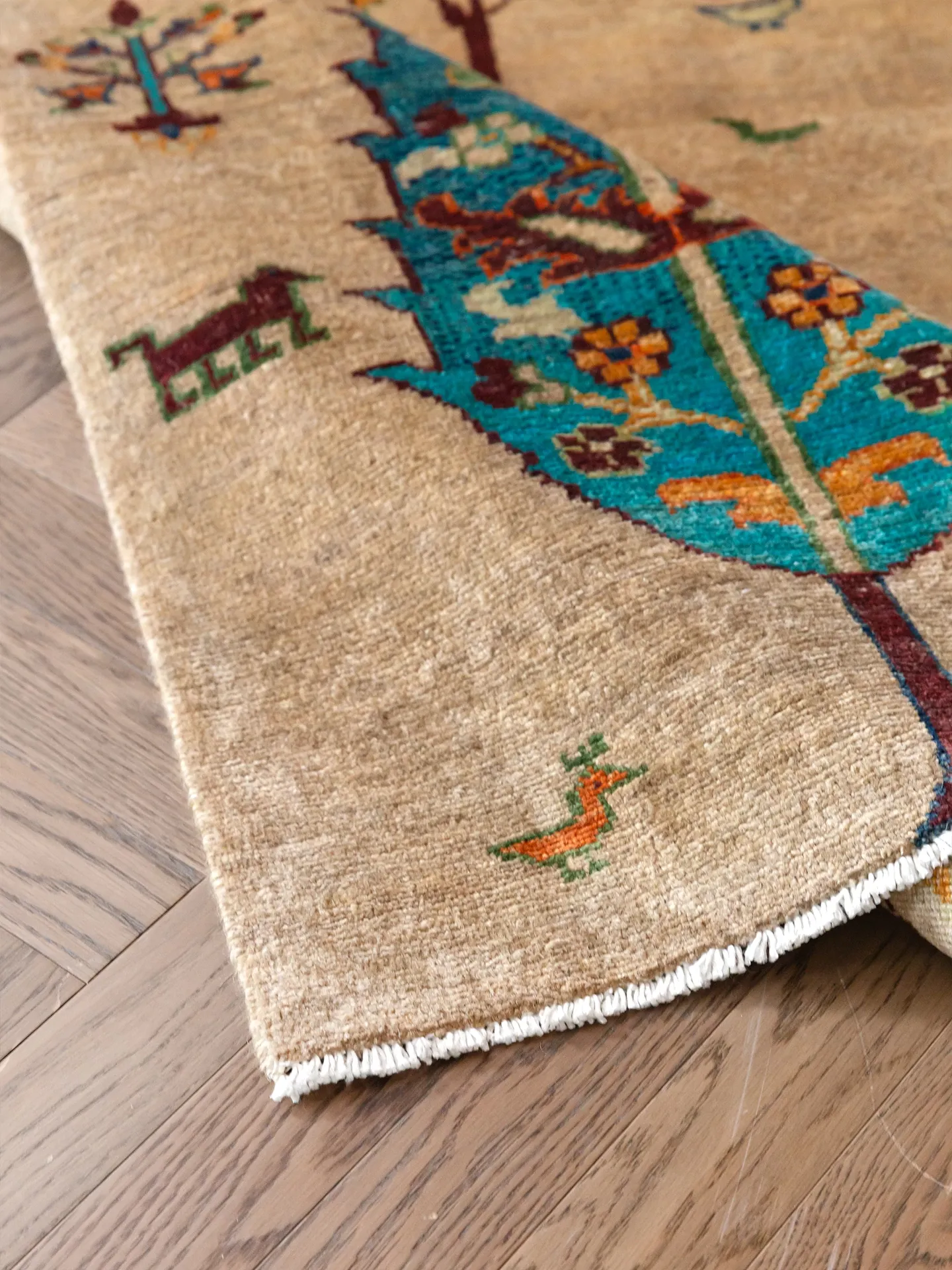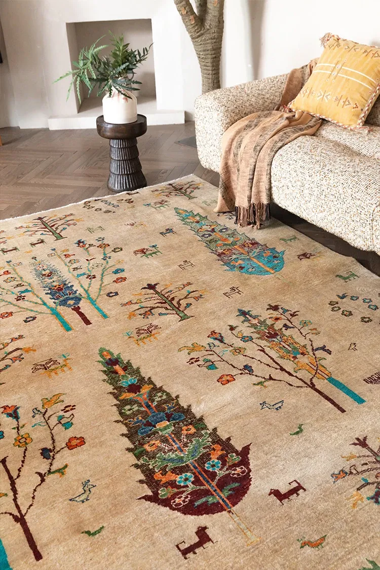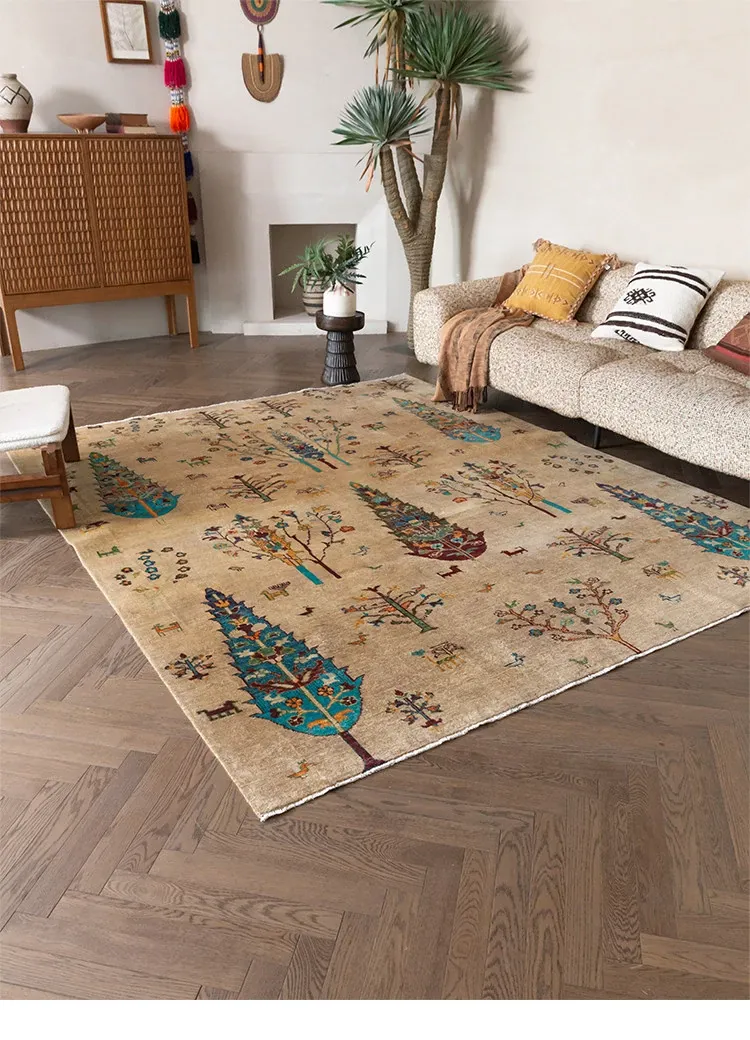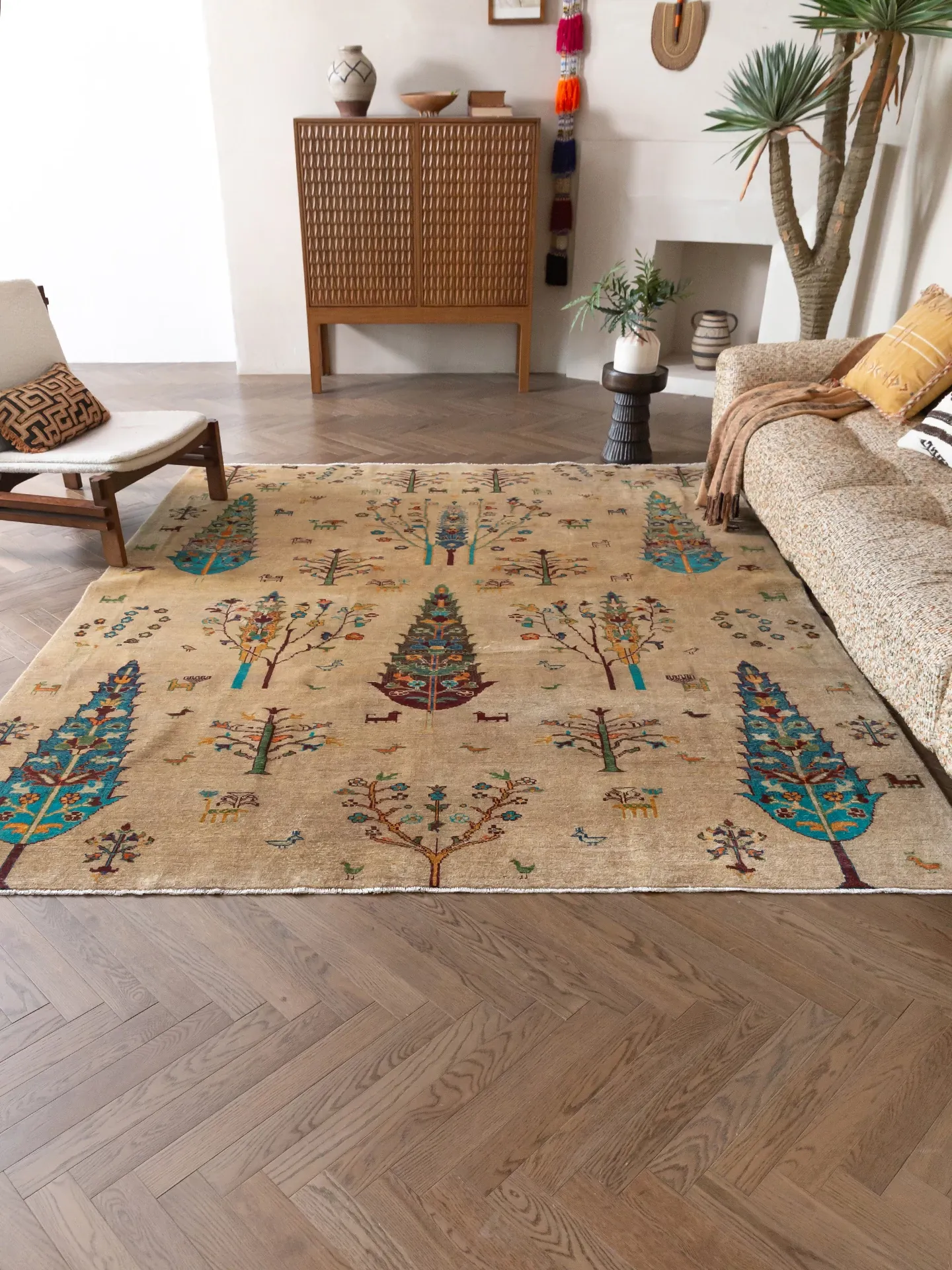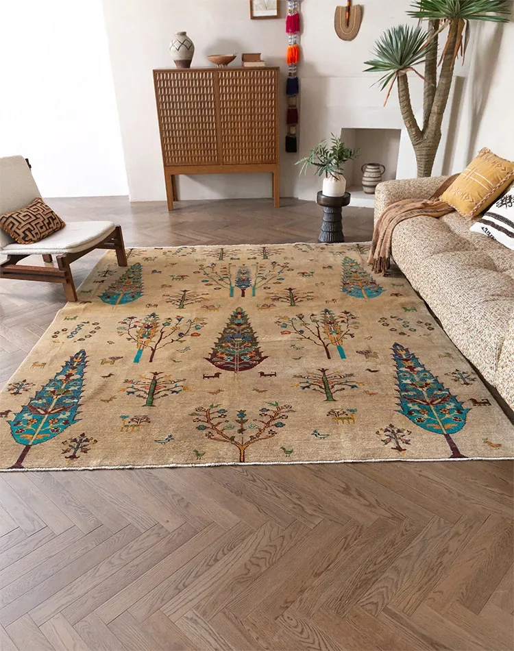 Afghan Imported Persian Nomadic Wool Carpet - Handwoven Green Tree of Life Design, A Touch of Cultural Elegance for Your Home