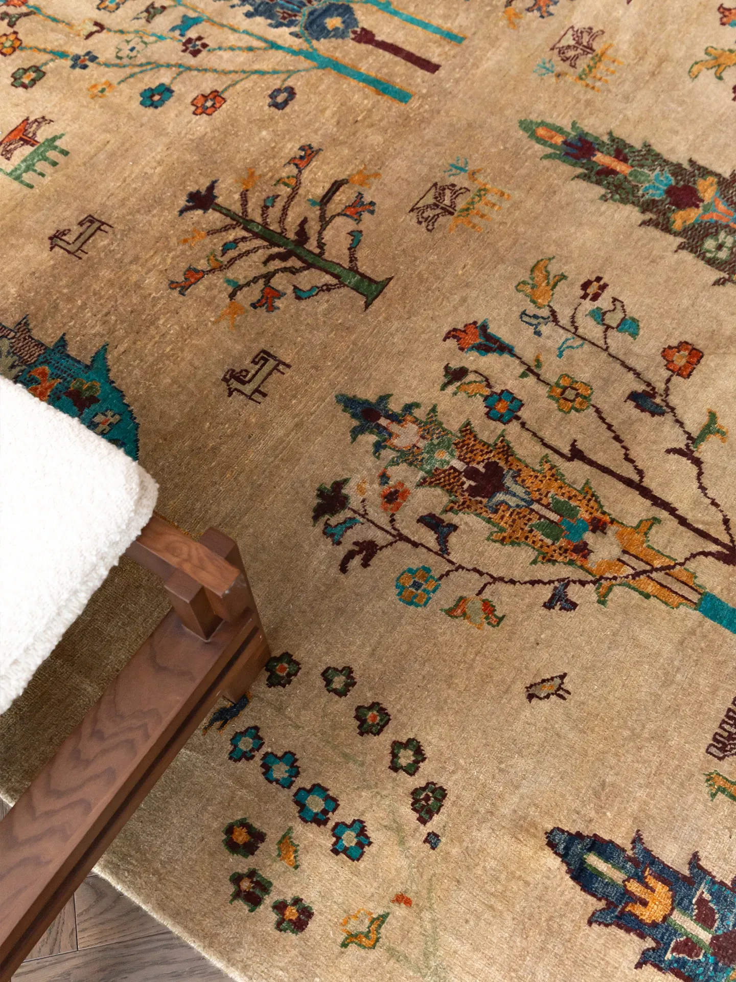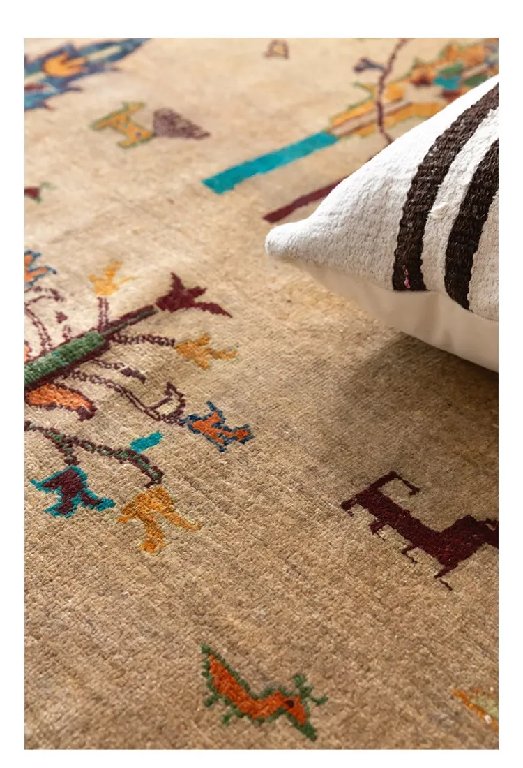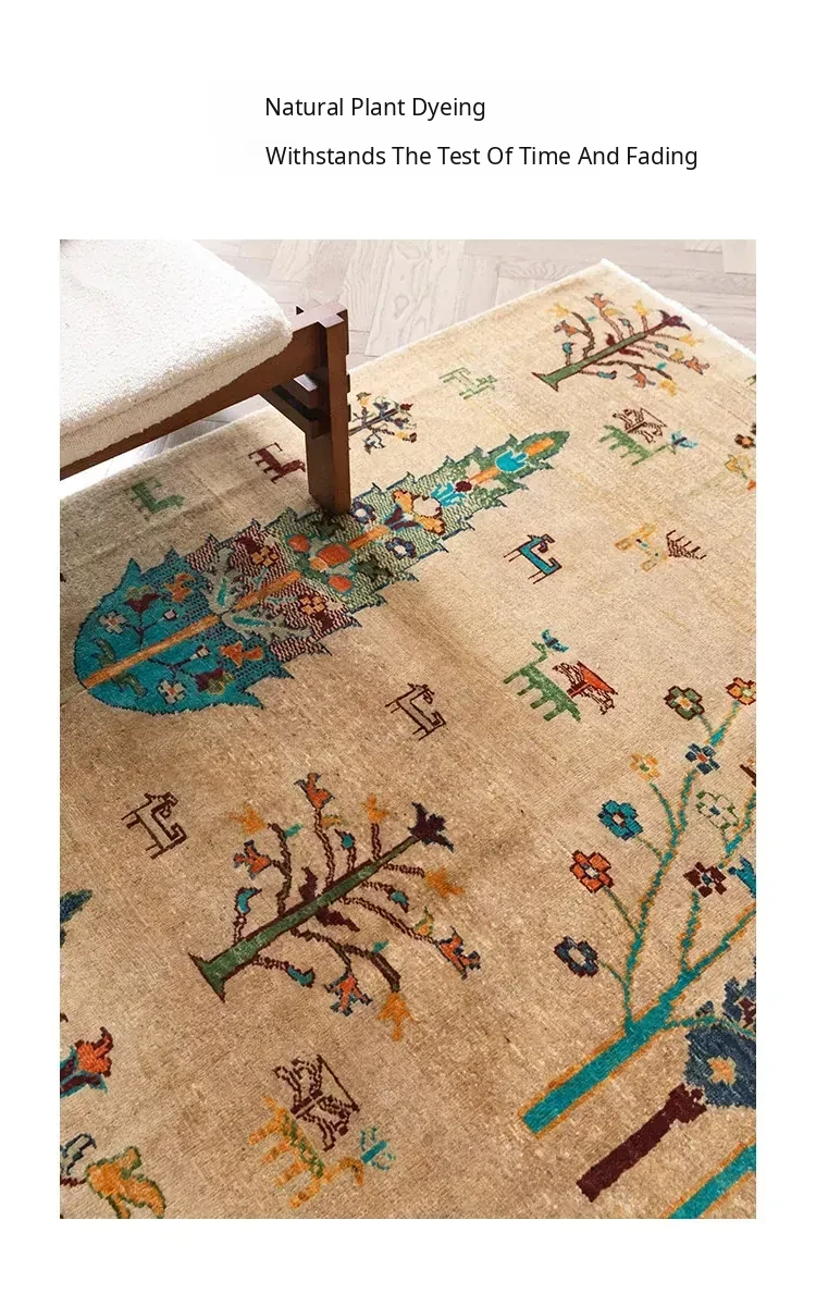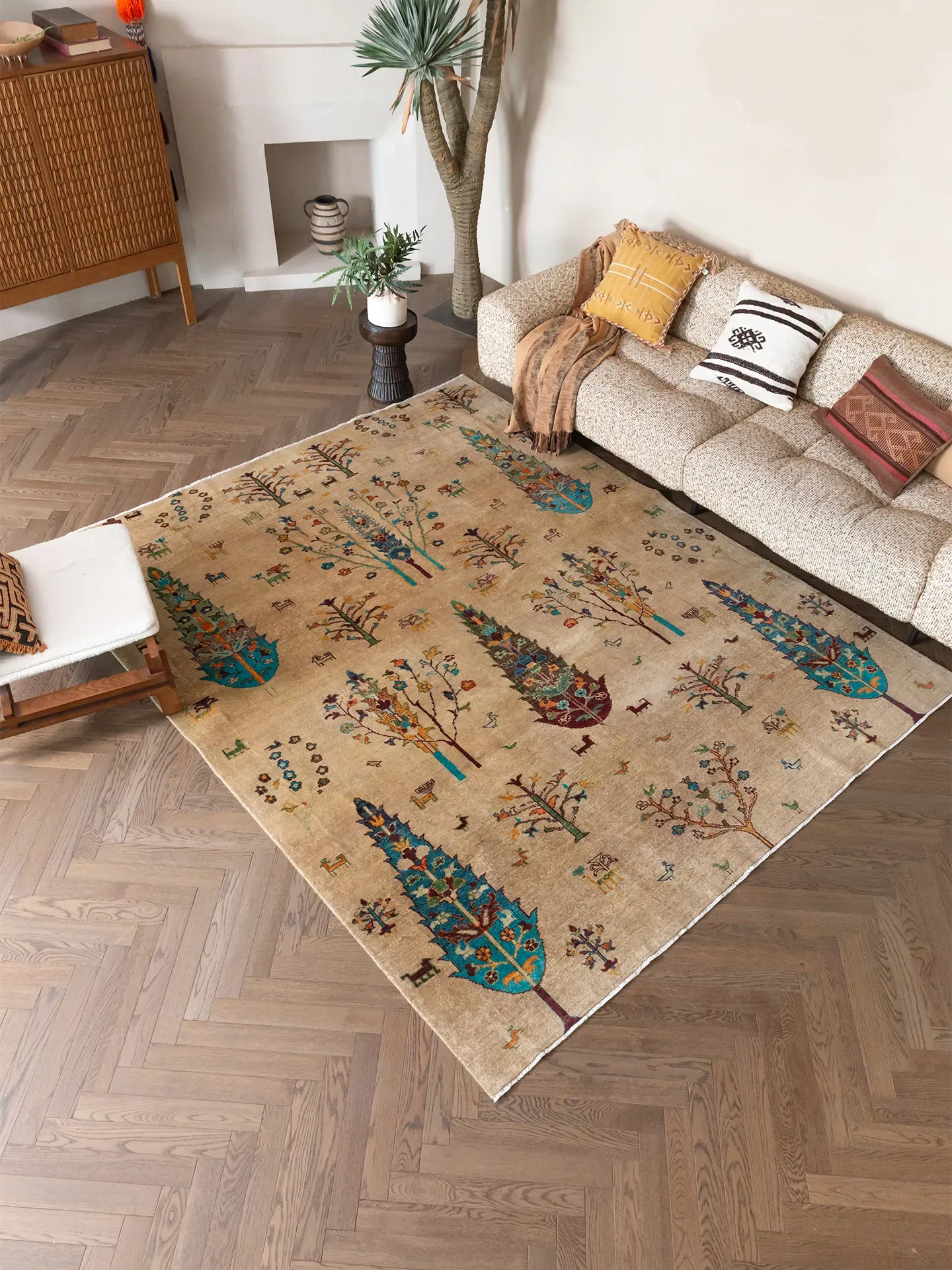 Afghan Imported Persian Nomadic Wool Carpet - Handwoven Green Tree of Life Design, A Touch of Cultural Elegance for Your Home