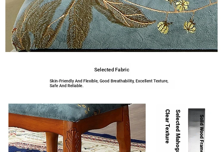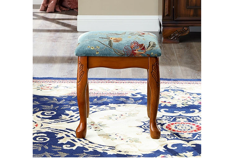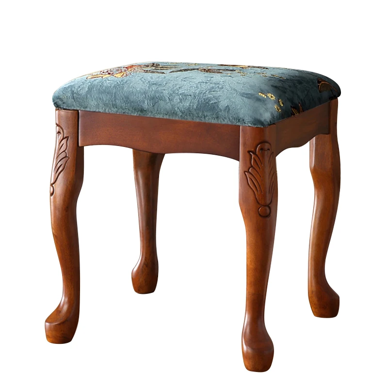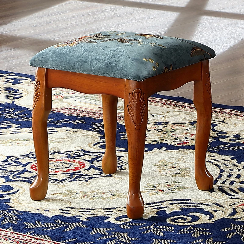 American Solid Wood Makeup Stool - Elegant Bedroom Bench & Shoe Changing Stool - European Fabric Dressing Table Seat - Special Clearance Sale for Gu Zheng & Piano Bench