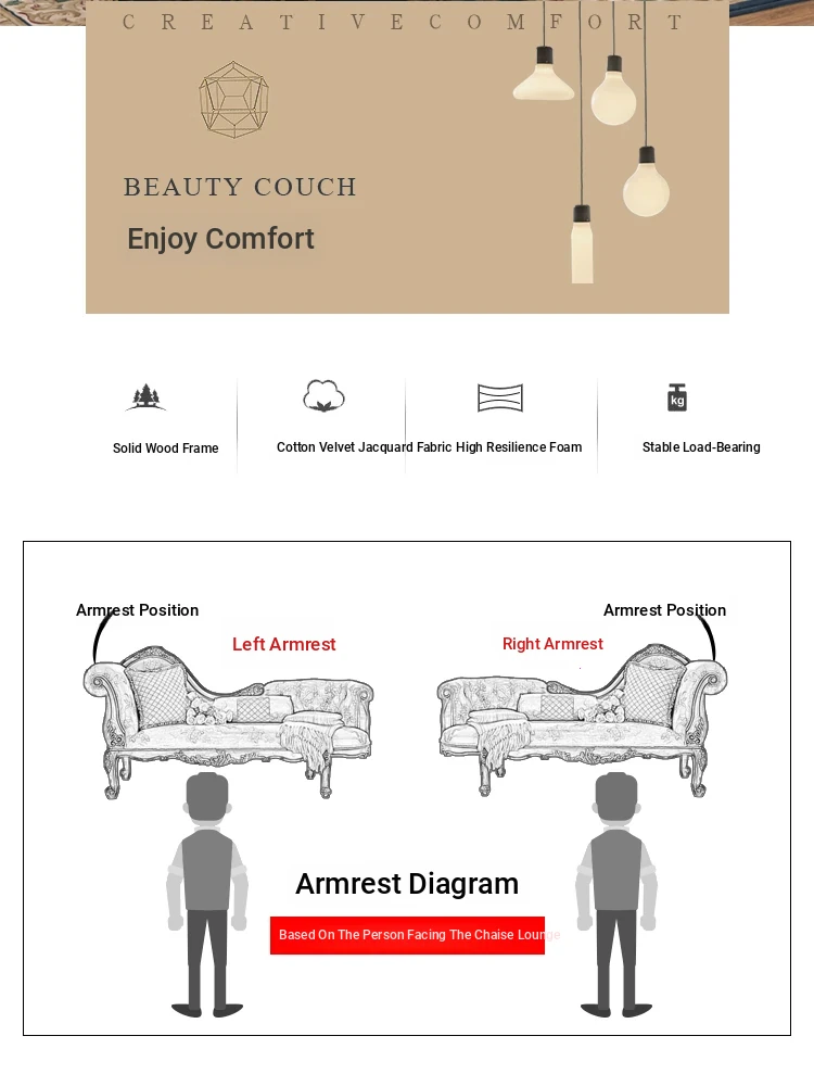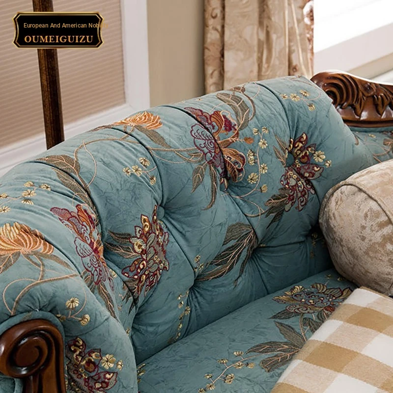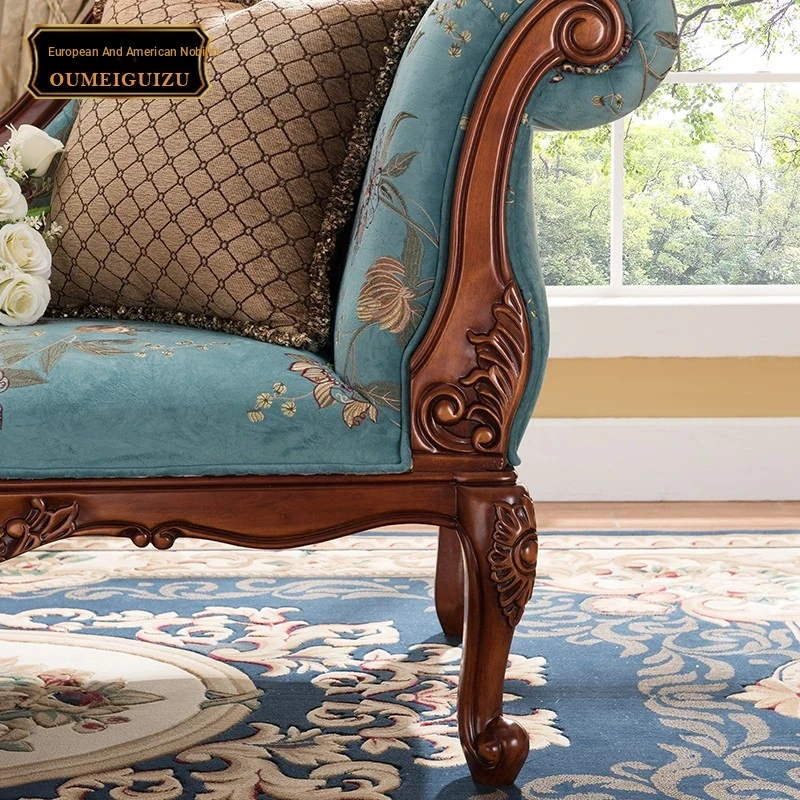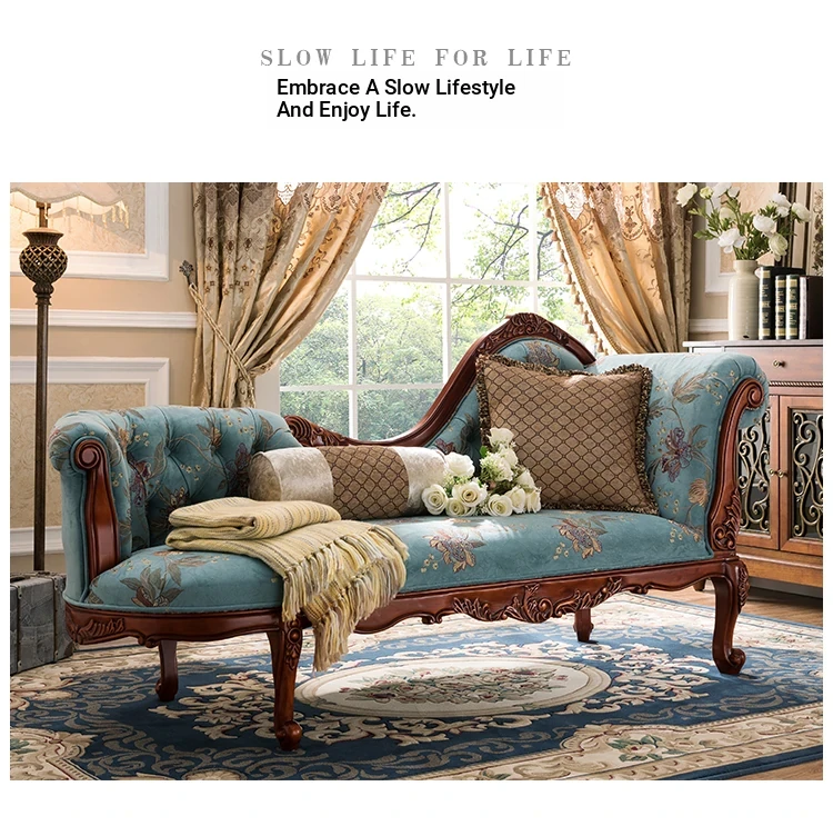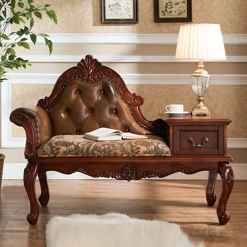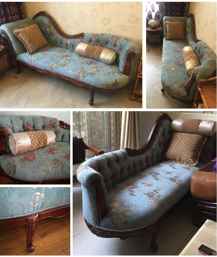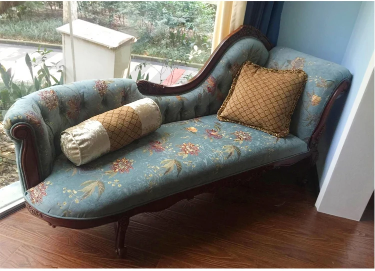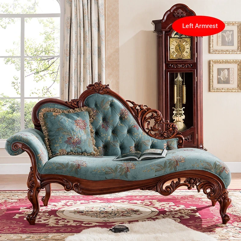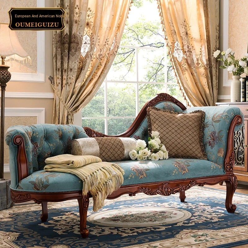 American Style Solid Wood Chaise Lounge - Elegant Single Sofa Chair for Living Room and Bedroom, Perfect for Small Spaces, European-Inspired Design