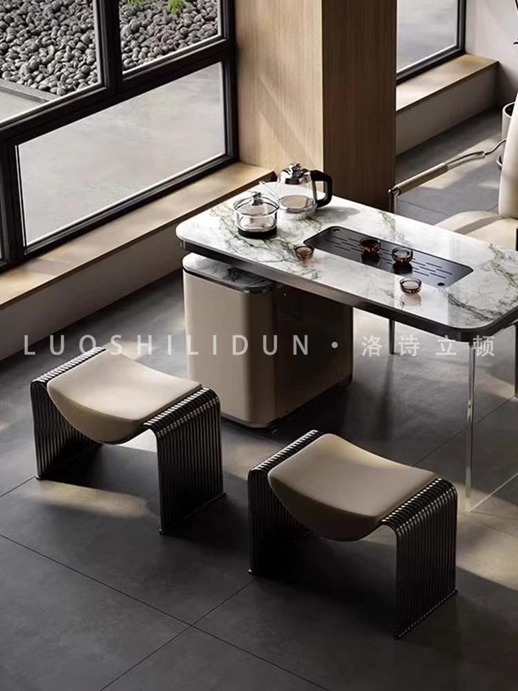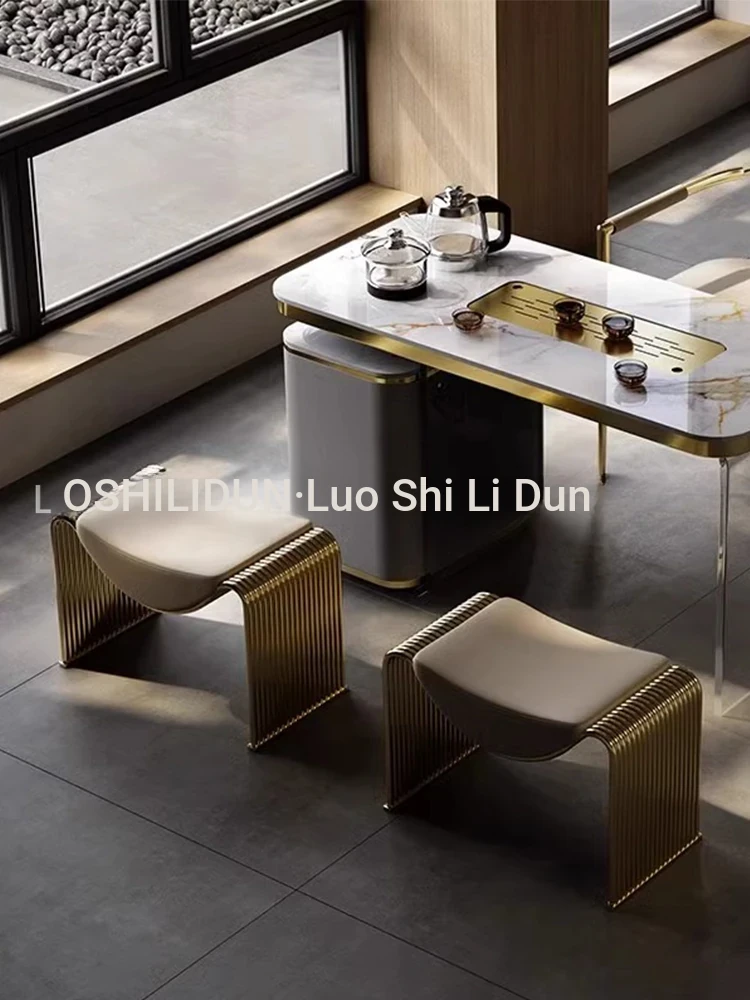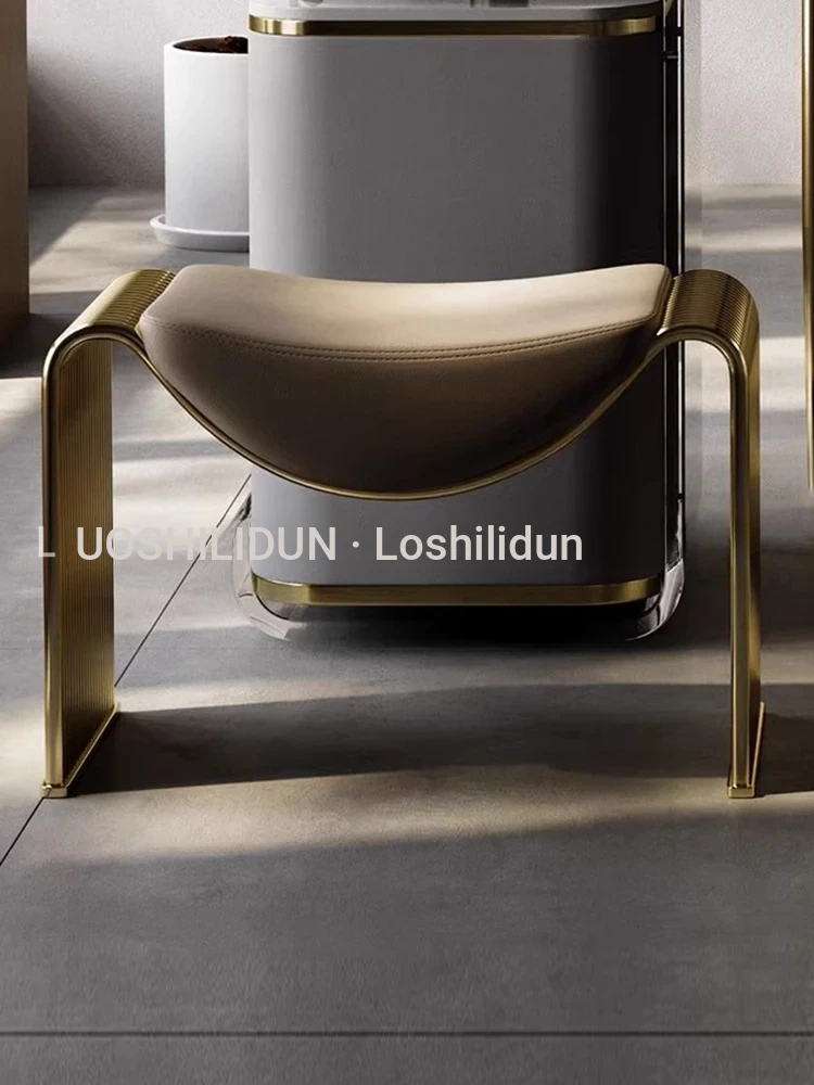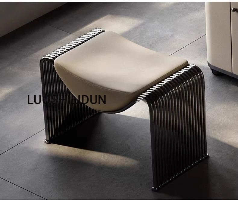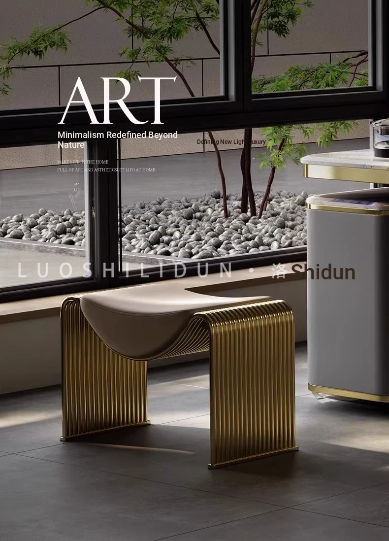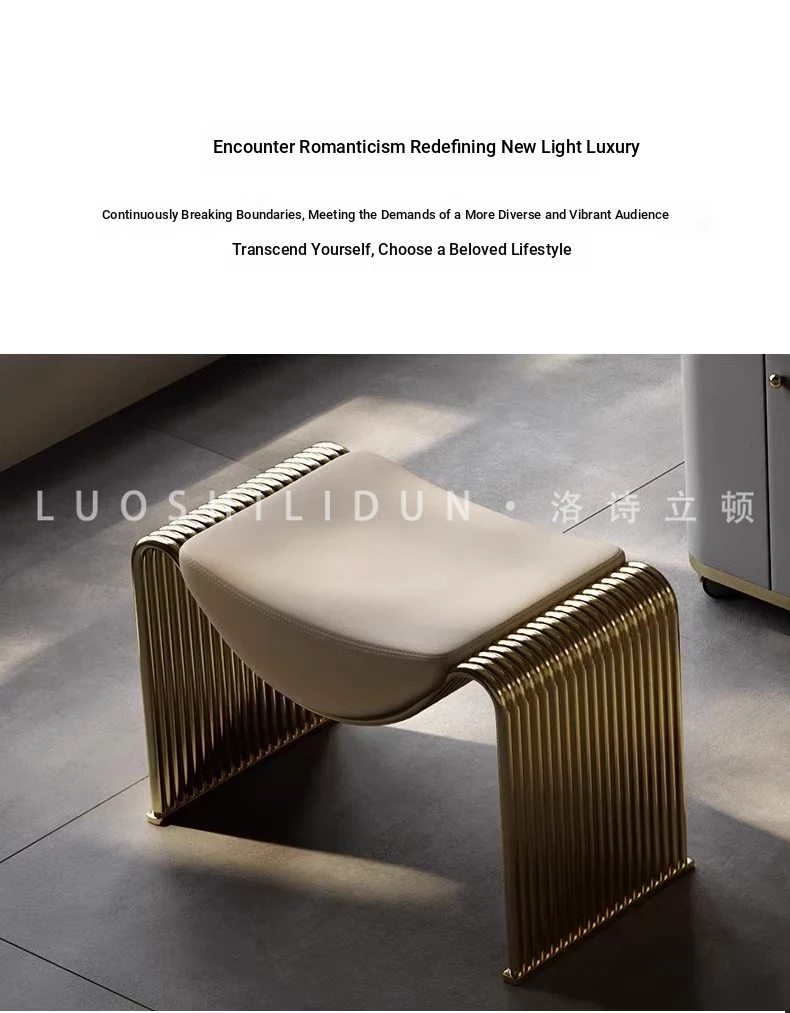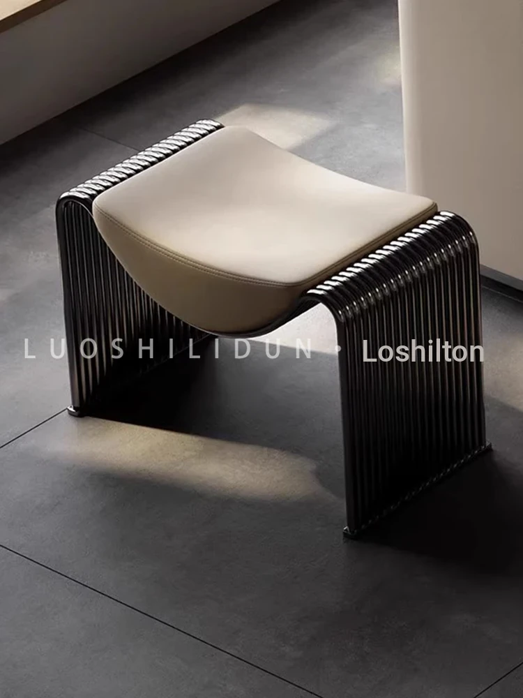 Chic Minimalist Makeup Stool - Designer Low Vanity Seat for Bedroom, Stylish Tea Table & Shoe Changing Bench, Elegant Leather Stool for Home Use, Elevate Your Space with Luxury Touch