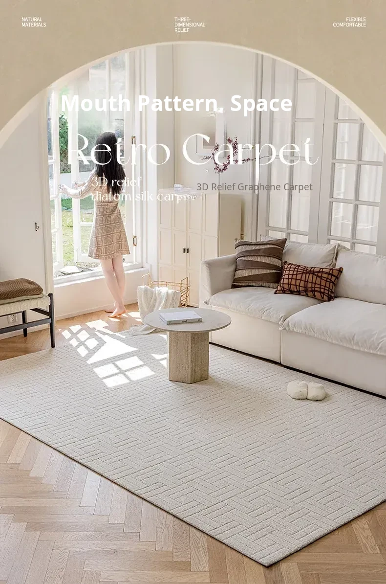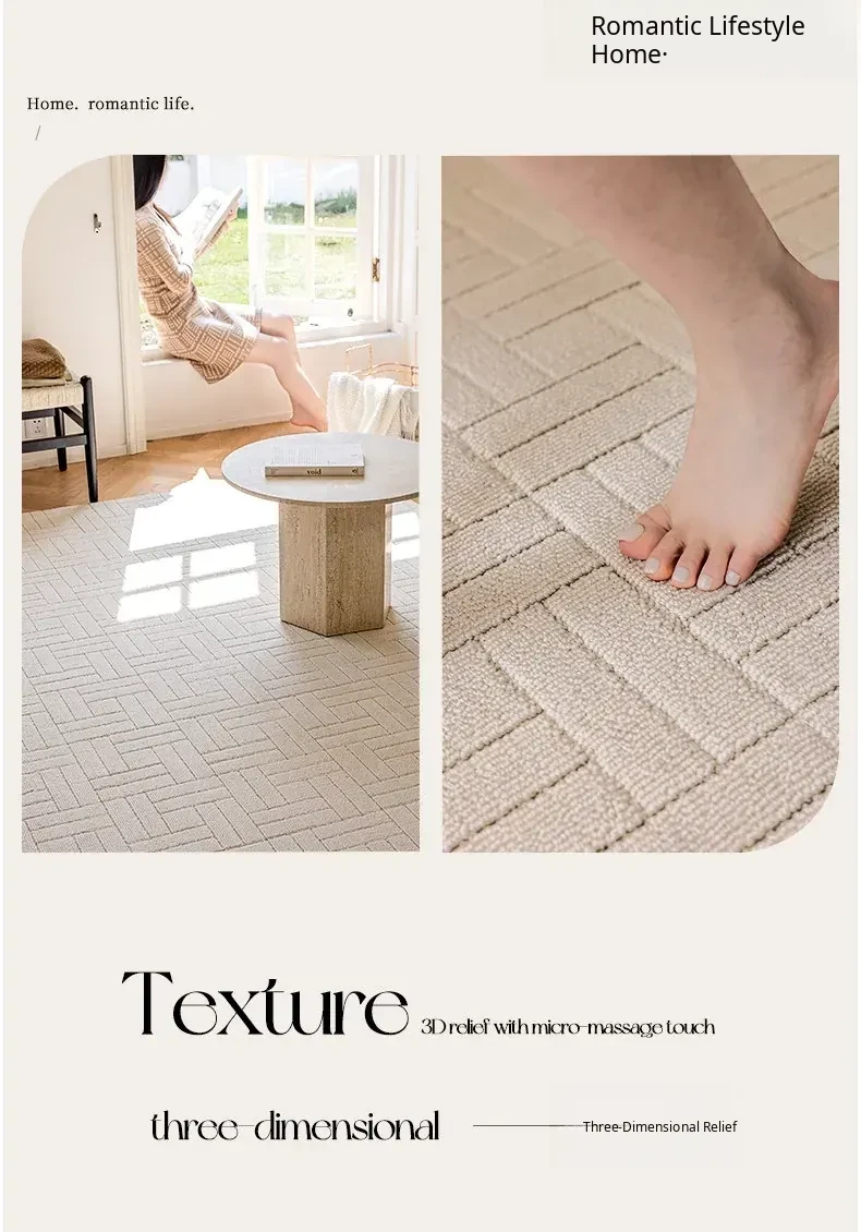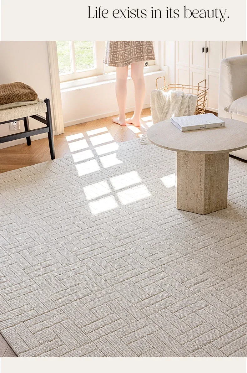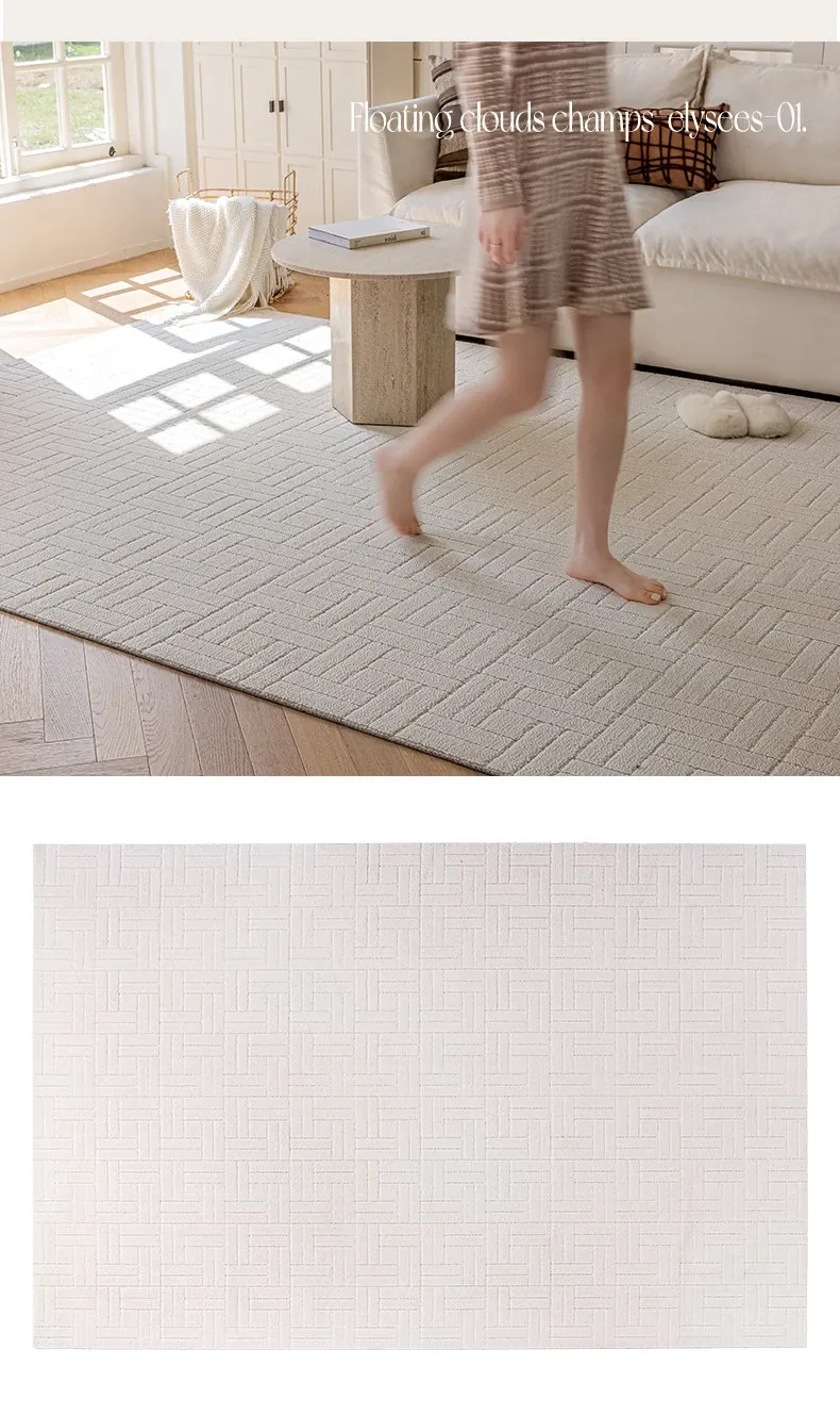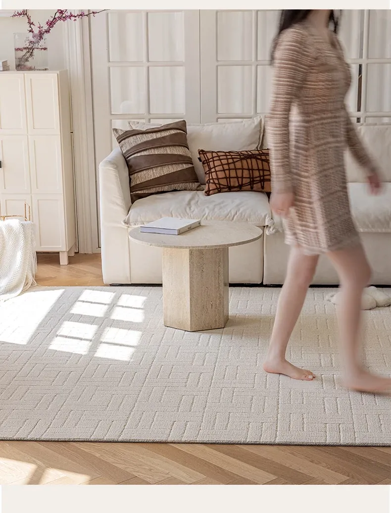 【Clearance Sale】Elegant French Cream-Style Carpet with 3D Relief for Living Room - Premium Quality, Soundproofing, Antibacterial, and Chic White for Your Bedroom.