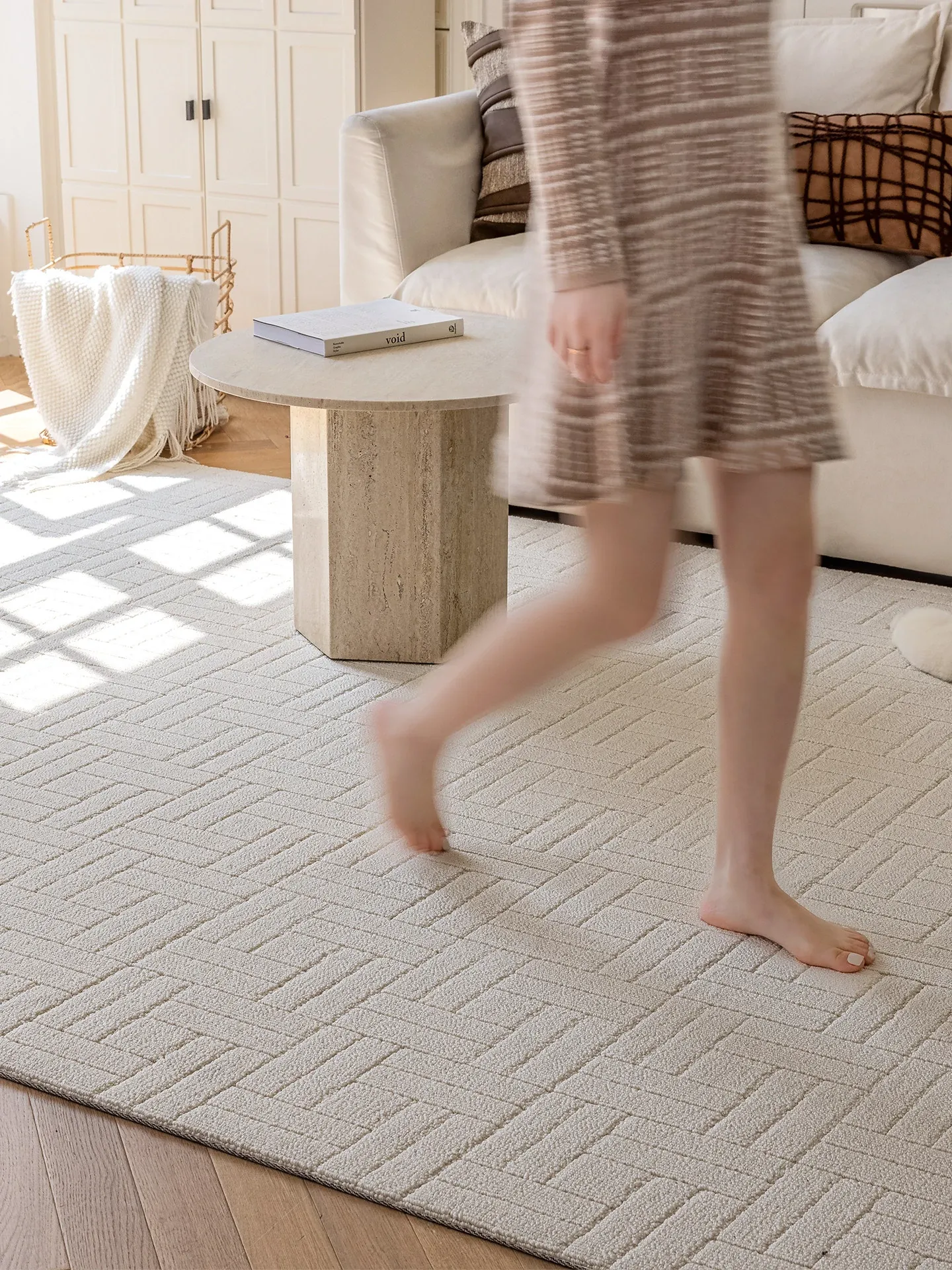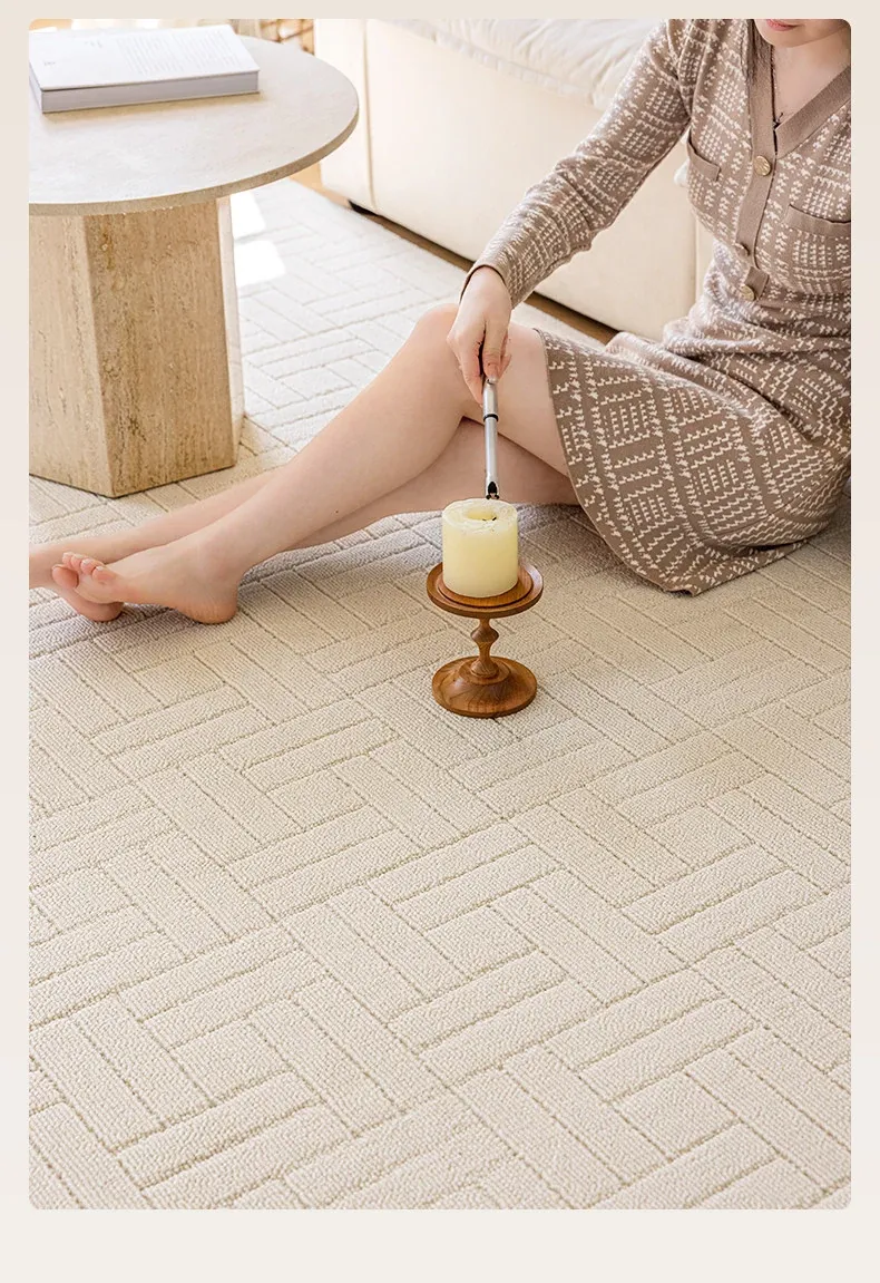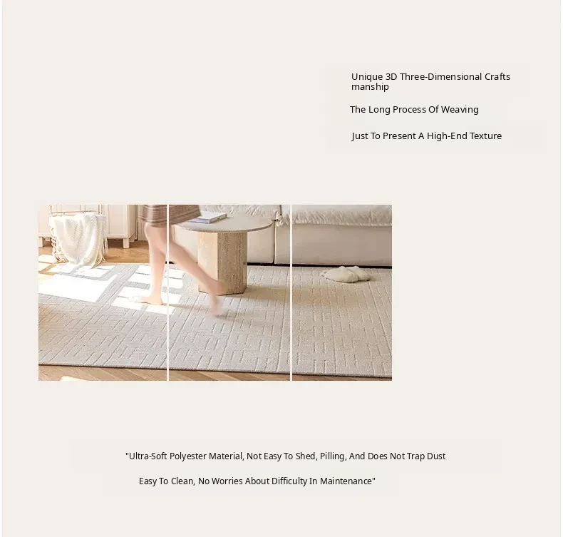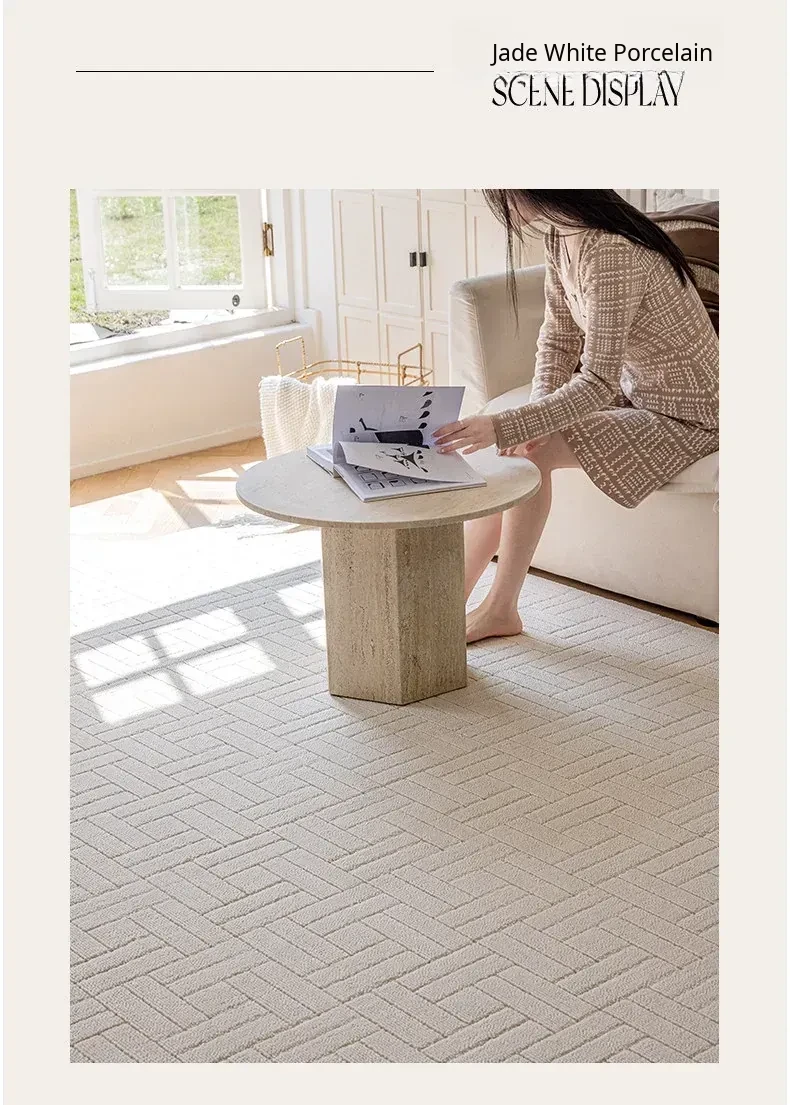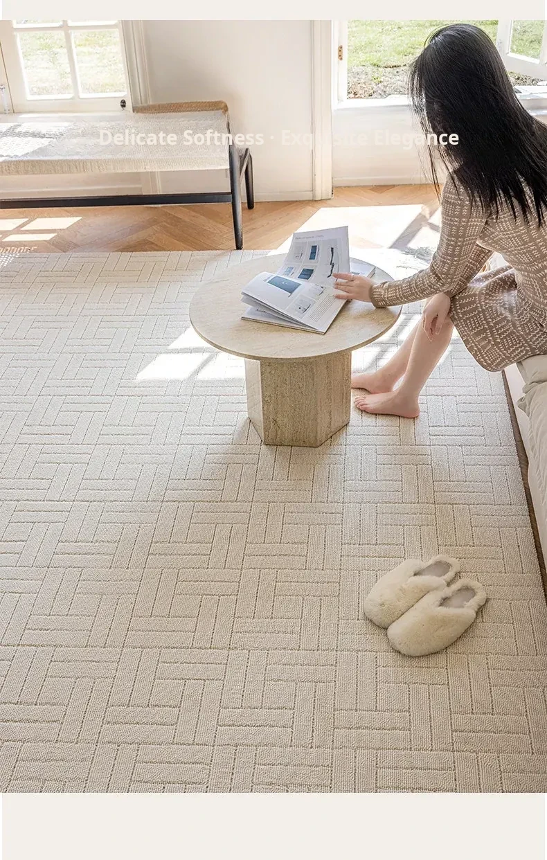 【Clearance Sale】Elegant French Cream-Style Carpet with 3D Relief for Living Room - Premium Quality, Soundproofing, Antibacterial, and Chic White for Your Bedroom.