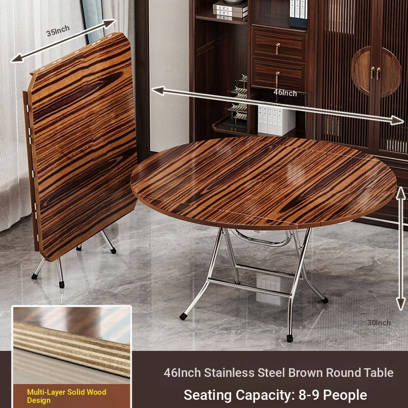 Brown Round Table 46.06 in★ Stainless Steel Legs★ Wooden Multilayer Board