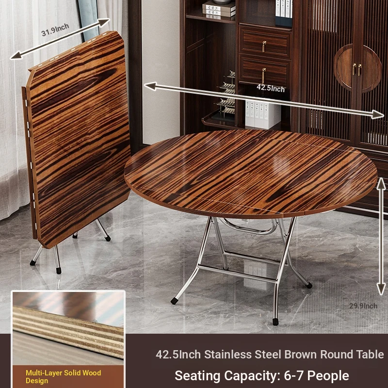 brown round table 42.52in stainless steel legs wooden multilayer board
