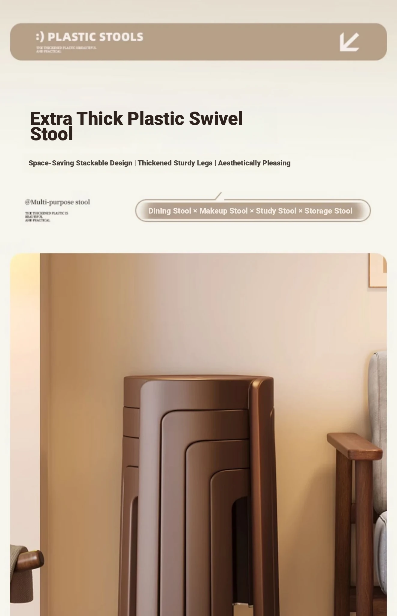 Creamy Plastic Swivel Stool - Sturdy, Durable, and Stylish for Home Use, Stackable Design, Perfect as Extra Dining Chair or Bar Stool with Enhanced Comfort and Quality.