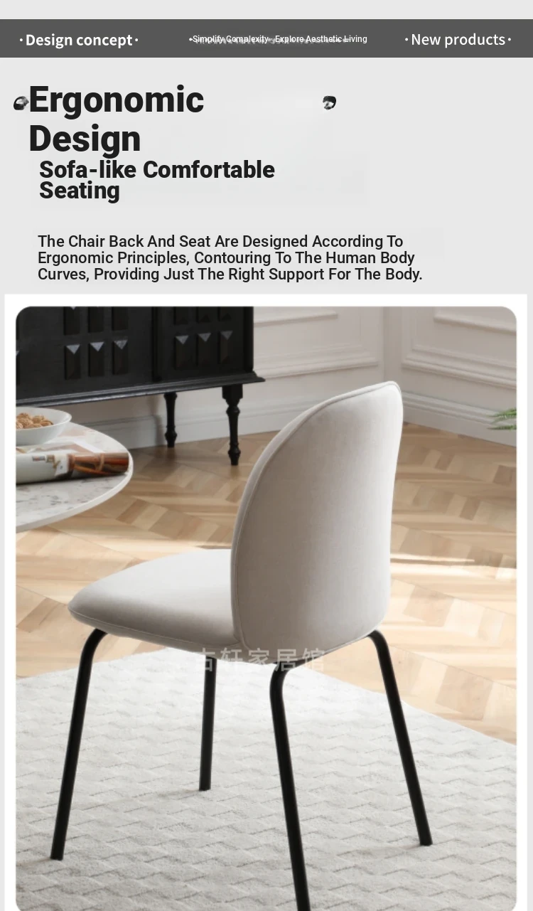 Danish Dining Chair - Nordic Modern Minimalist Upholstered Backrest Chair with Italian Design, Soft Fabric Dining Chair for Home Use