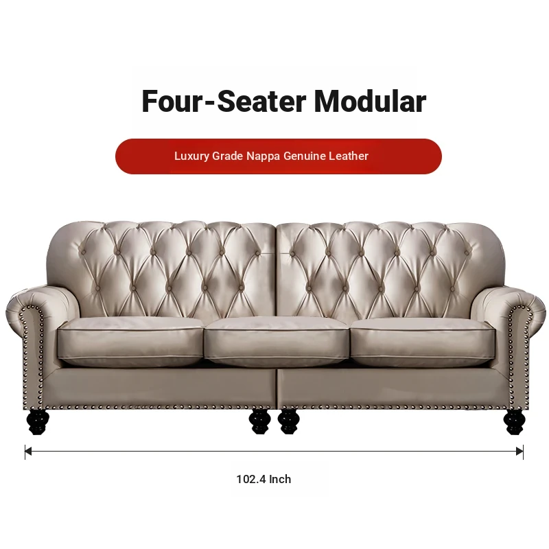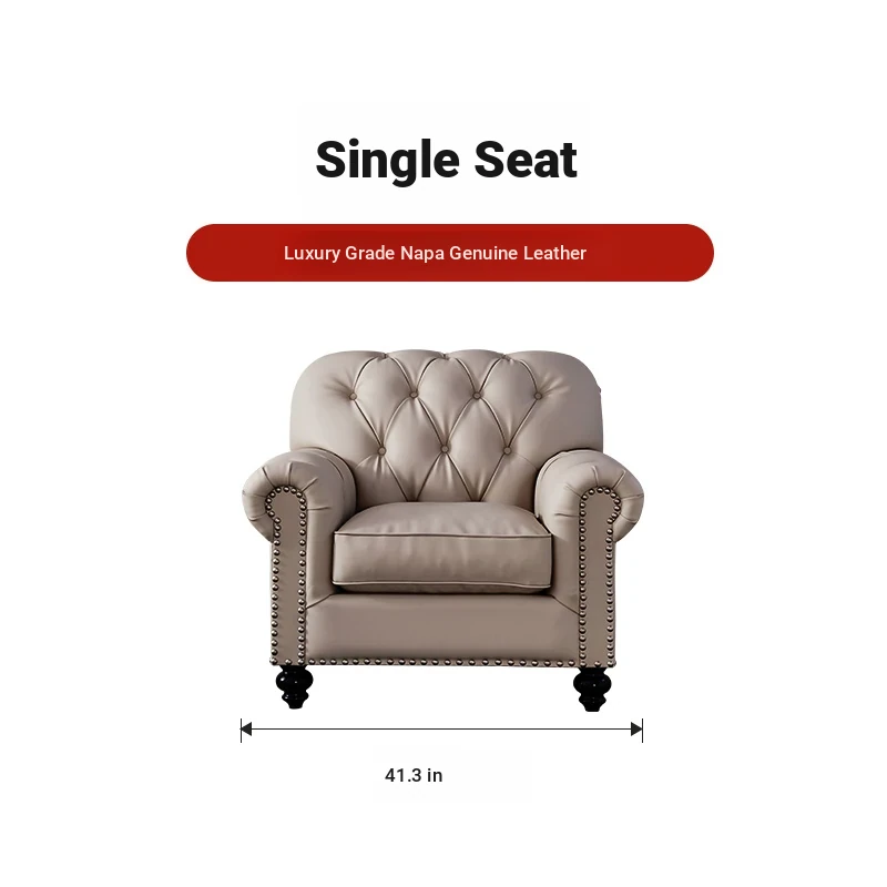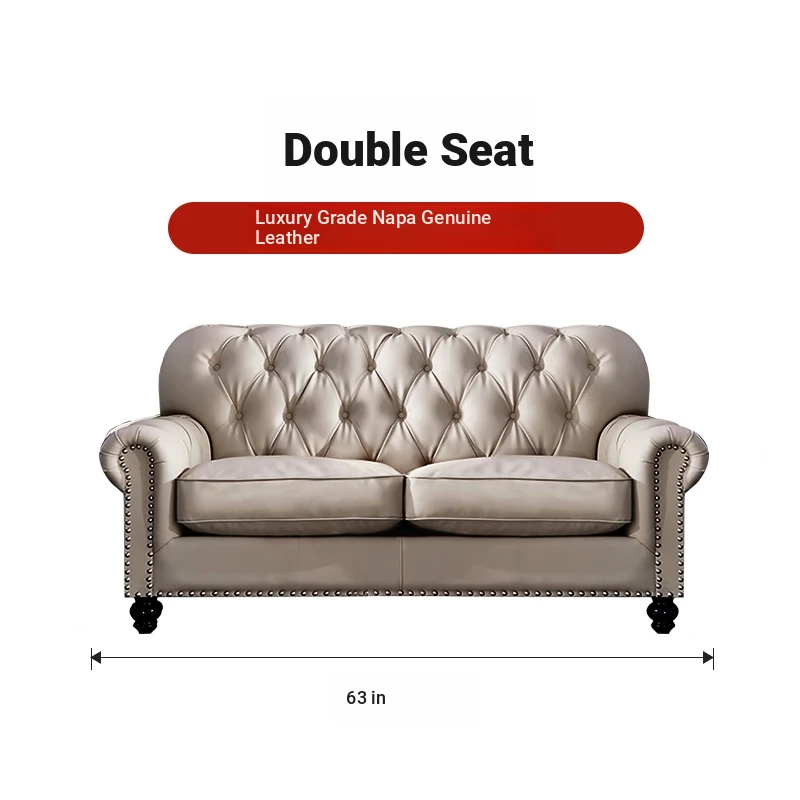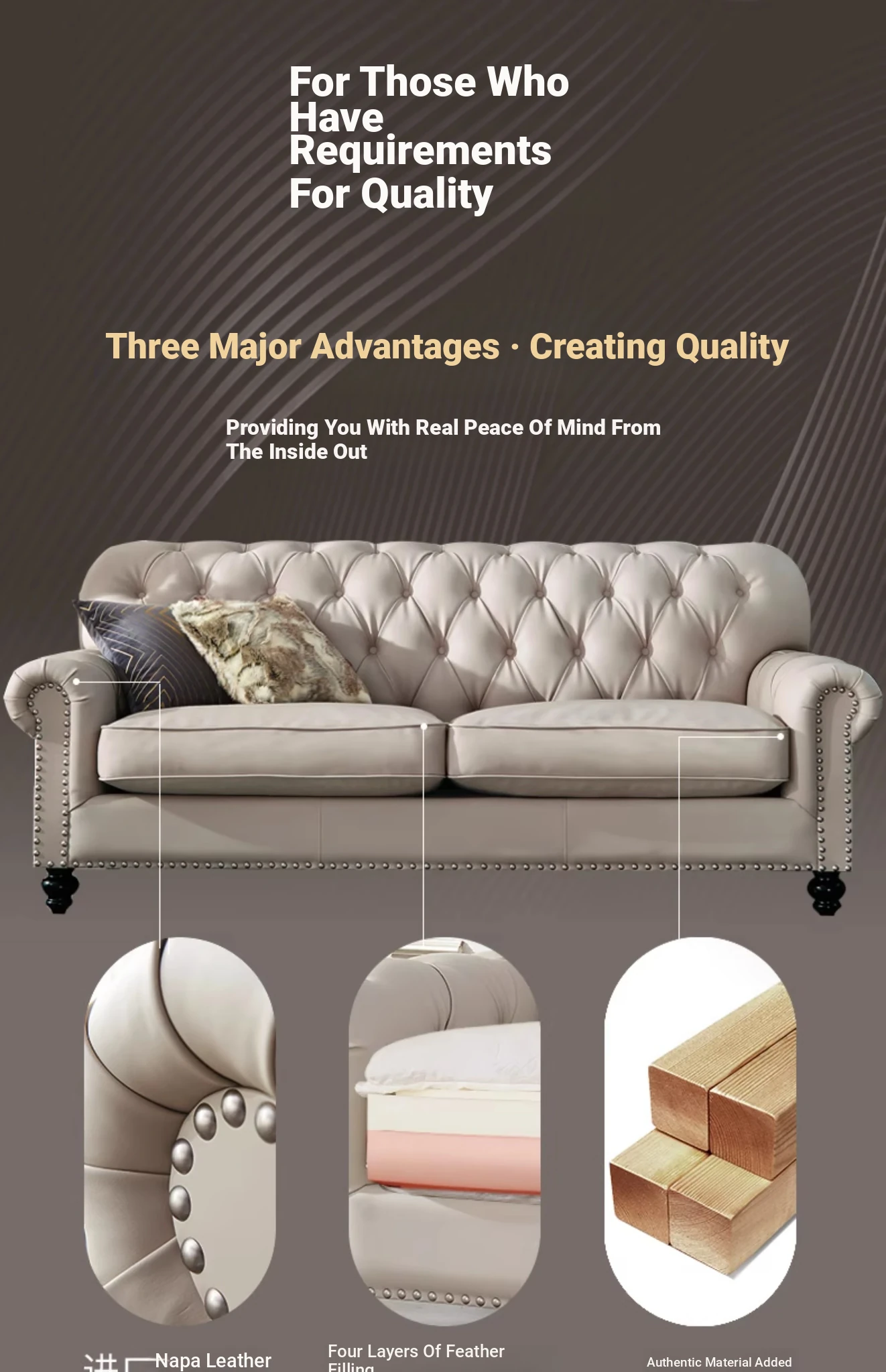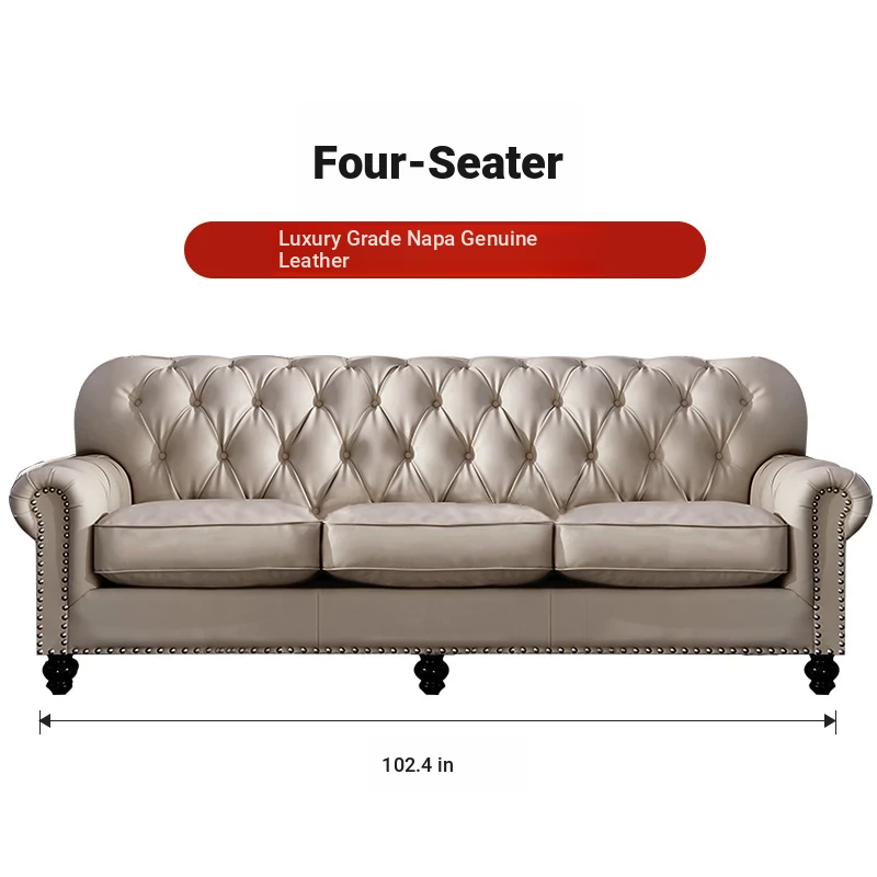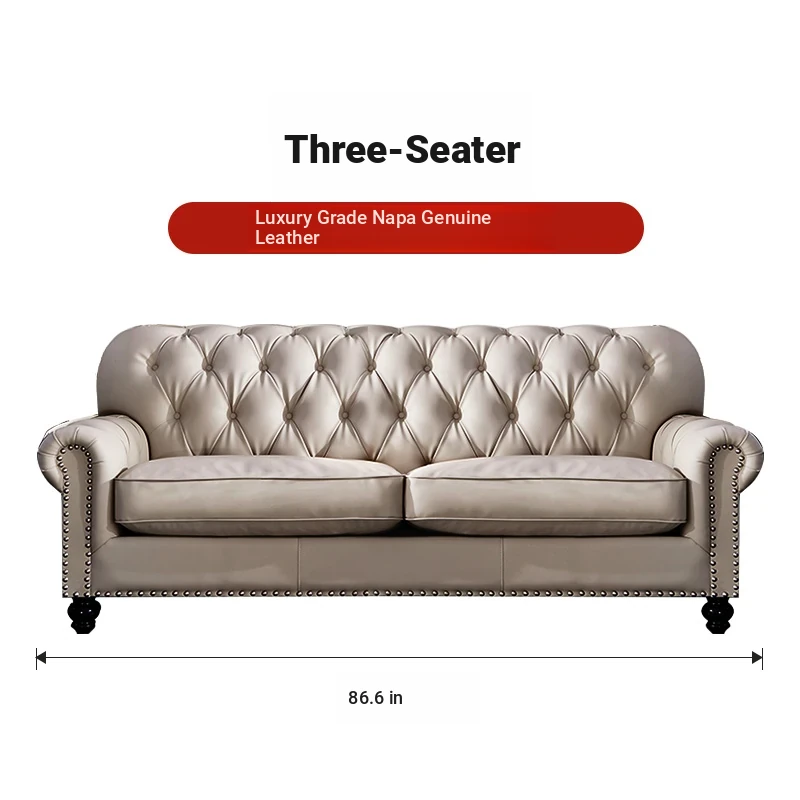 Elegant American Style Genuine Leather Sofa Set - Luxurious Napa Top Grain Cowhide for Small to Medium Living Rooms - Minimalist 123 Combination Furniture