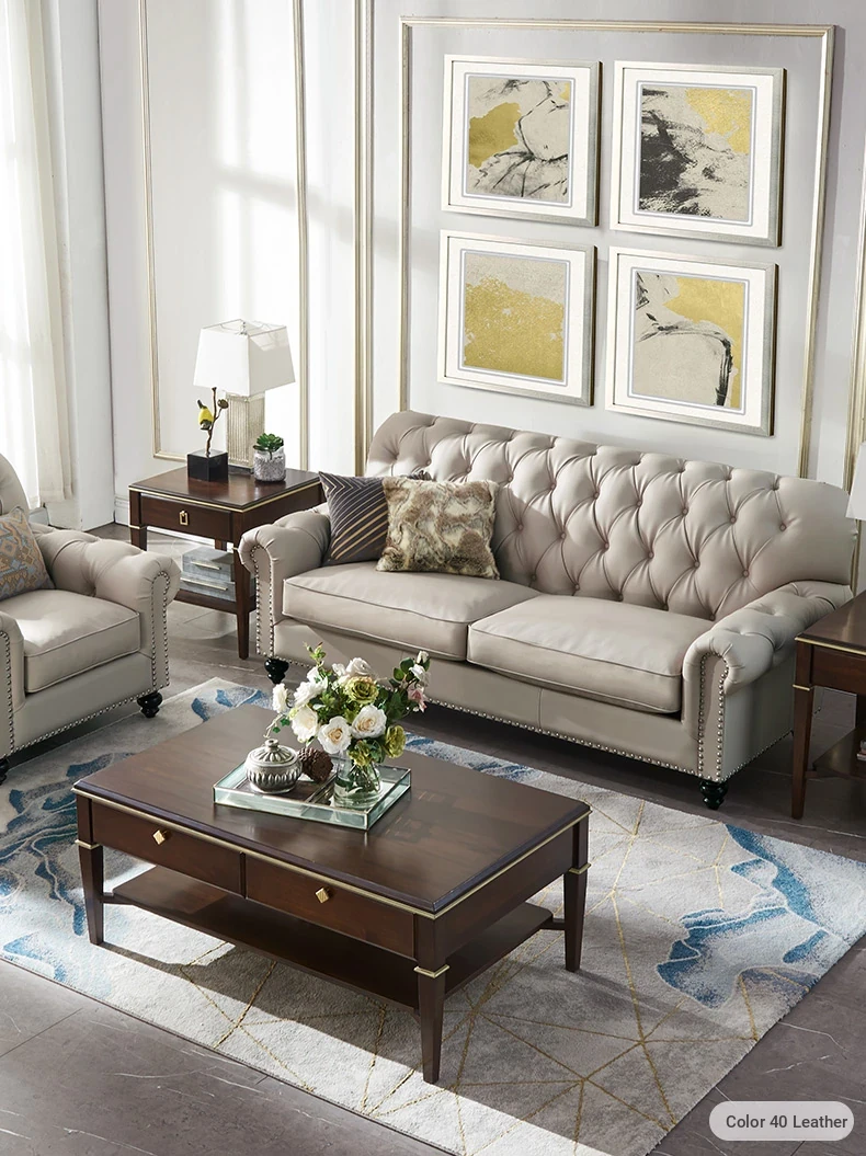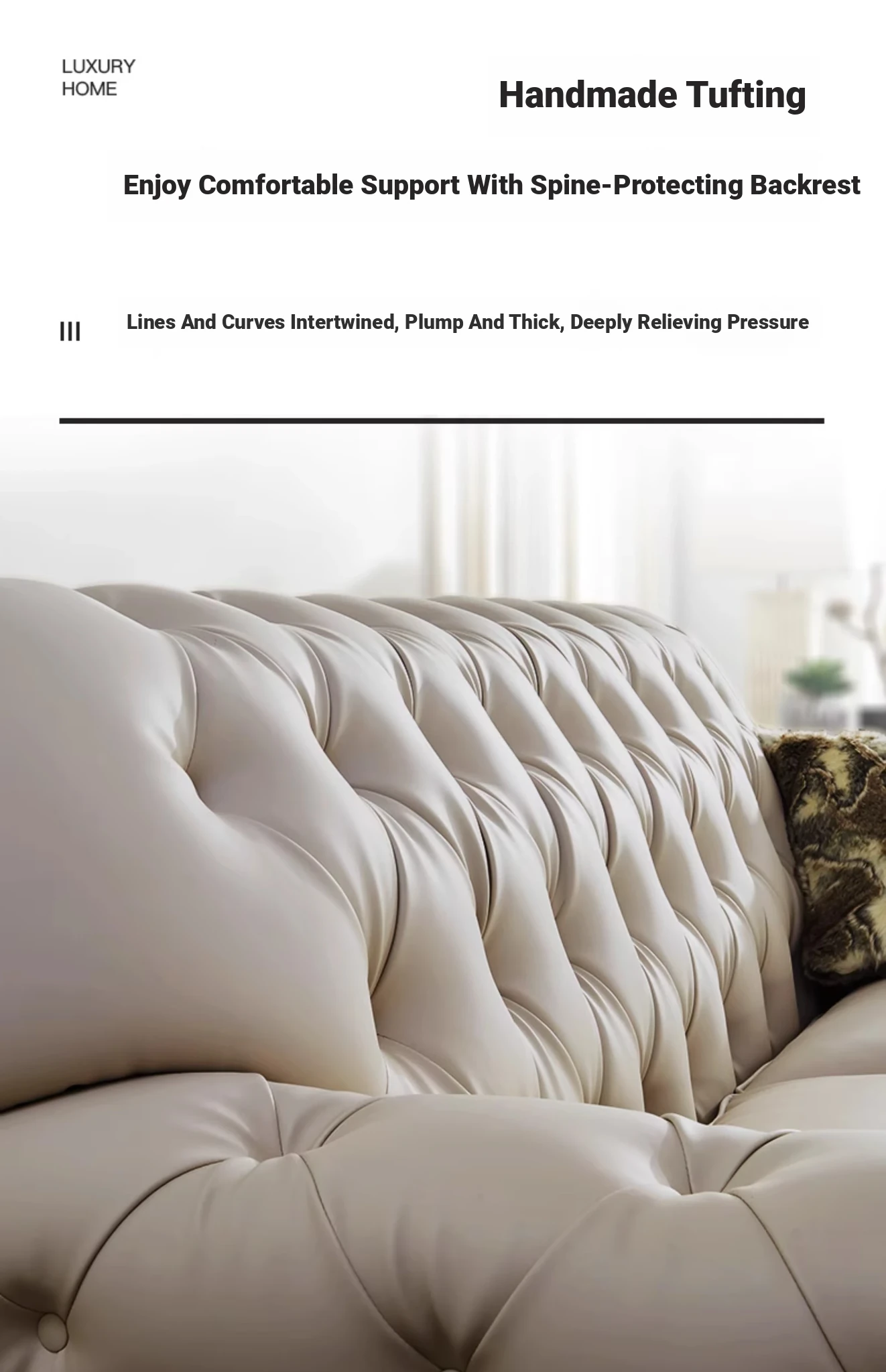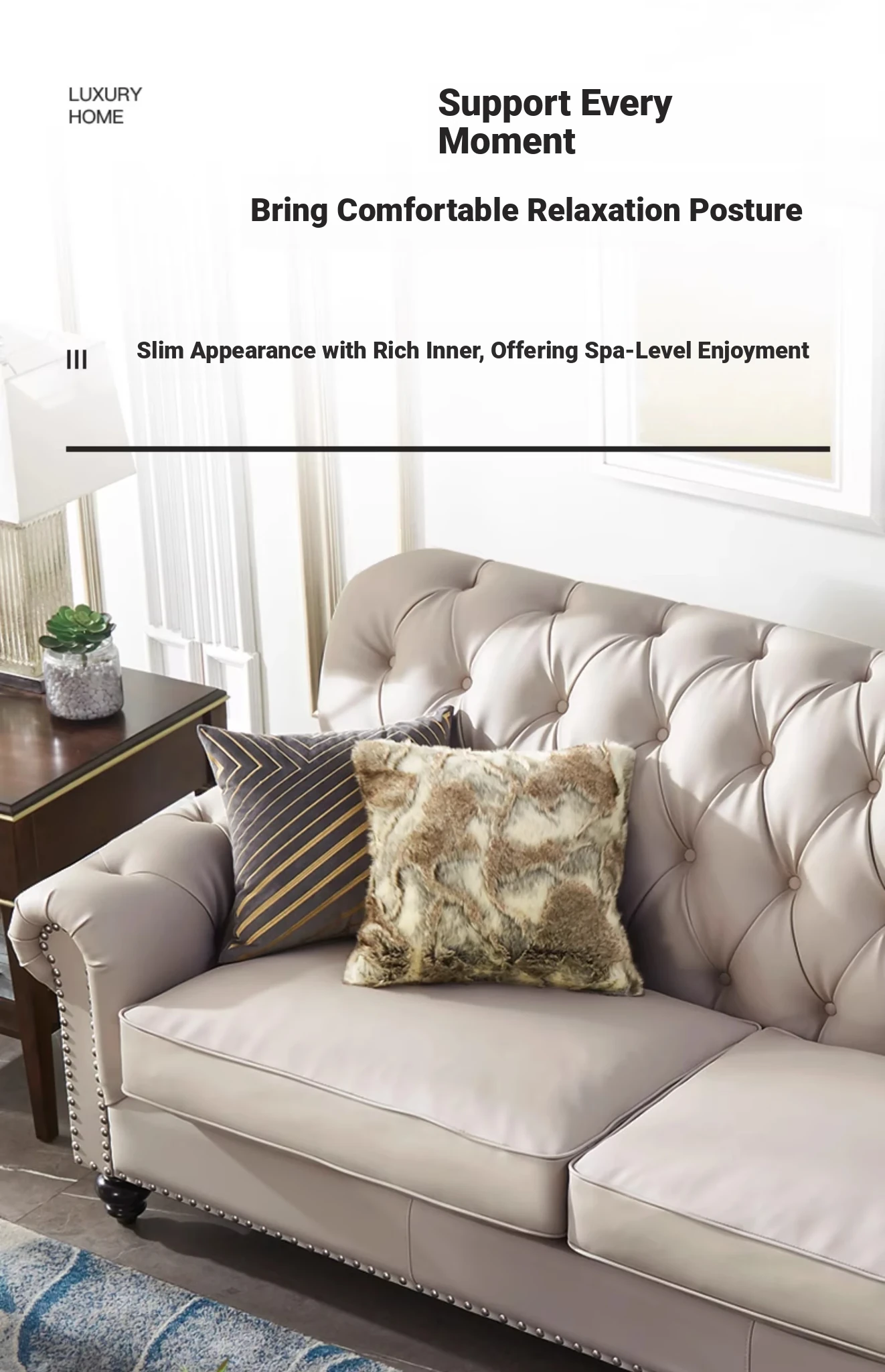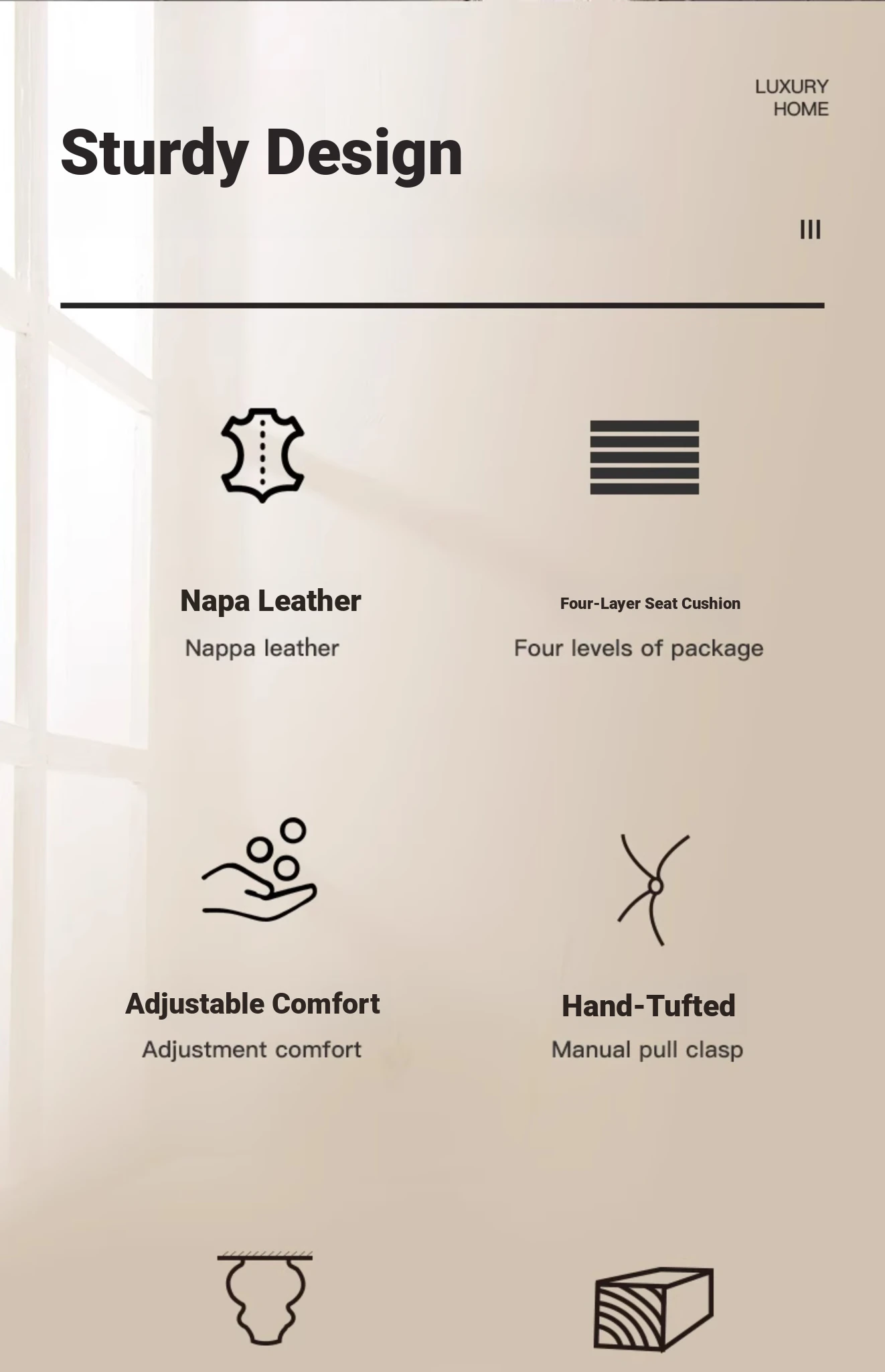Elegant American Style Genuine Leather Sofa Set - Luxurious Napa Top Grain Cowhide for Small to Medium Living Rooms - Minimalist 123 Combination Furniture