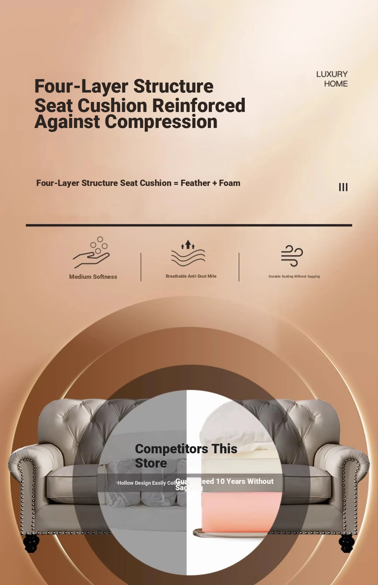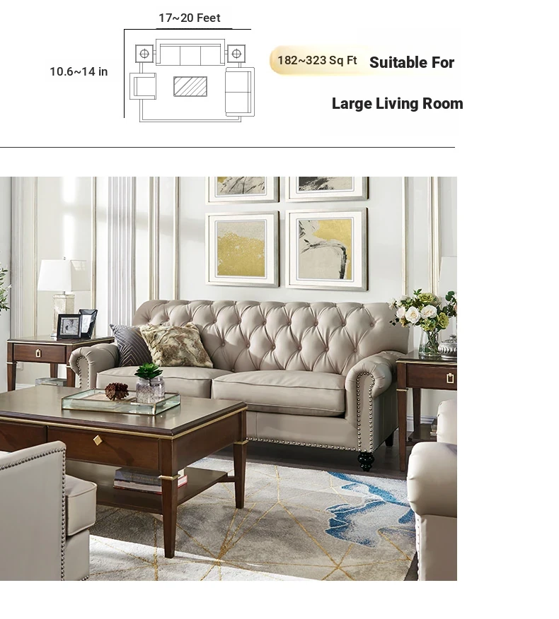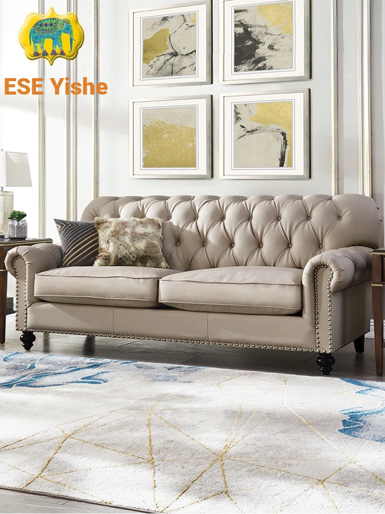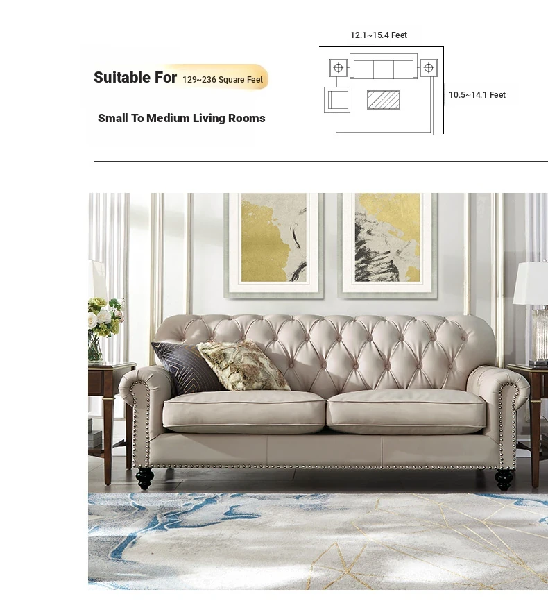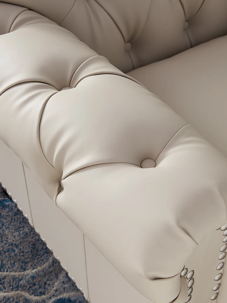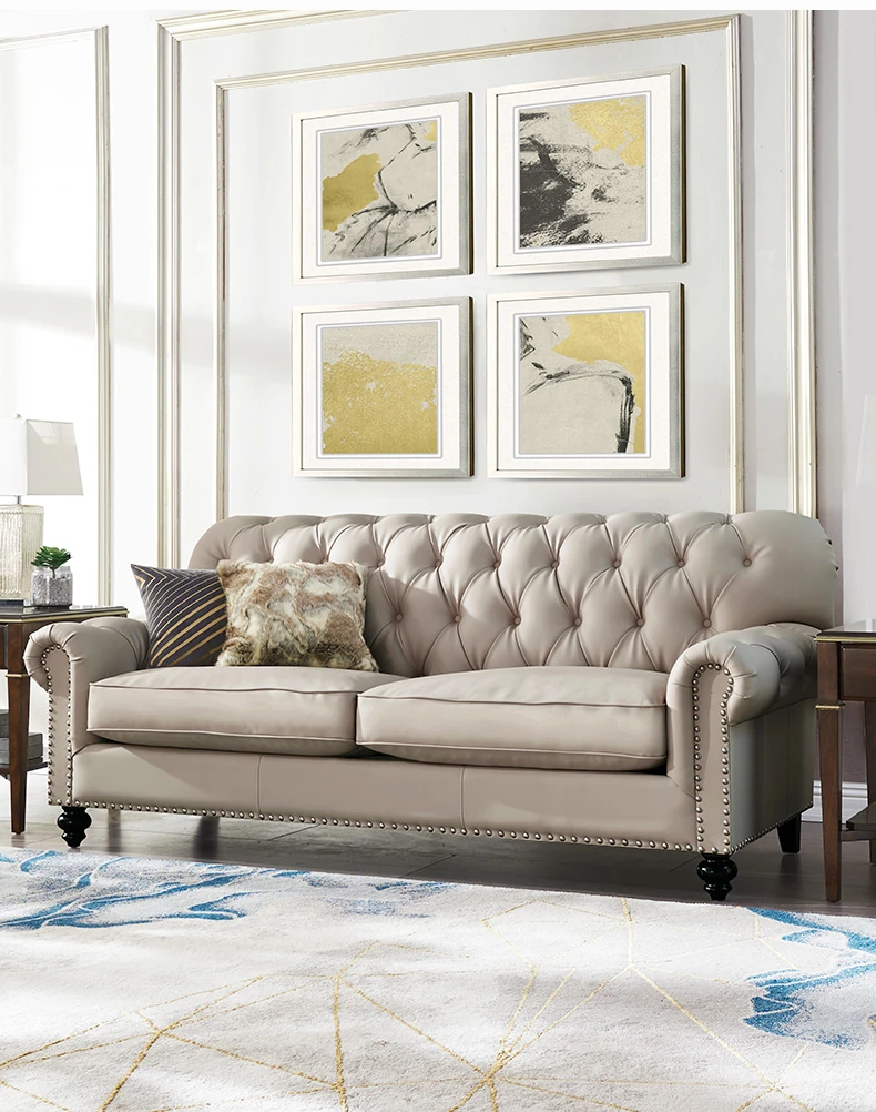 Elegant American Style Genuine Leather Sofa Set - Luxurious Napa Top Grain Cowhide for Small to Medium Living Rooms - Minimalist 123 Combination Furniture