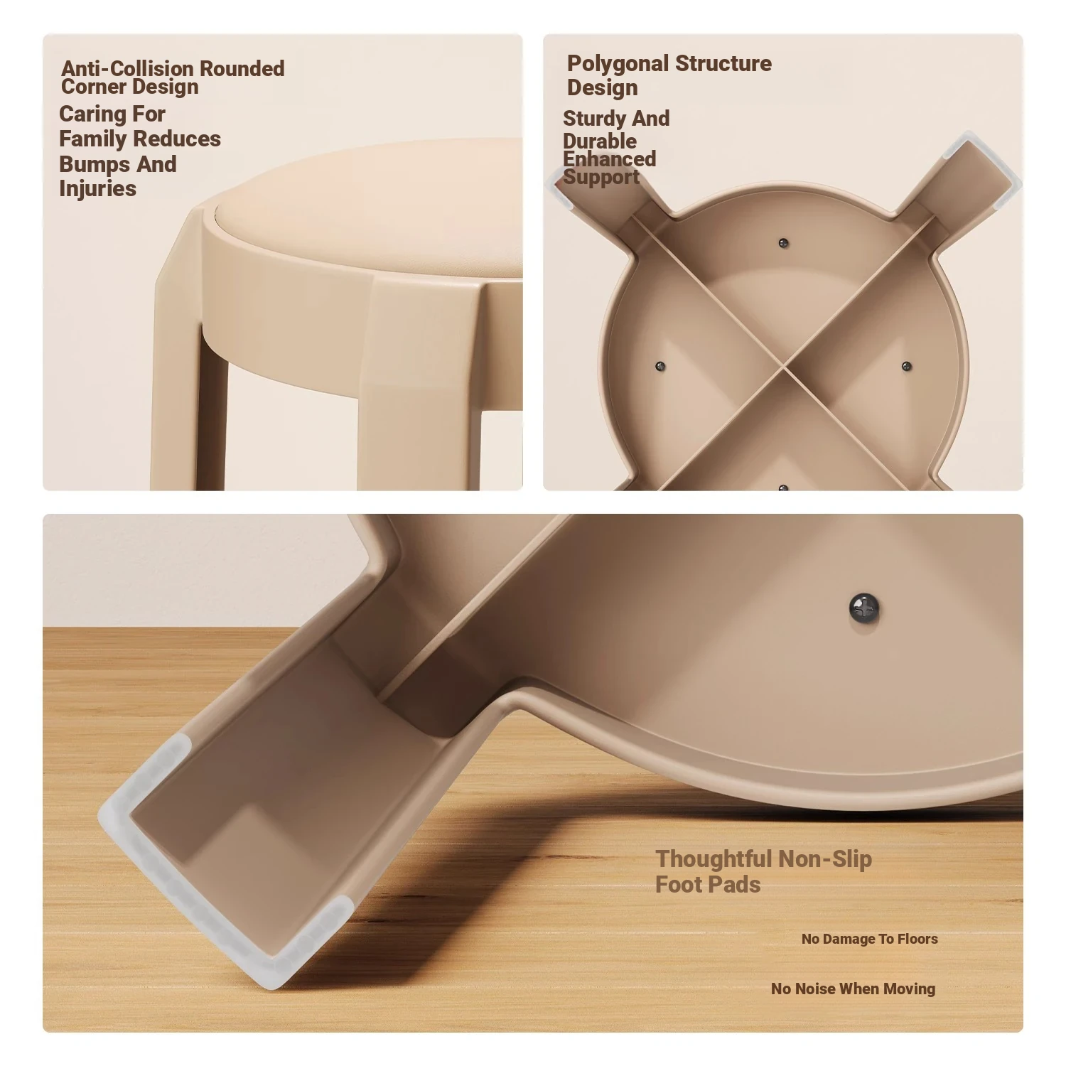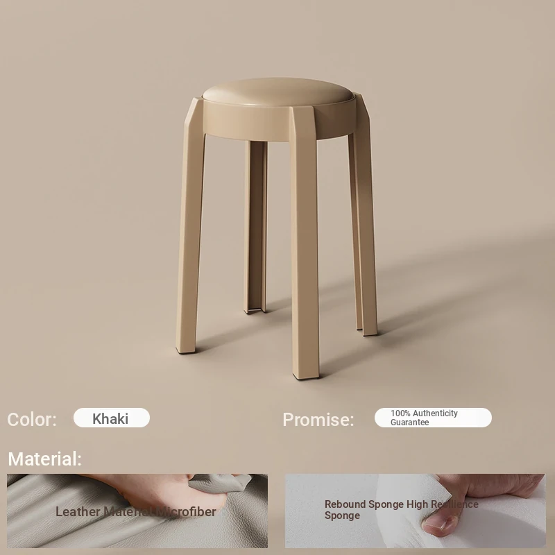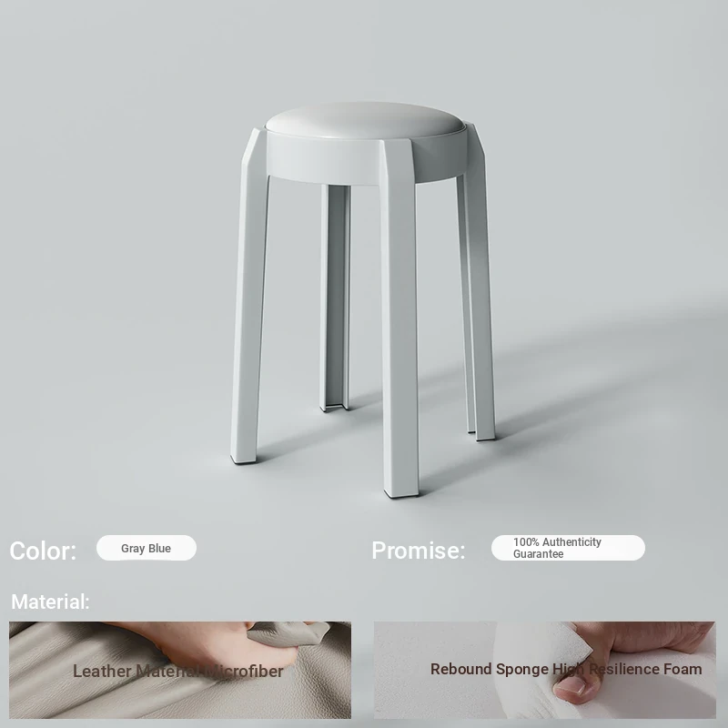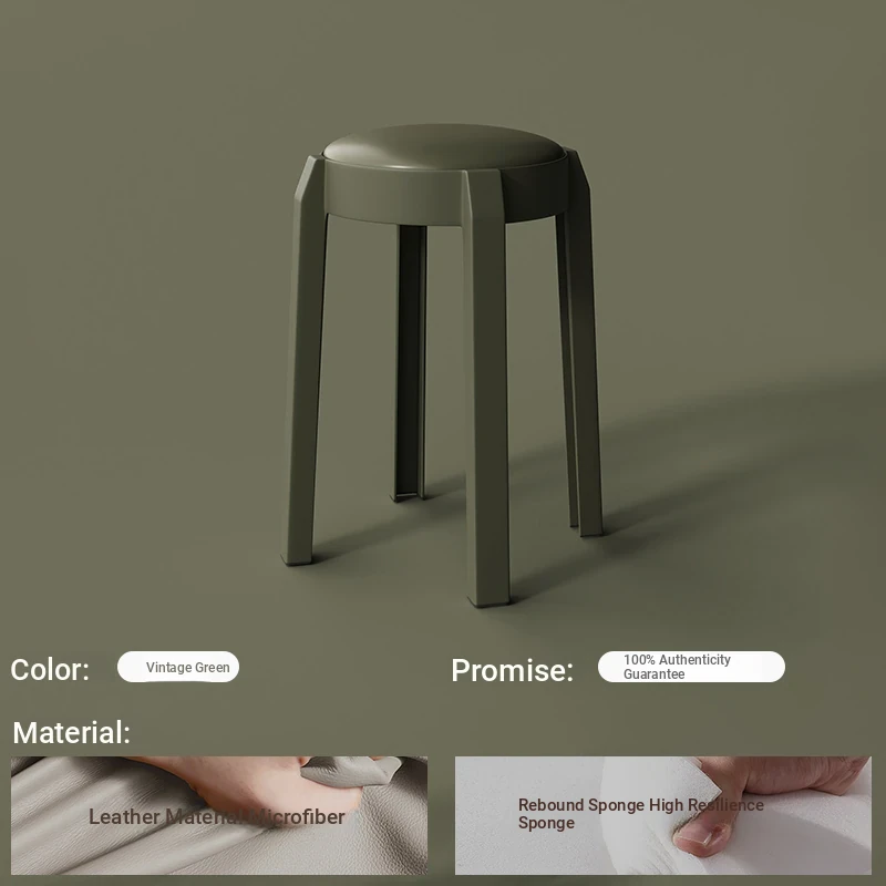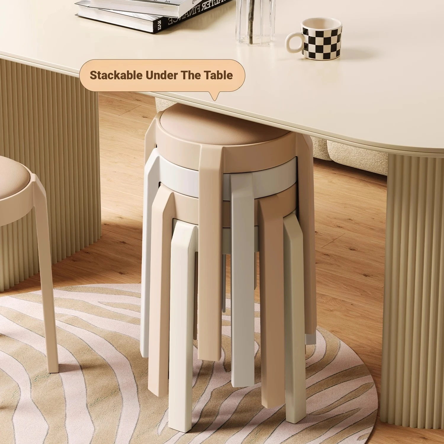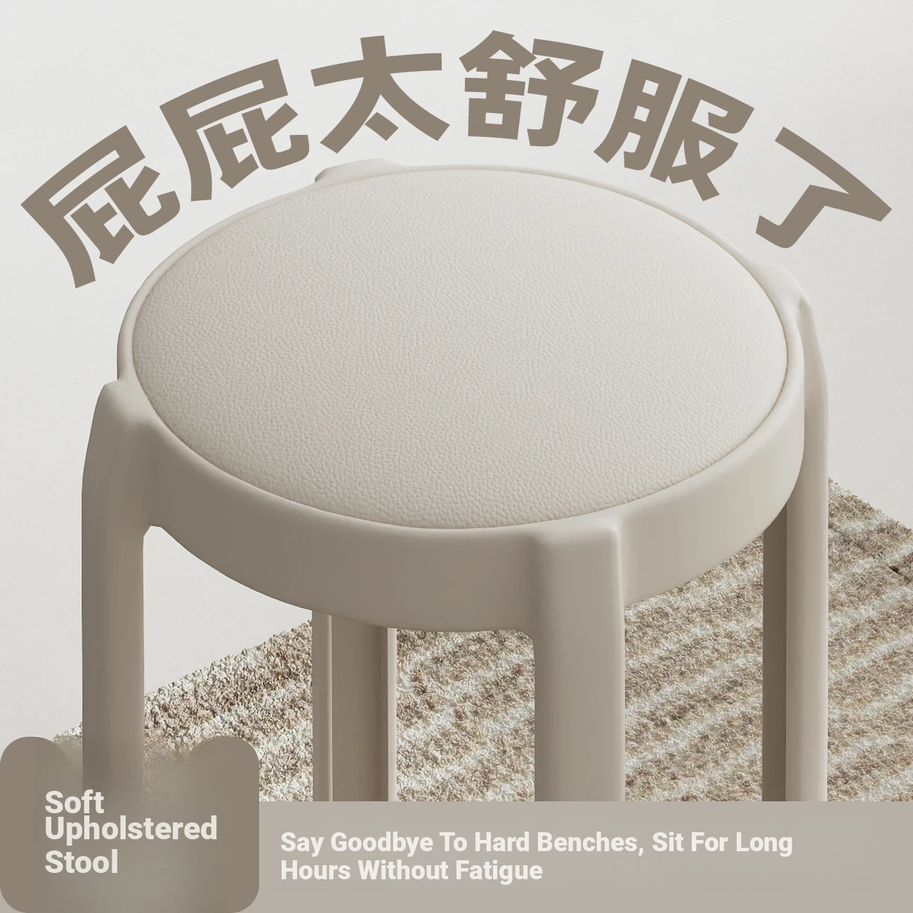 Elegant French-Style Soft Cushioned Plastic Stool - Thickened Round Stackable Chair for Home Dining, Minimalist Design Perfect for Restaurant Tables and High Seating