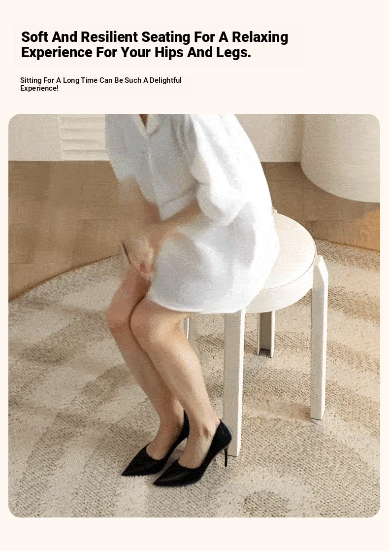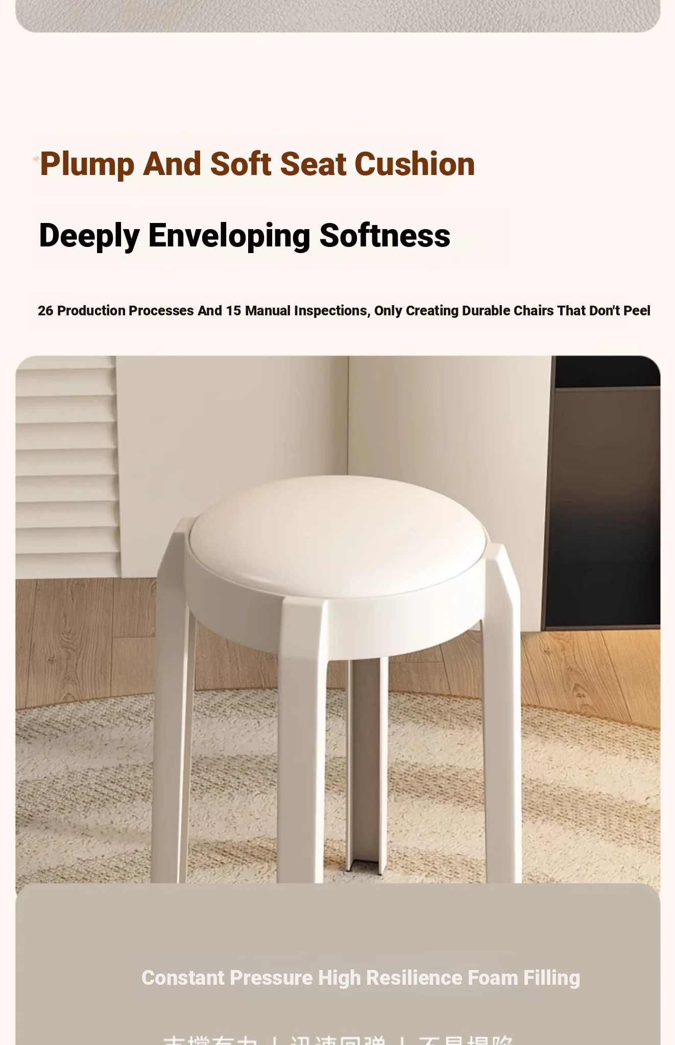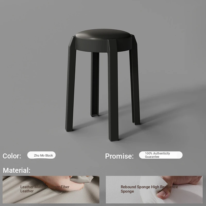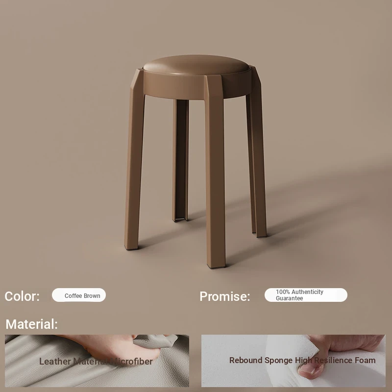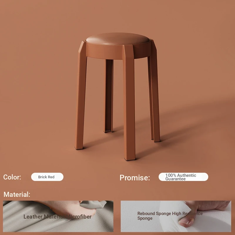 Elegant French-Style Soft Cushioned Plastic Stool - Thickened Round Stackable Chair for Home Dining, Minimalist Design Perfect for Restaurant Tables and High Seating
