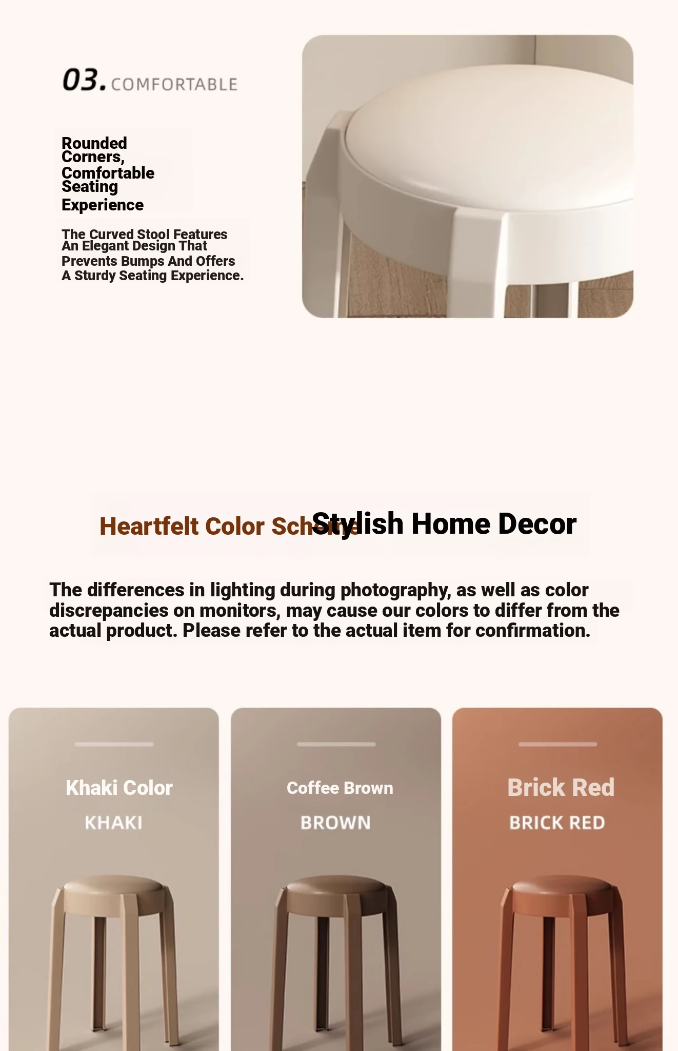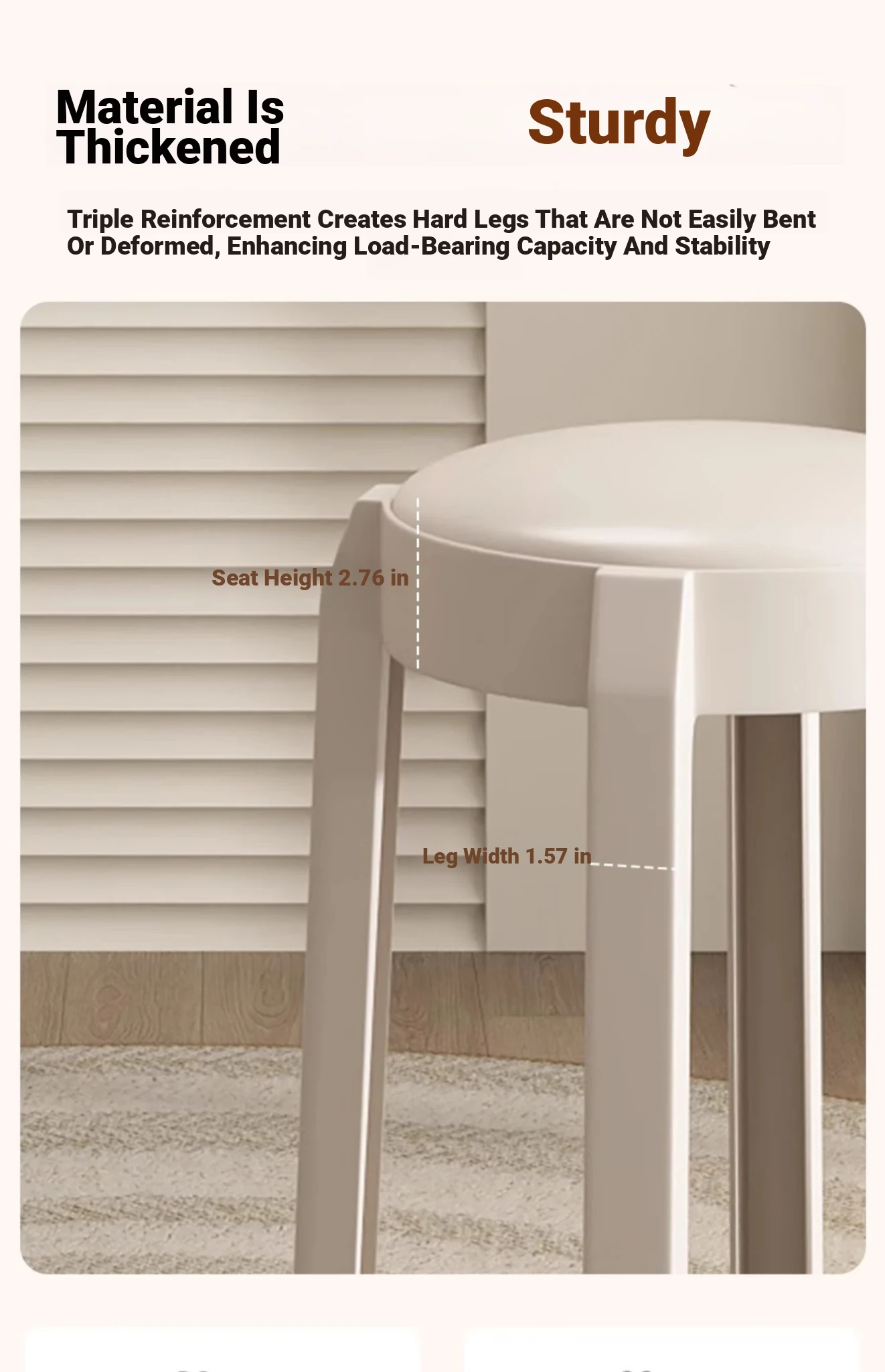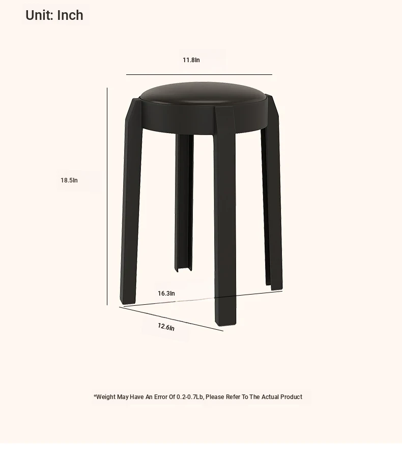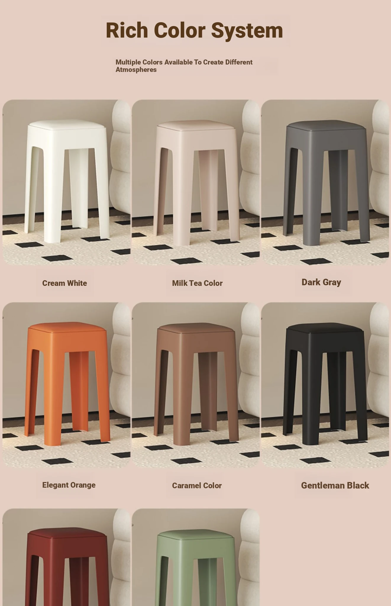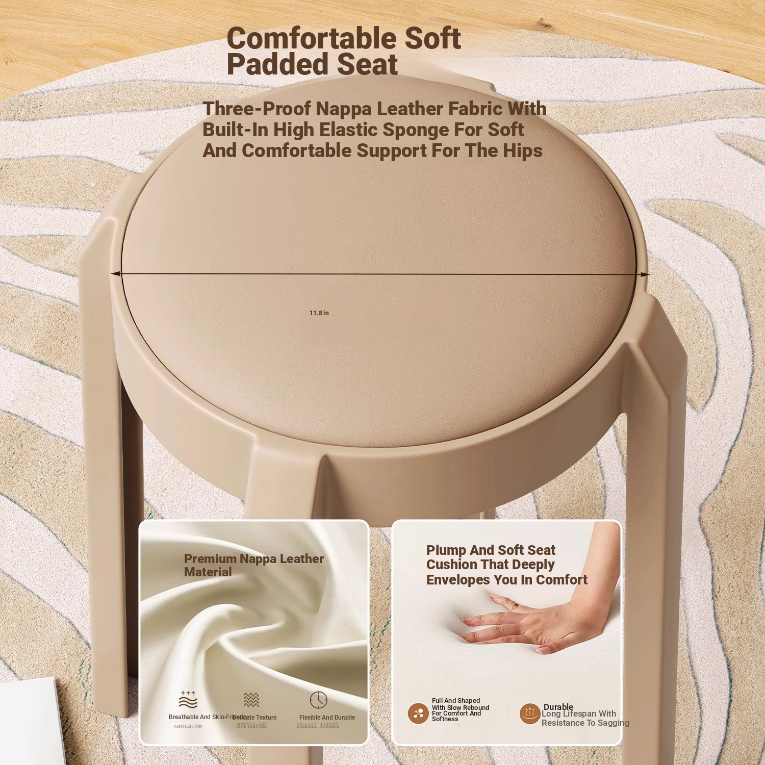 Elegant French-Style Soft Cushioned Plastic Stool - Thickened Round Stackable Chair for Home Dining, Minimalist Design Perfect for Restaurant Tables and High Seating