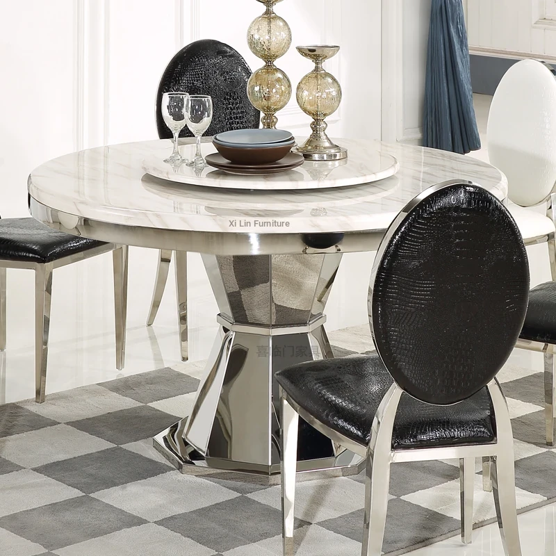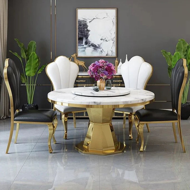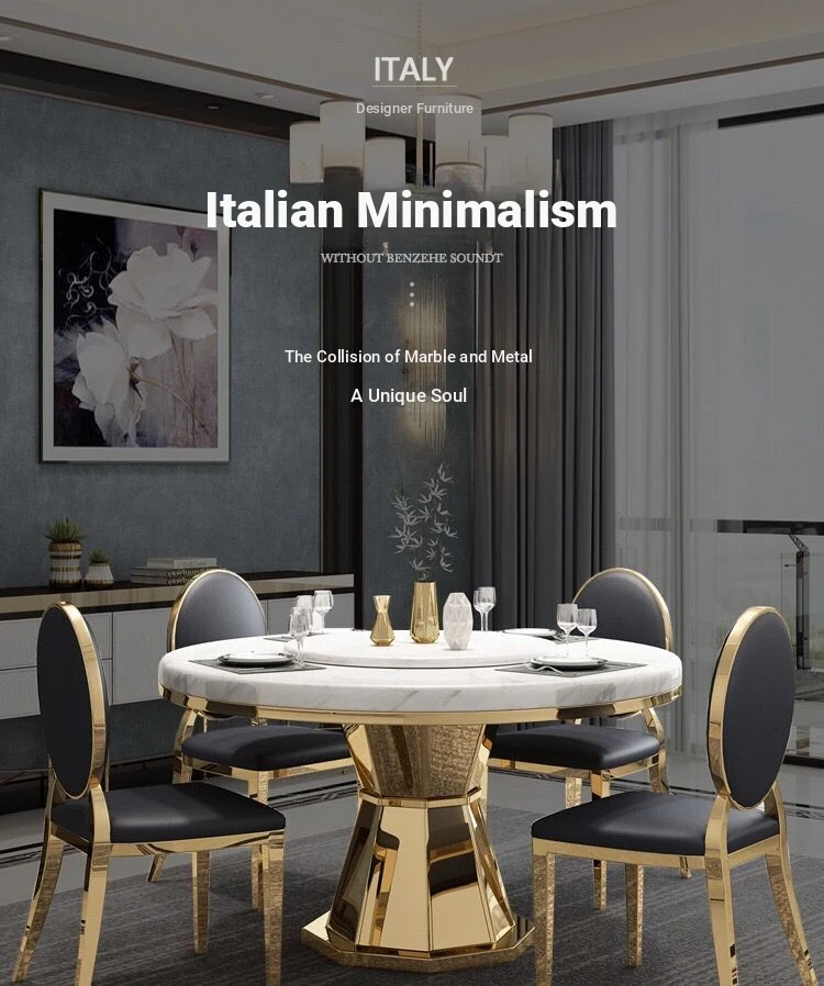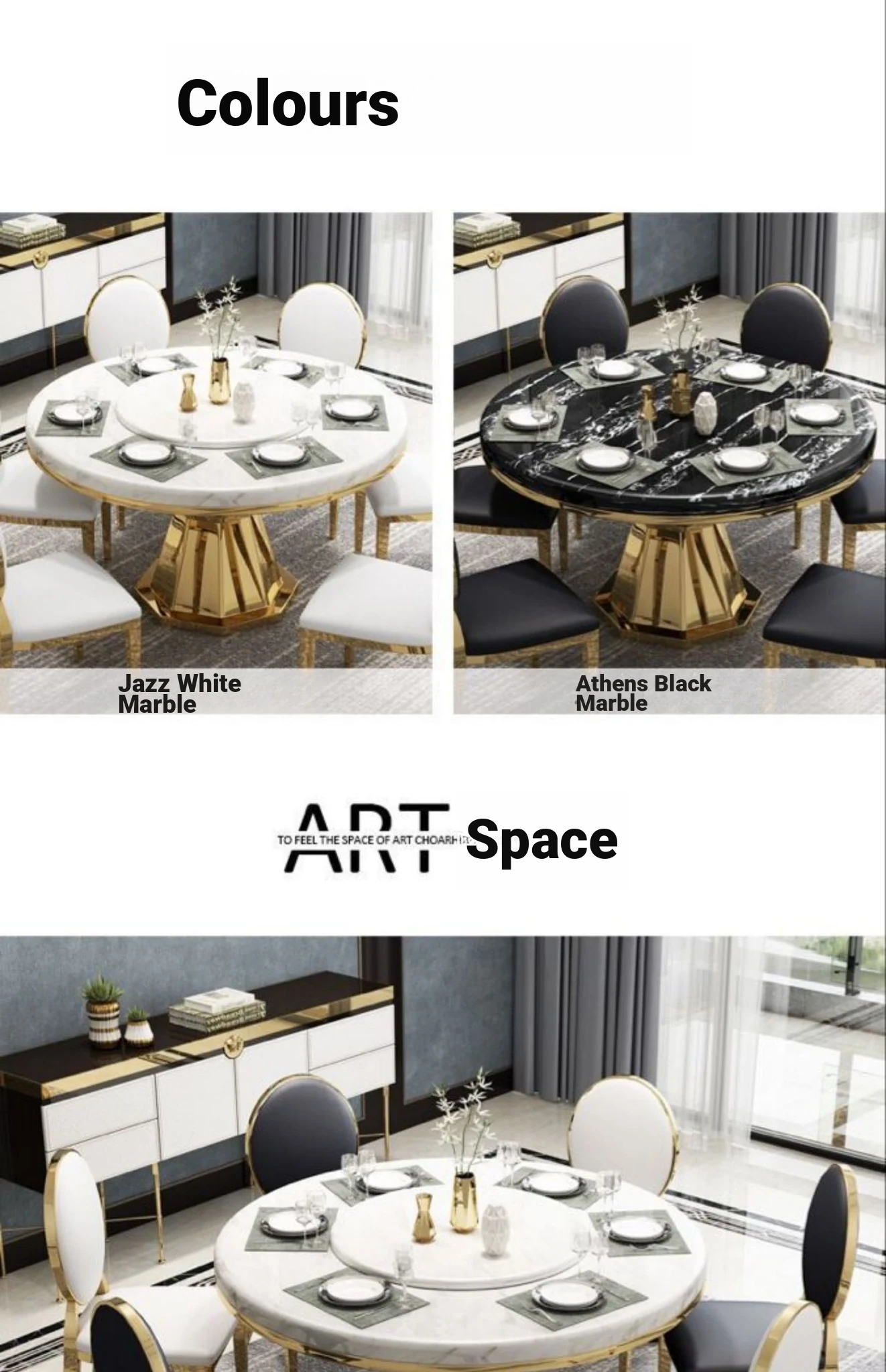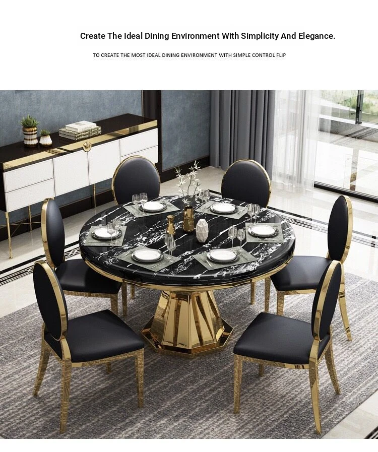 Elegant Marble Round Dining Table with Rotating Tray - Modern Minimalist Design for Small Spaces, Perfect 1.2m Size for Home Dining