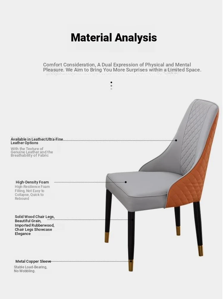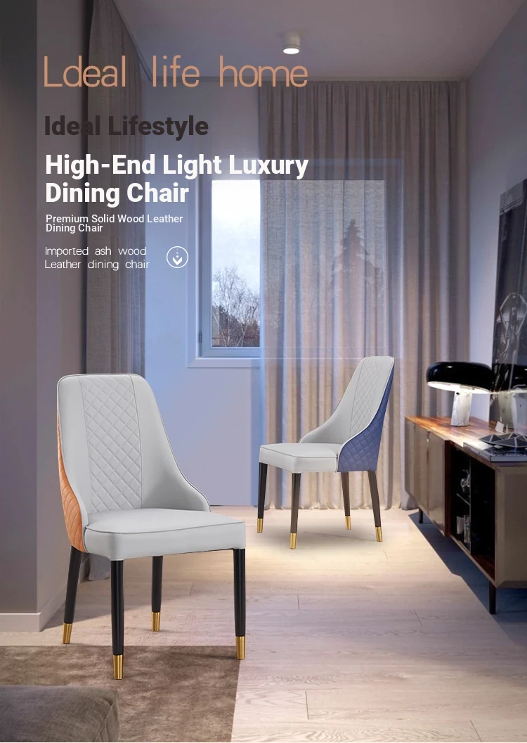 Elegant Minimalist Dining Chair - High-End Nordic Design for Home and Restaurant, Comfortable Solid Wood and Leather Upholstered Armchair, Perfect for Leisure and Hospitality Settings.