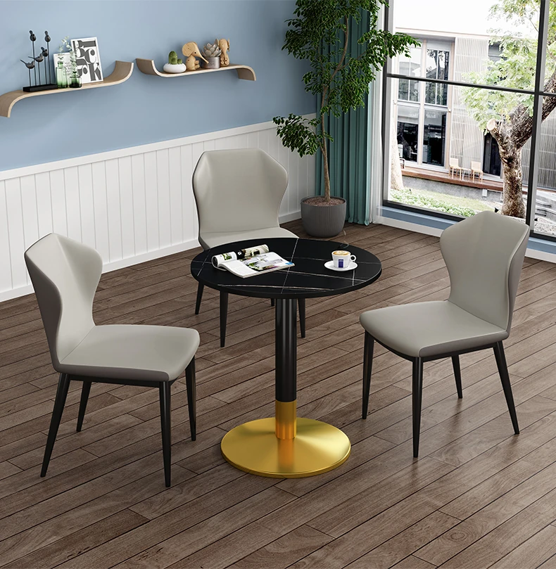 Elegant Minimalist Round Table Set for Office Leisure - Perfect Reception Desk and Chair Combination for Coffee Meetings and Casual Gatherings. Ideal for Stylish Storefronts!