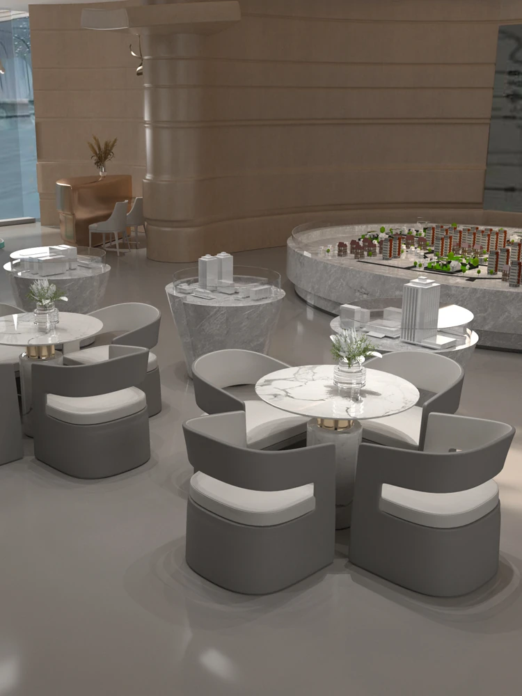 Elegant Modern Chinese Style Reception Table and Chairs Set - One Table with Four Chairs for Real Estate Offices, Hotels, and Beauty Salons. Perfect for Creating a Welcoming Atmosphere!