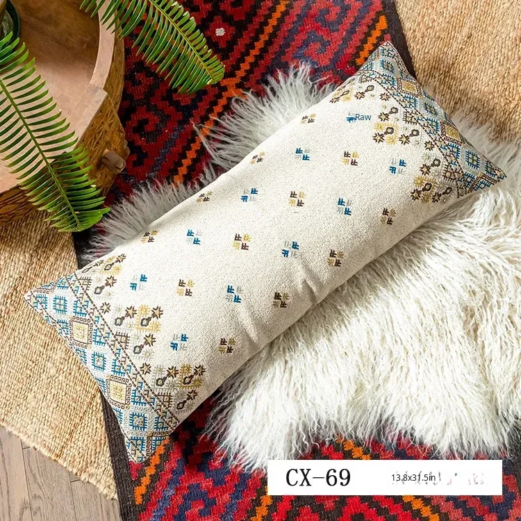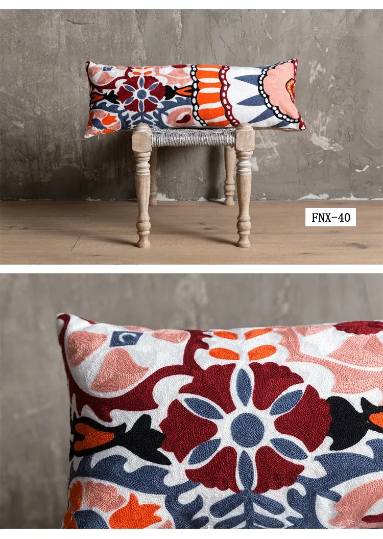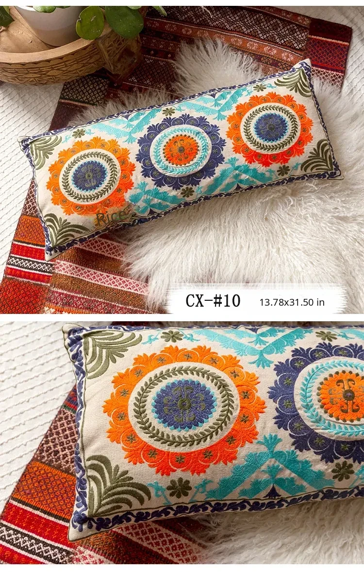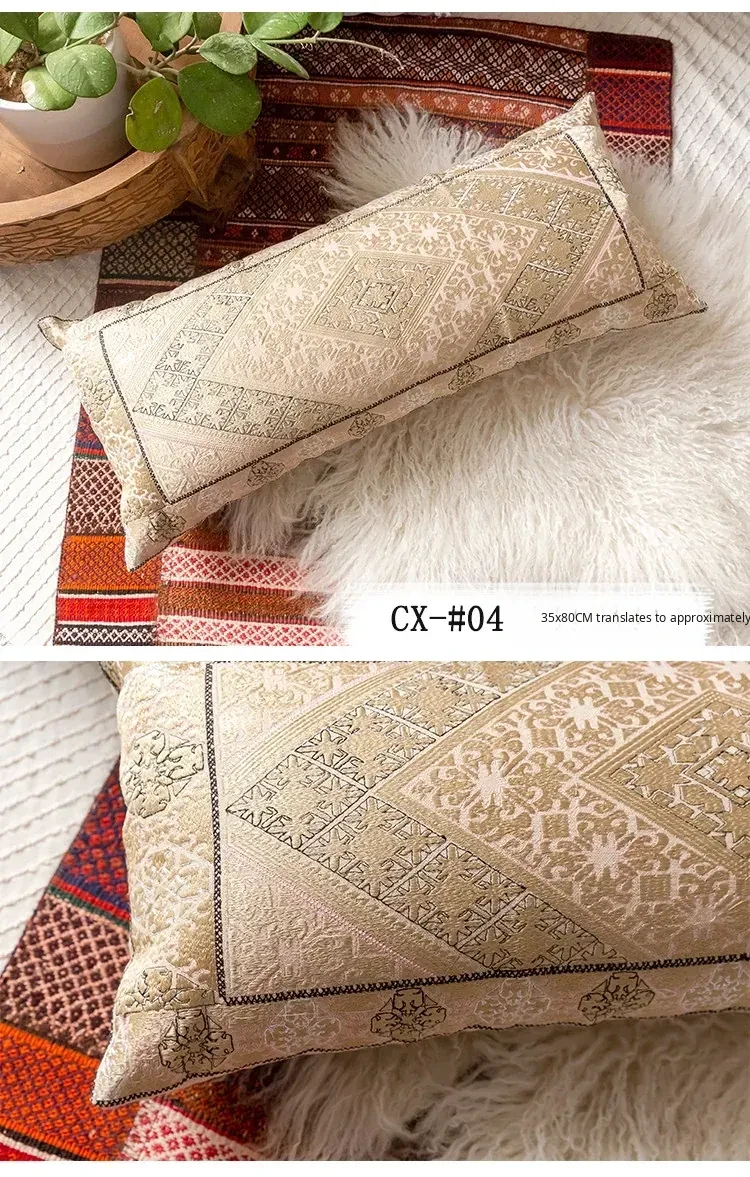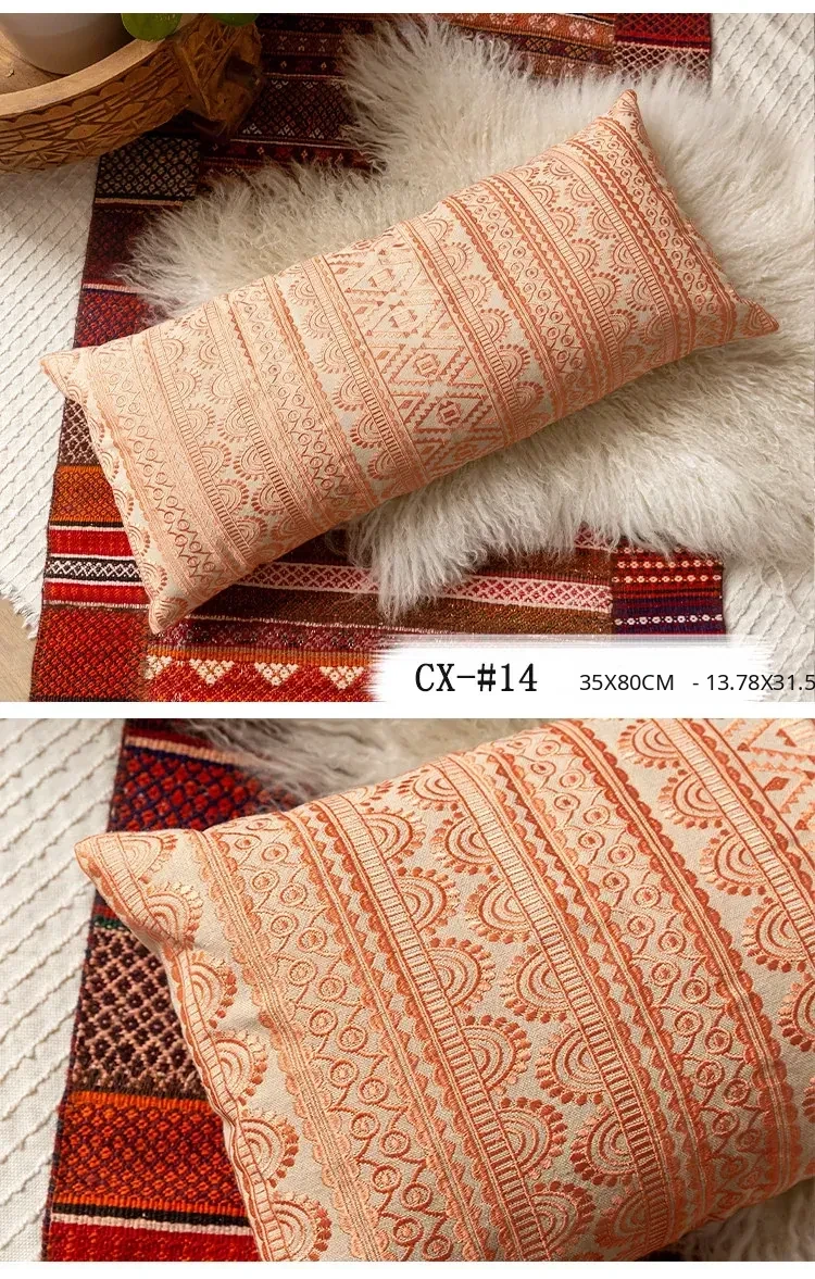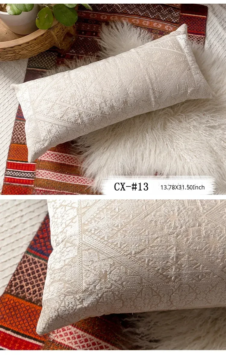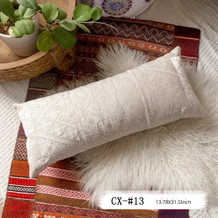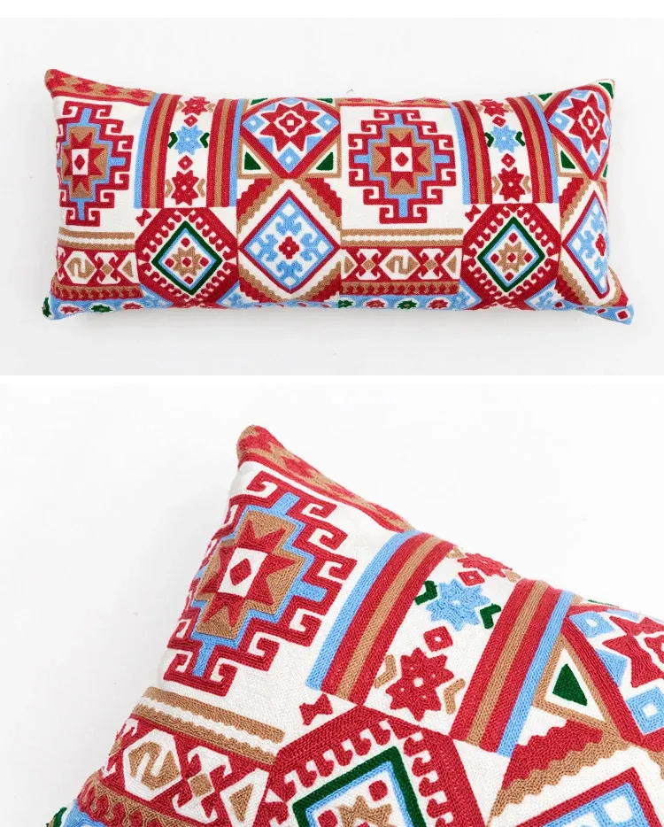 Exotic Indian Embroidered Long Pillow - Southeast Asian Ethnic Style Mix, Perfect for Bedroom Decor, Thai-Style Headboard Cushion, Ideal for Lumbar Support!