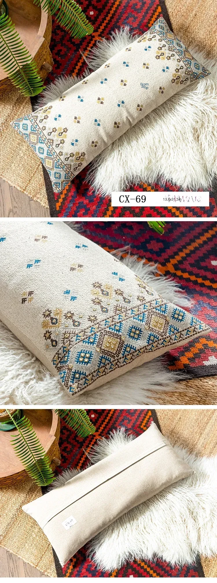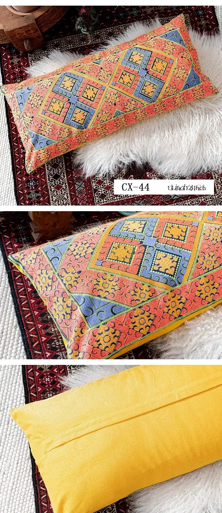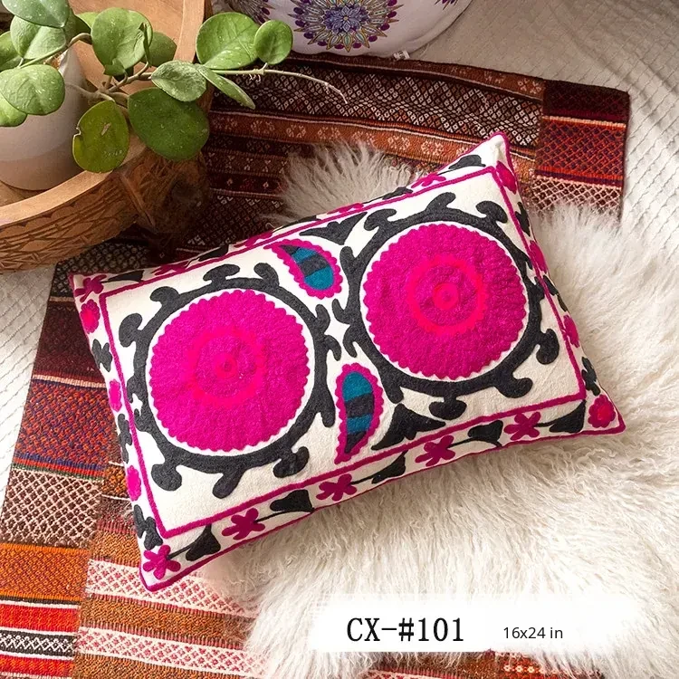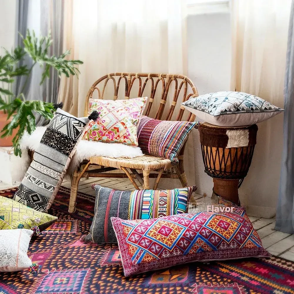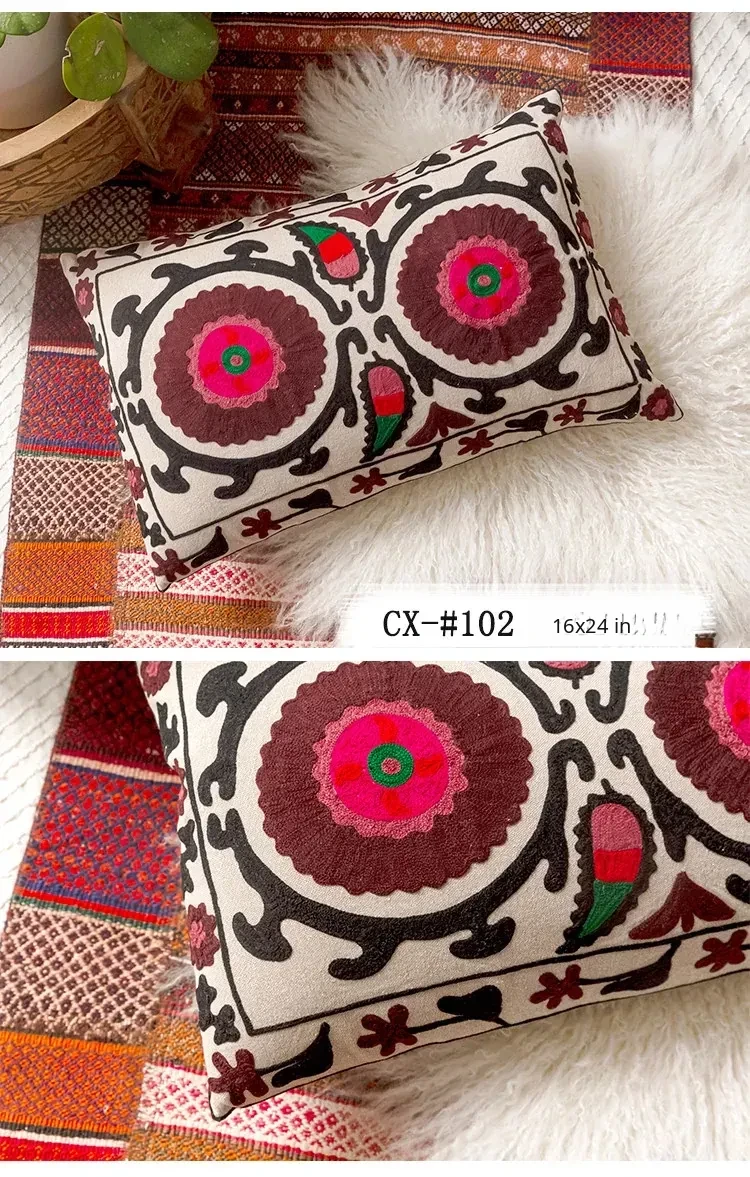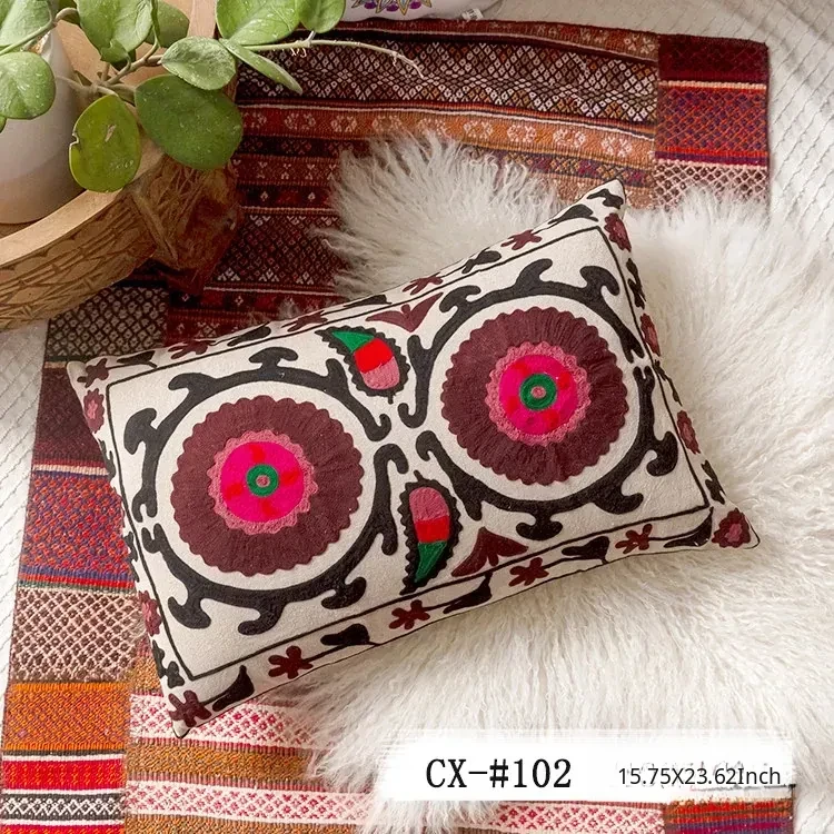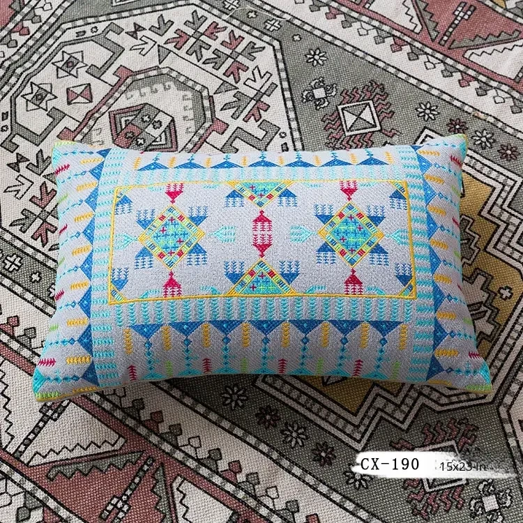 Exotic Indian Embroidered Long Pillow - Southeast Asian Ethnic Style Mix, Perfect for Bedroom Decor, Thai-Style Headboard Cushion, Ideal for Lumbar Support!