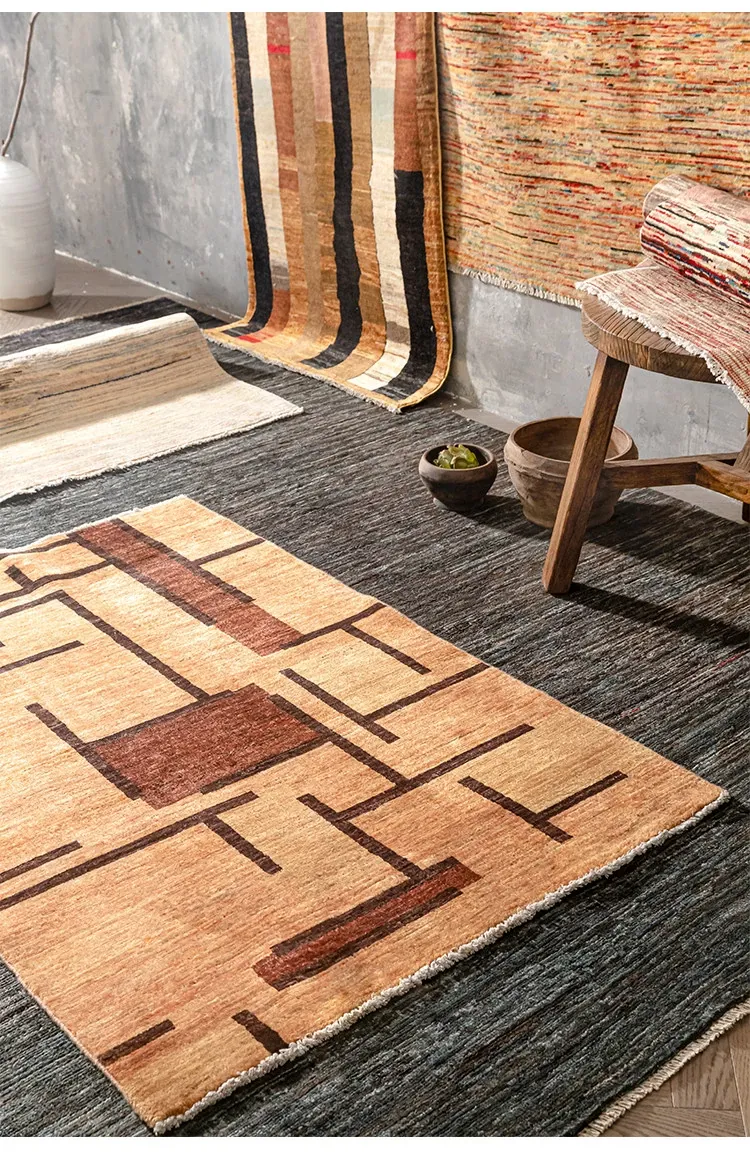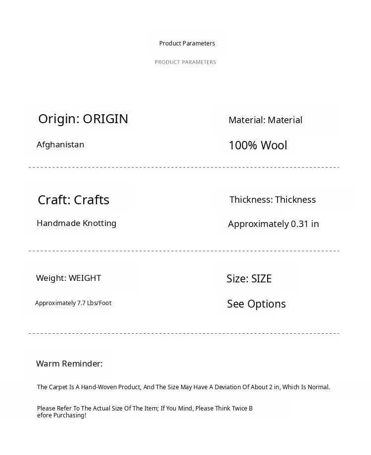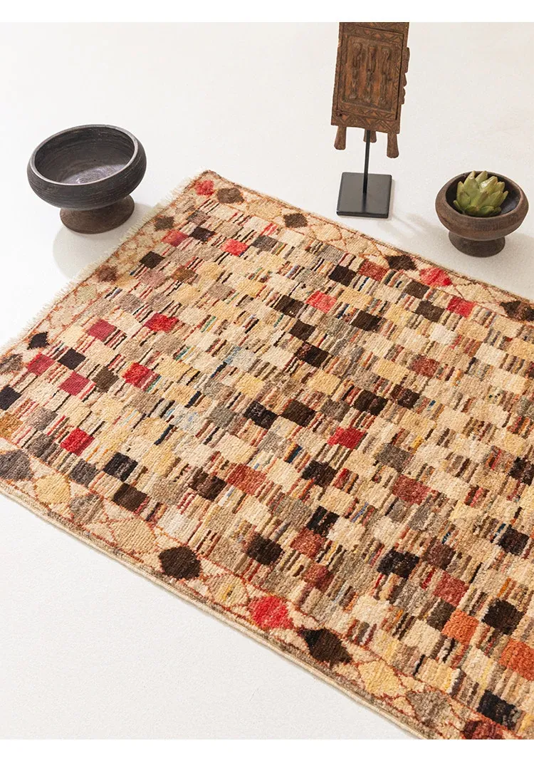 "Exquisite Afghan Handcrafted Wool Carpet - Unique Ethnic Design for Living Room, Perfect for Coffee Table, Luxurious and Glue-Free"
